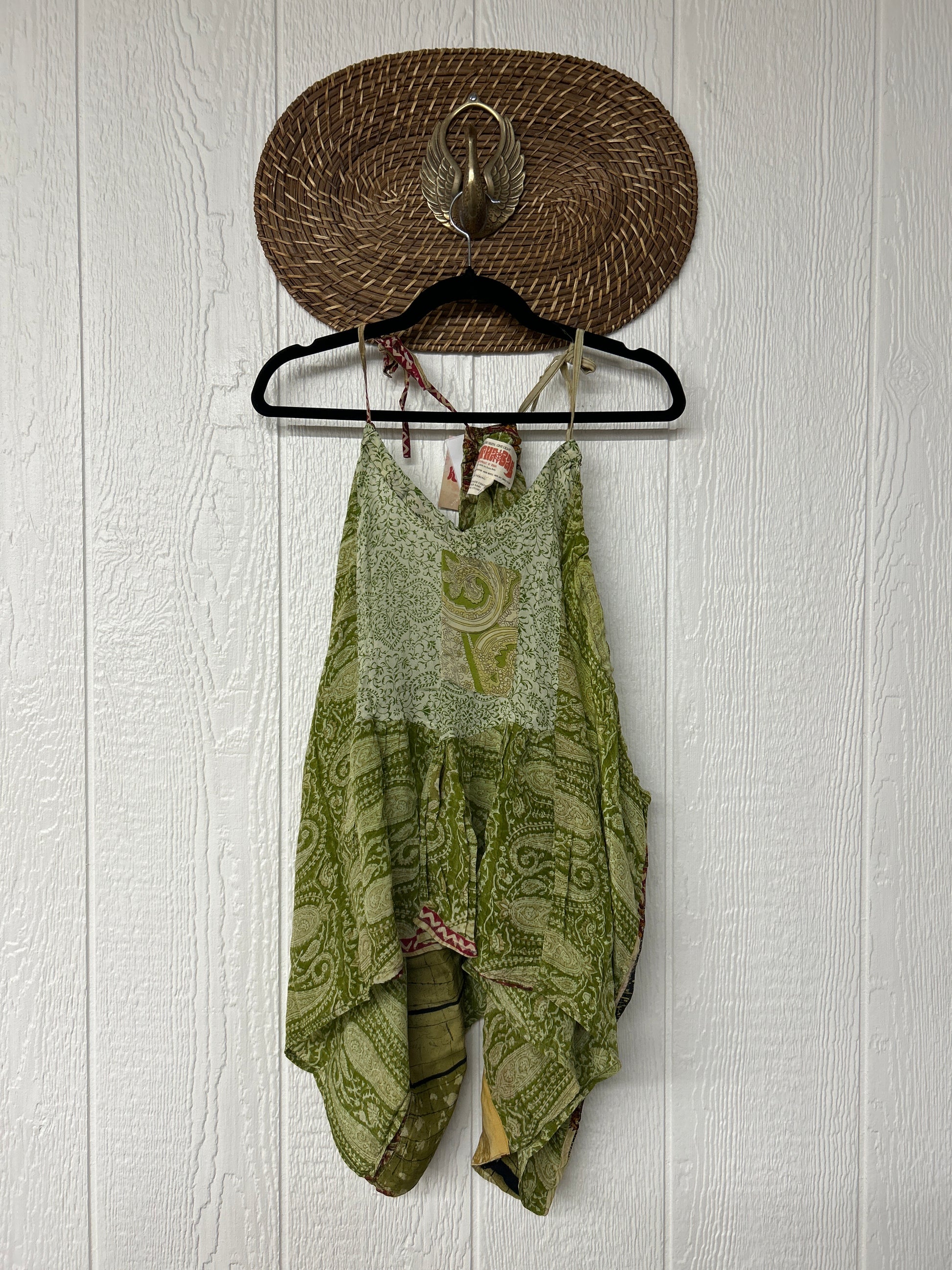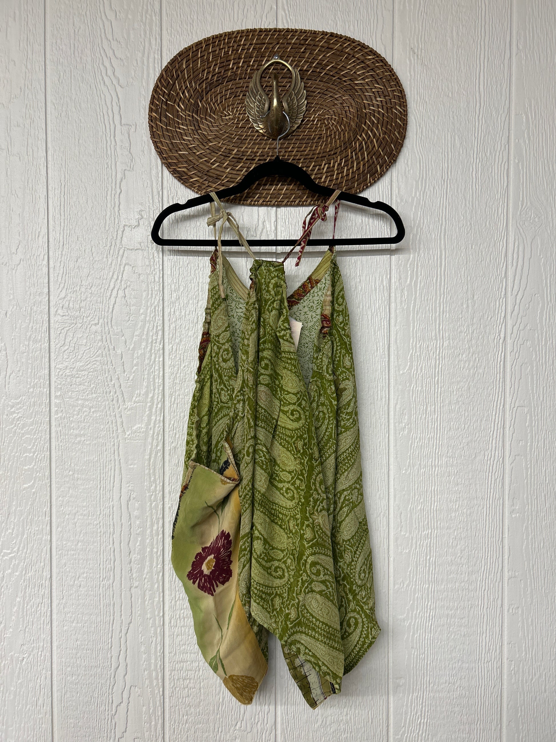 The perfect layering piece made from vintage crepe silk sari. Features tie straps that also cinch for customization.