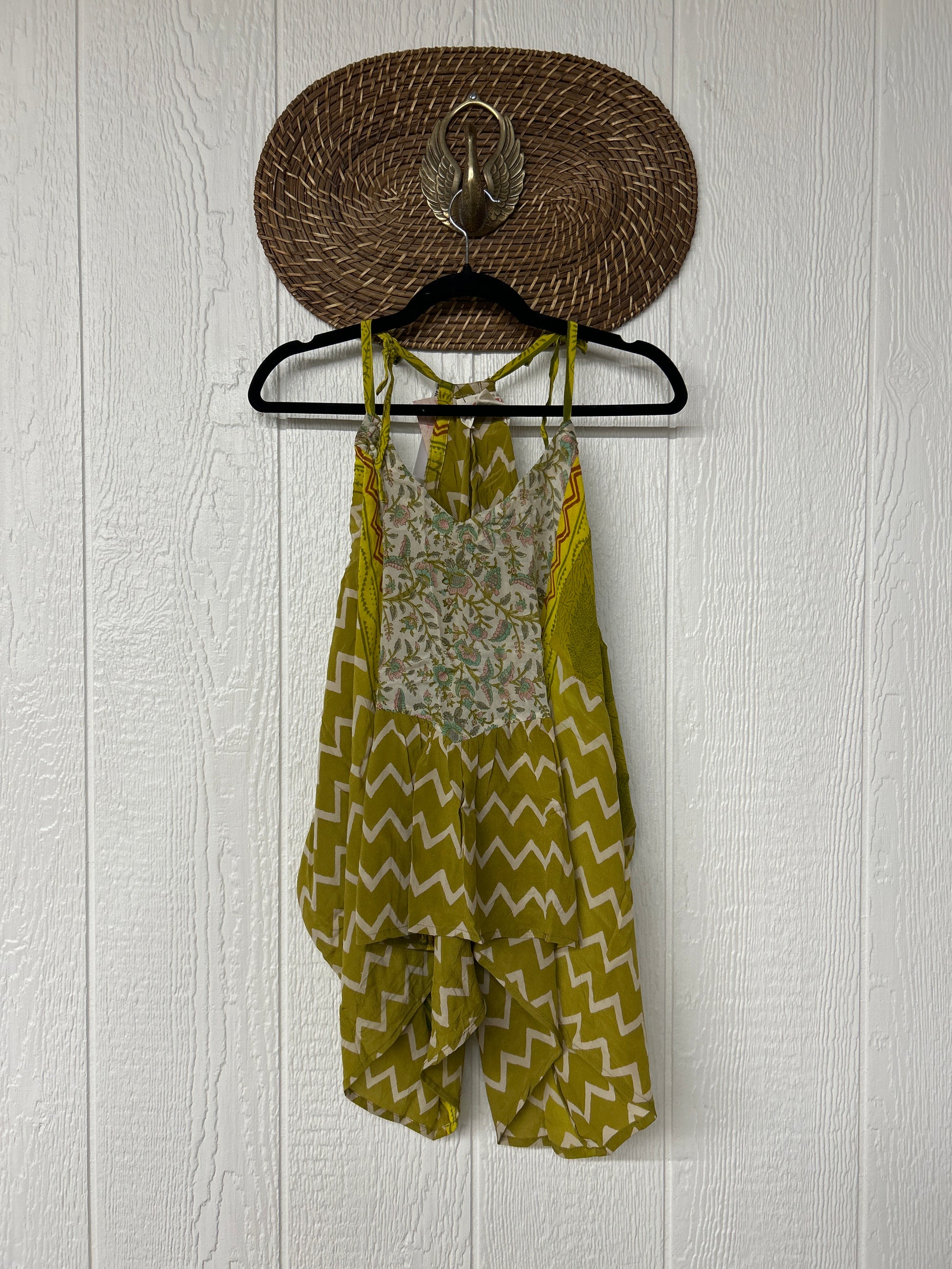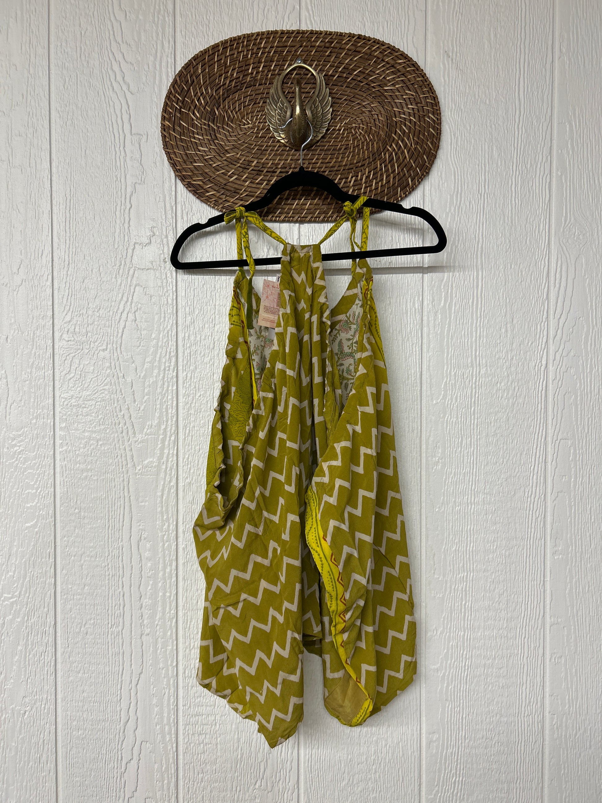 The perfect layering piece made from vintage crepe silk sari. Features tie straps that also cinch for customization.
