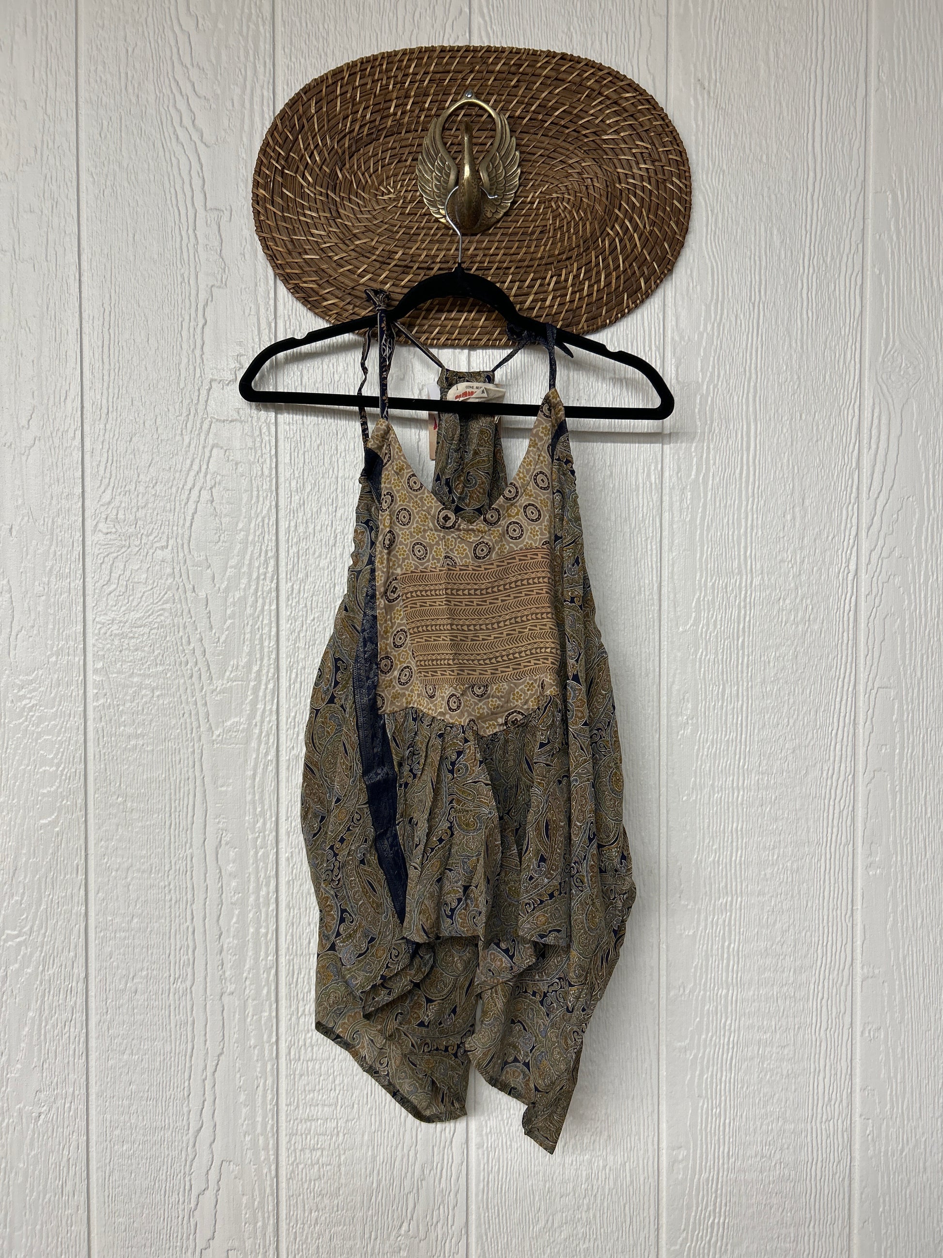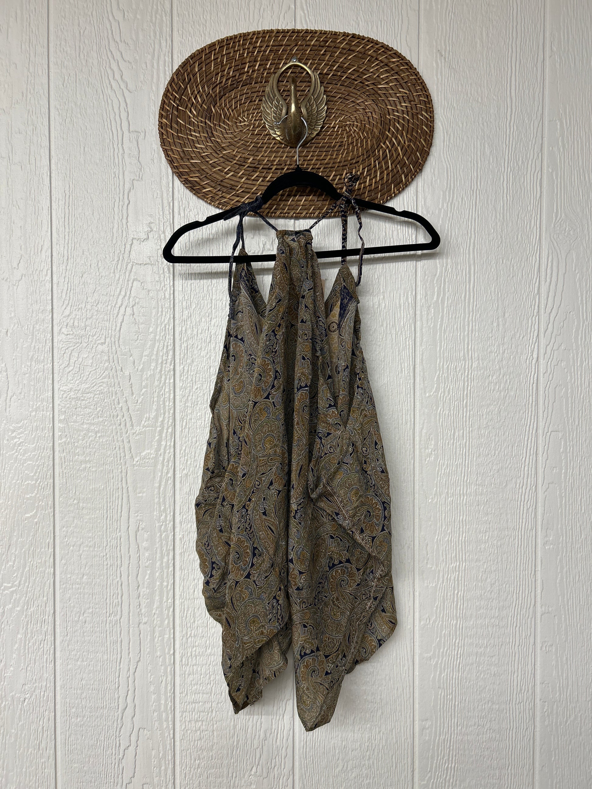The perfect layering piece made from vintage crepe silk sari. Features tie straps that also cinch for customization.