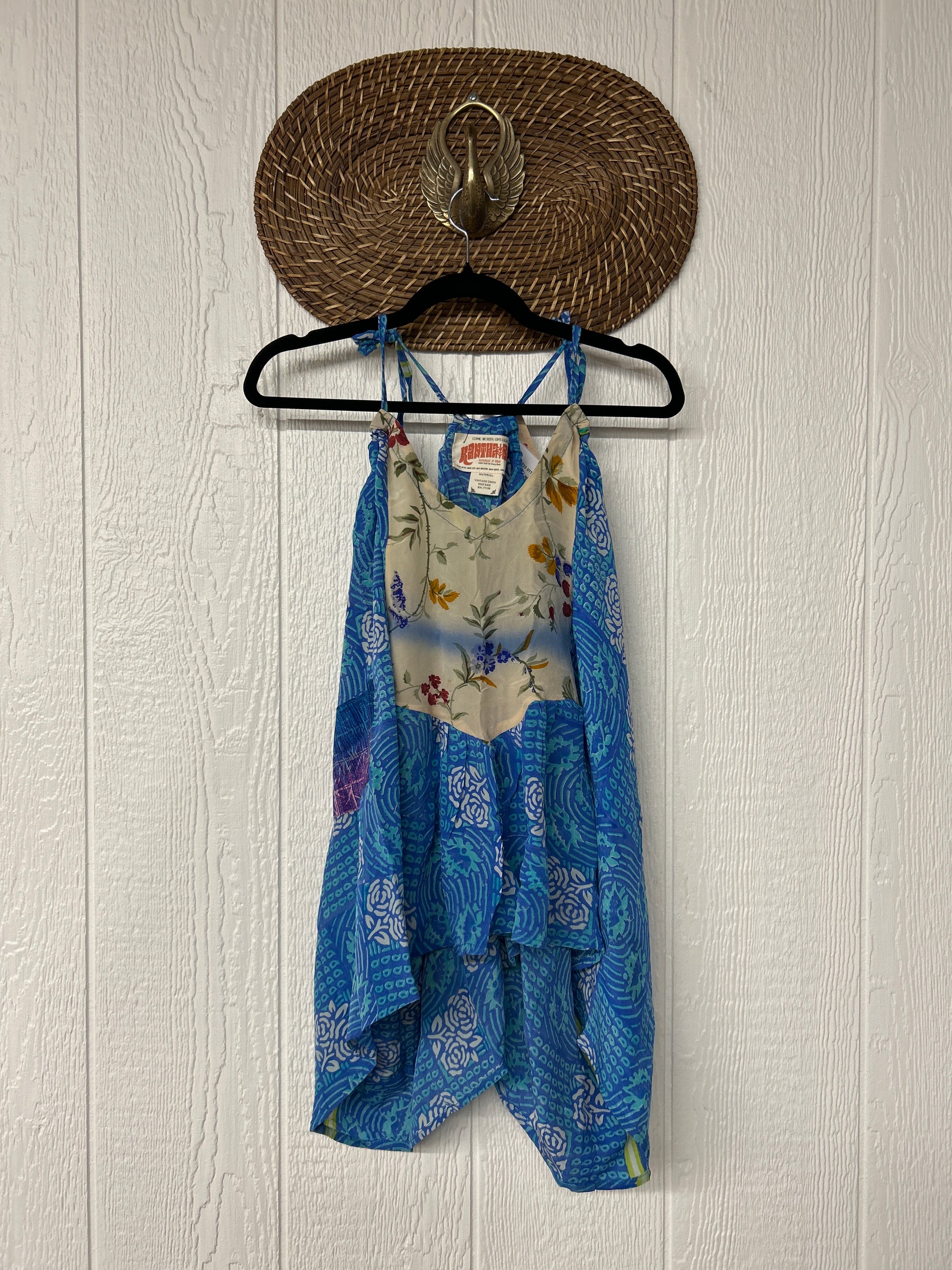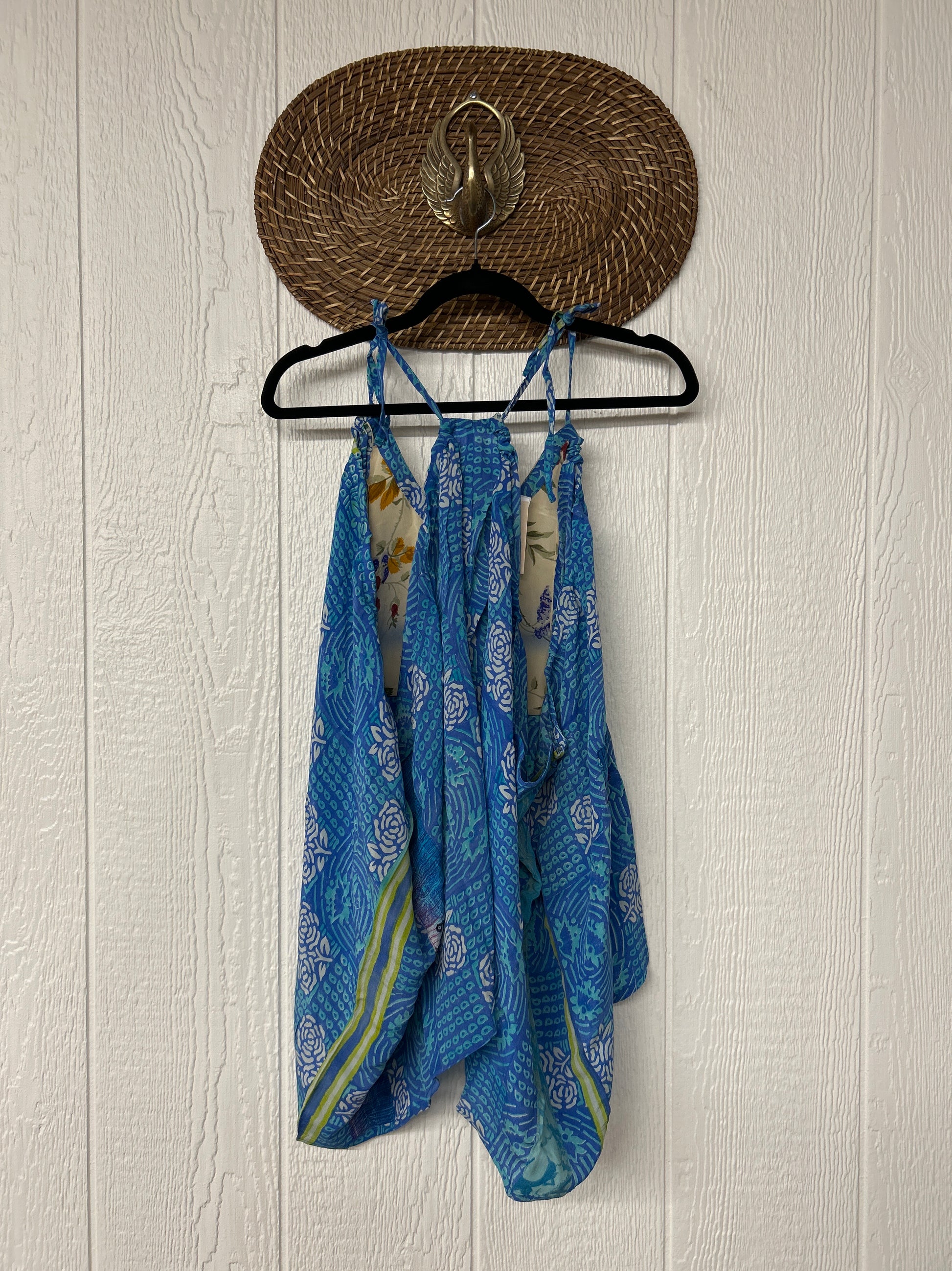 The perfect layering piece made from vintage crepe silk sari. Features tie straps that also cinch for customization.