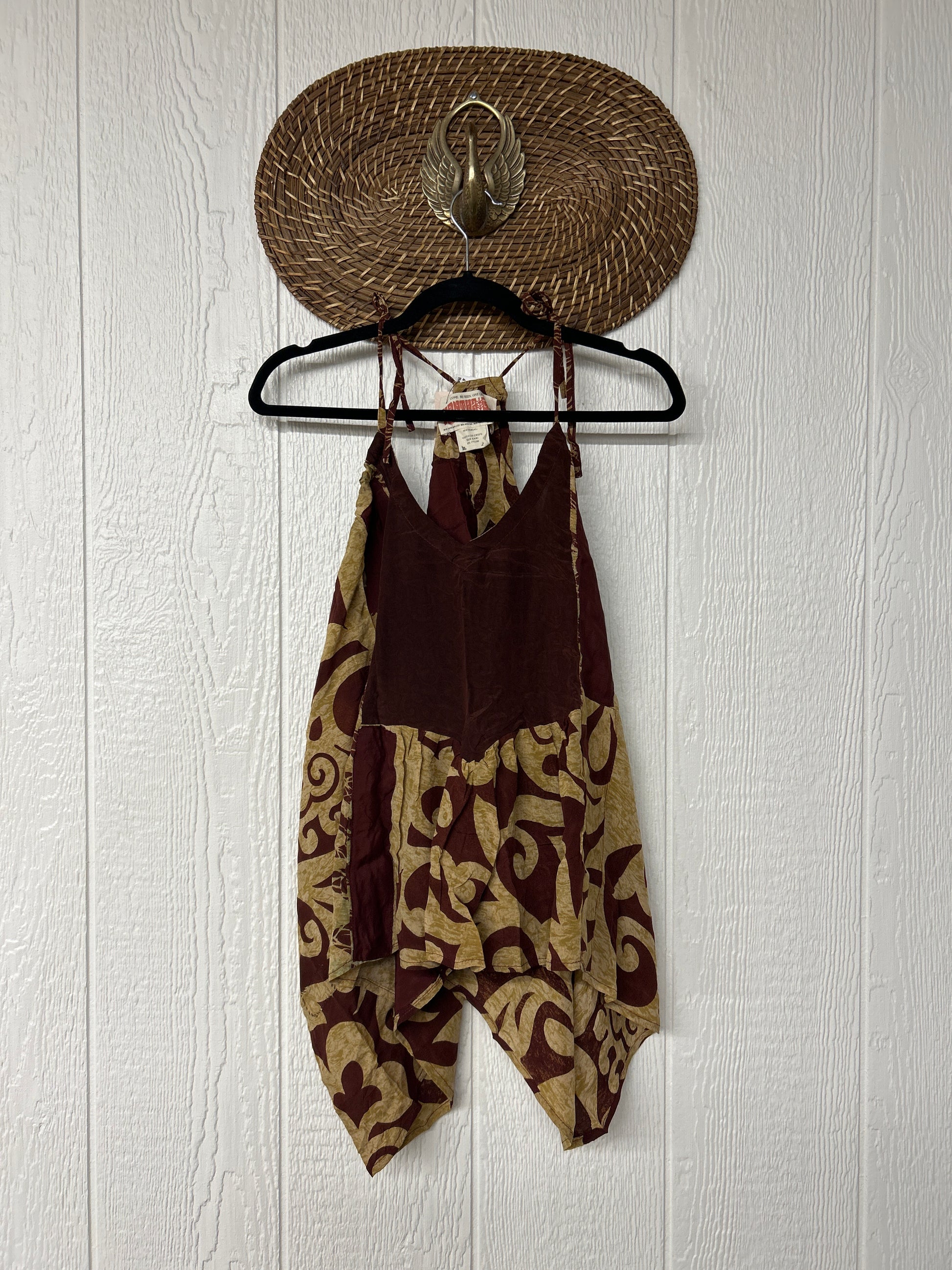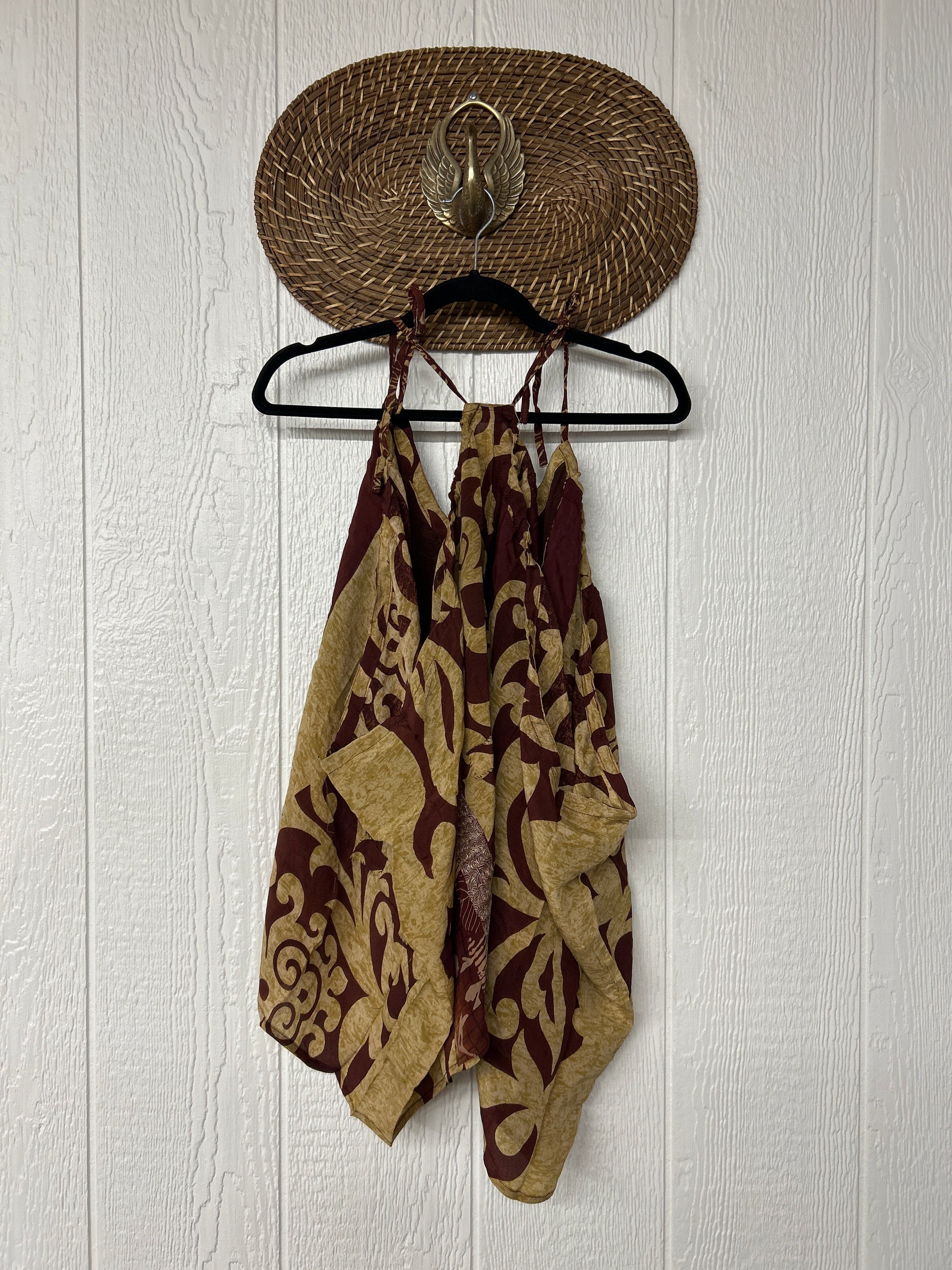 The perfect layering piece made from vintage crepe silk sari. Features tie straps that also cinch for customization.