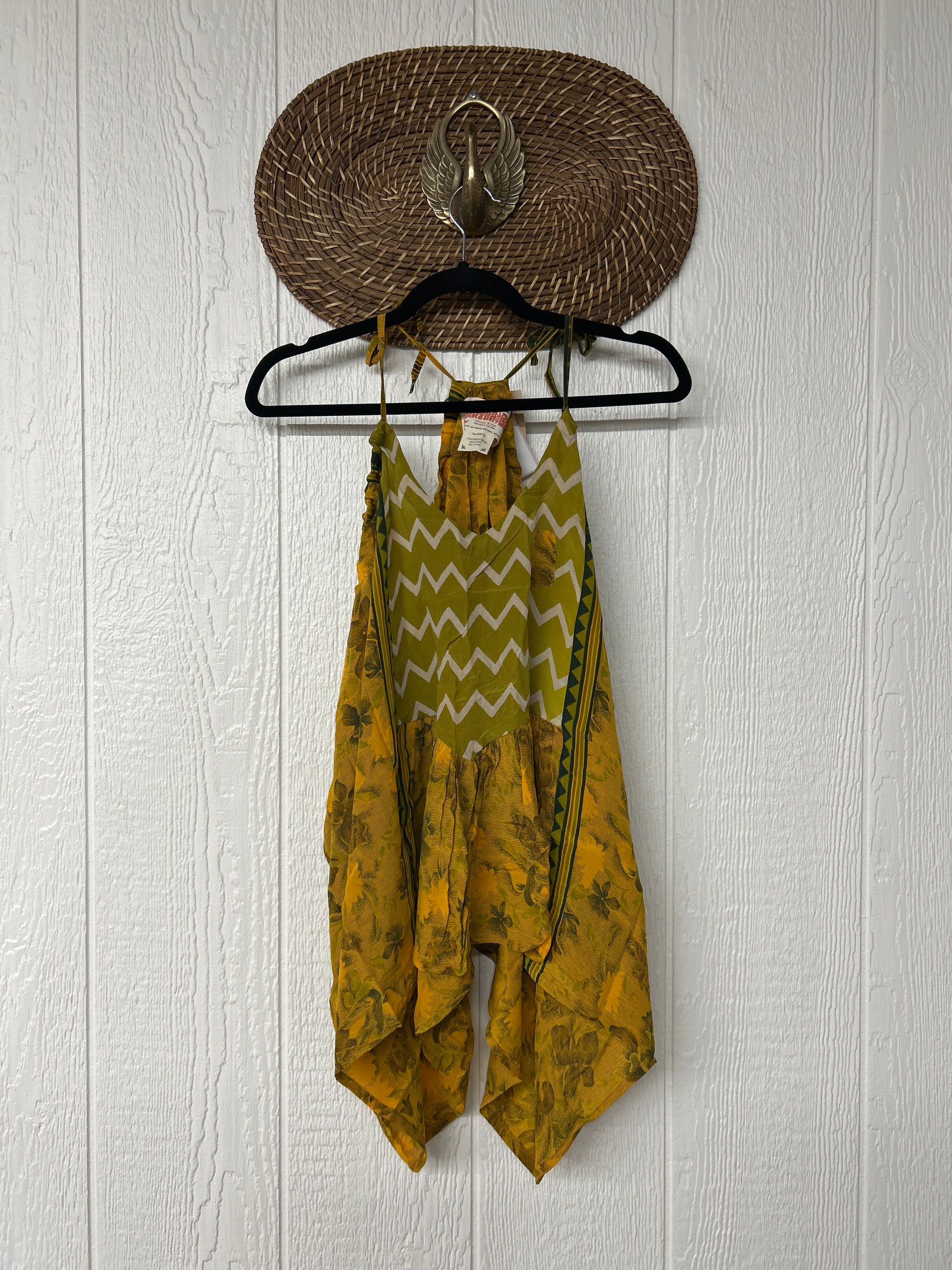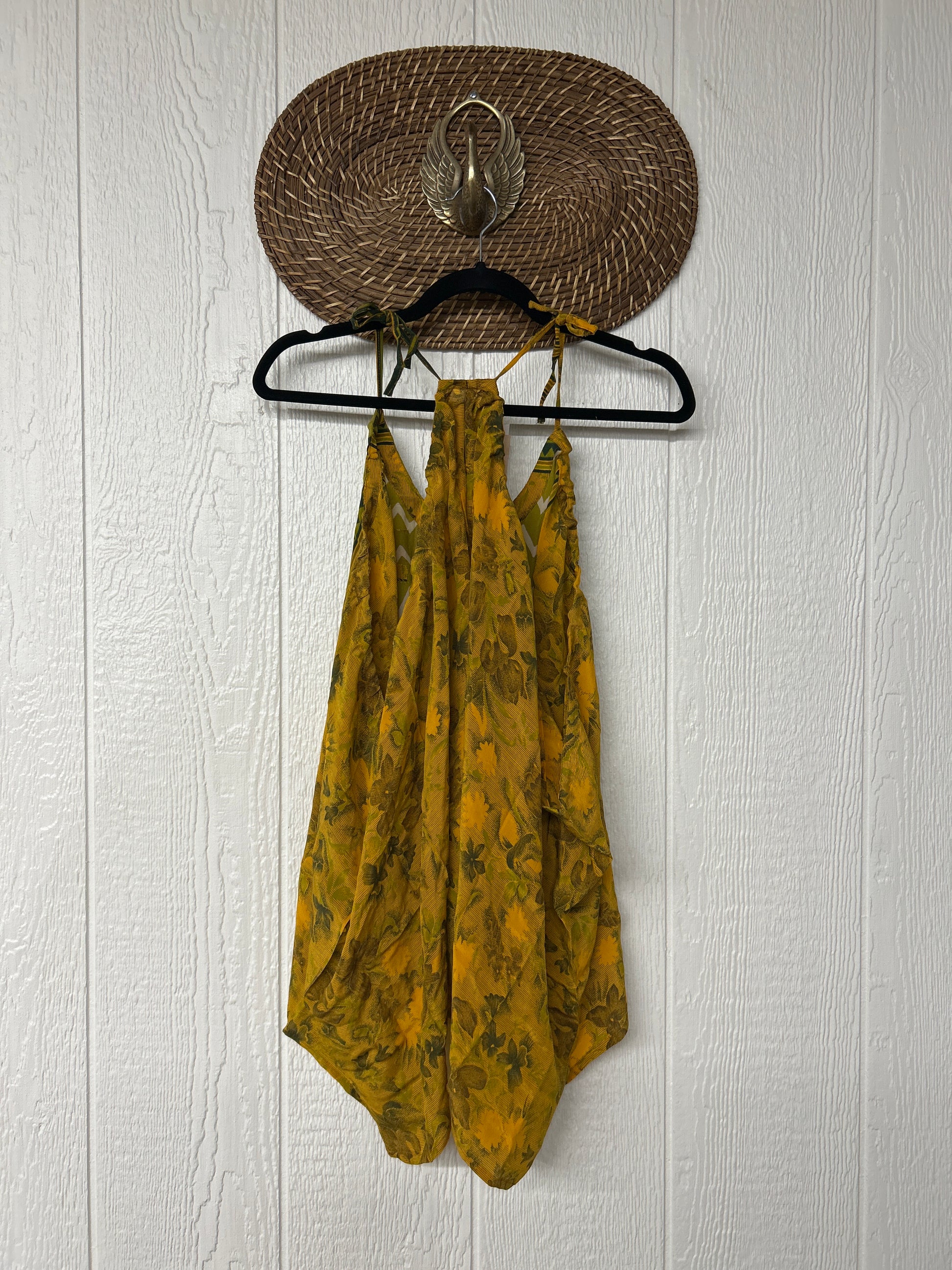 The perfect layering piece made from vintage crepe silk sari. Features tie straps that also cinch for customization.