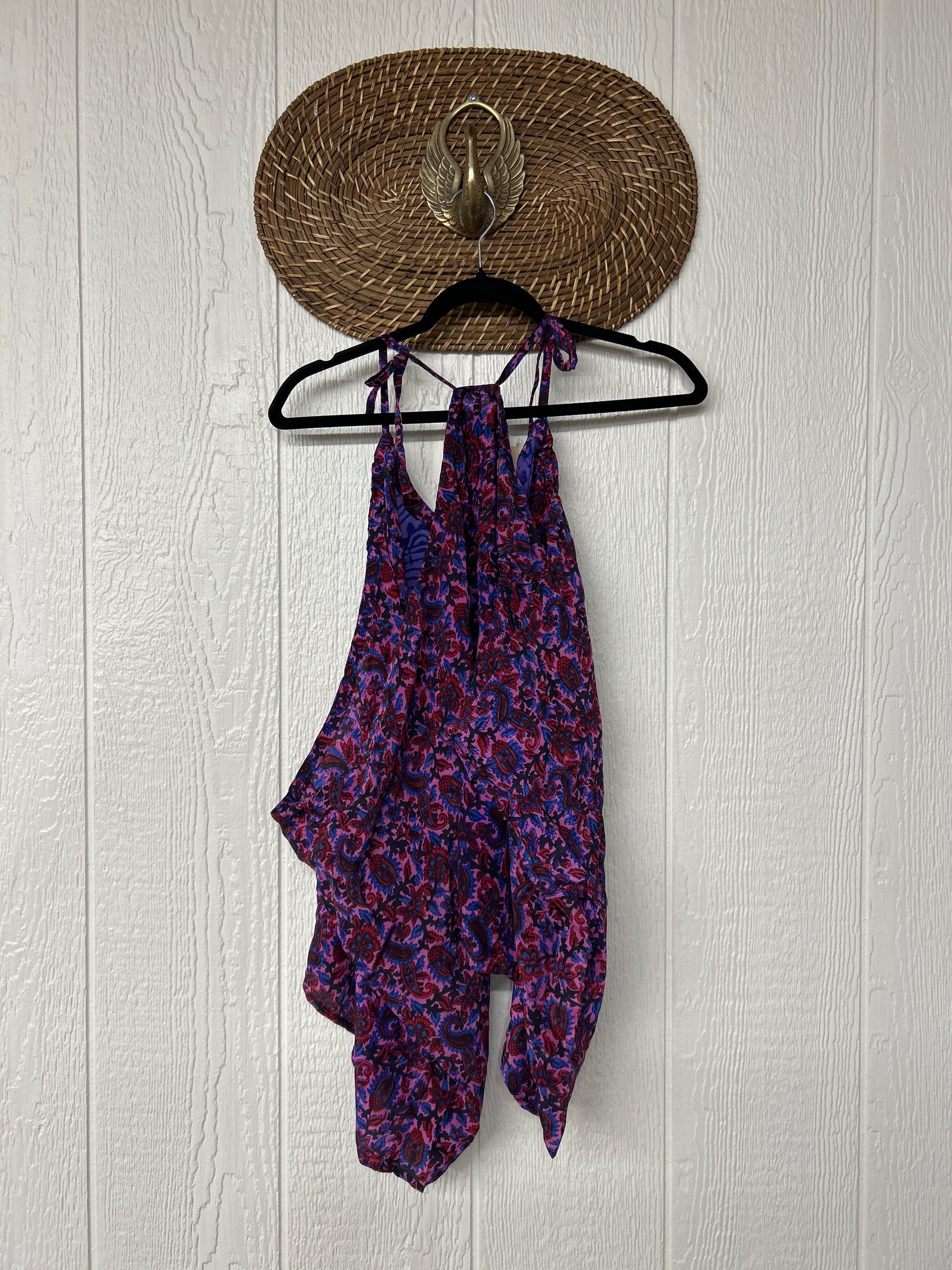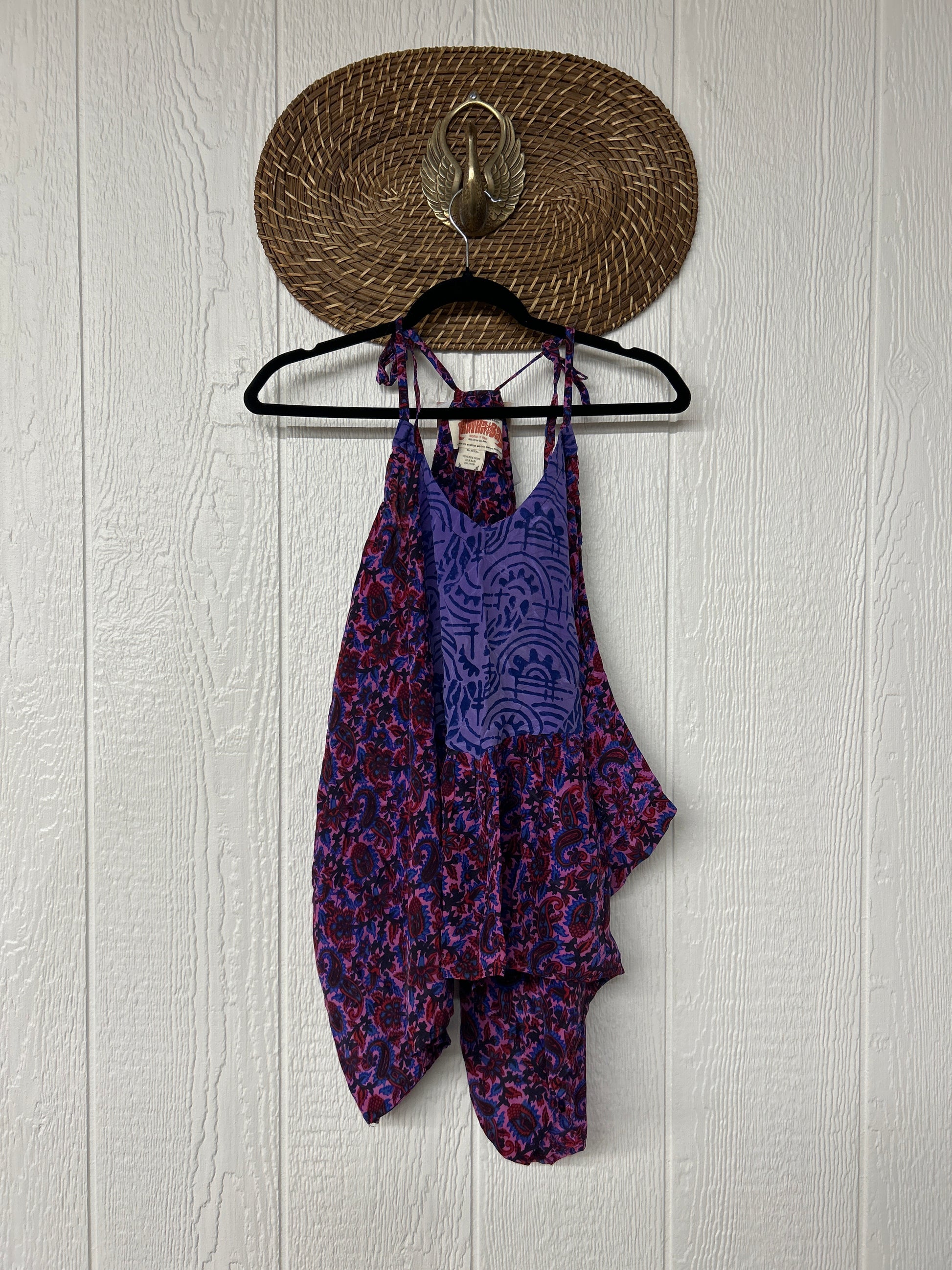The perfect layering piece made from vintage crepe silk sari. Features tie straps that also cinch for customization.