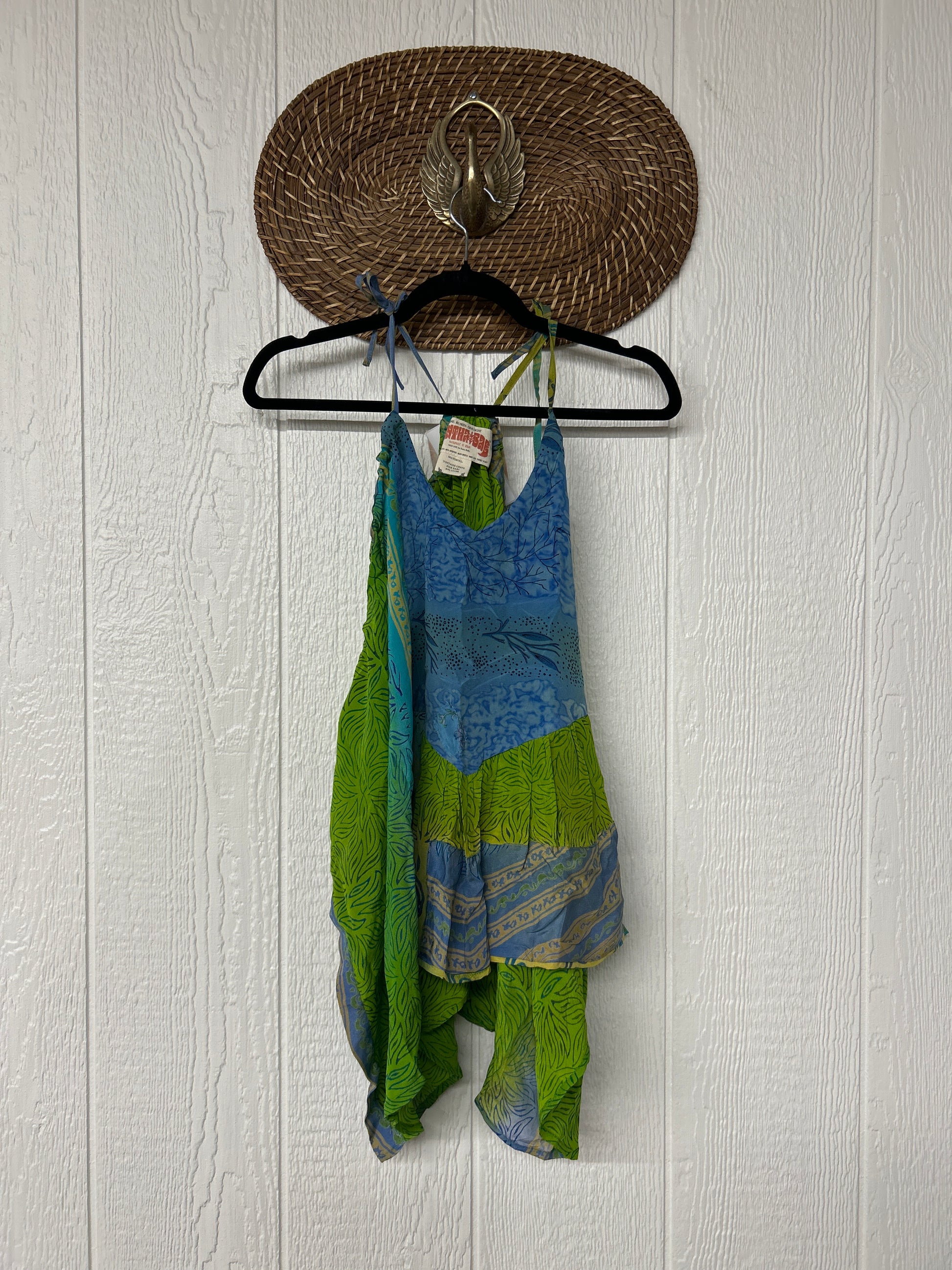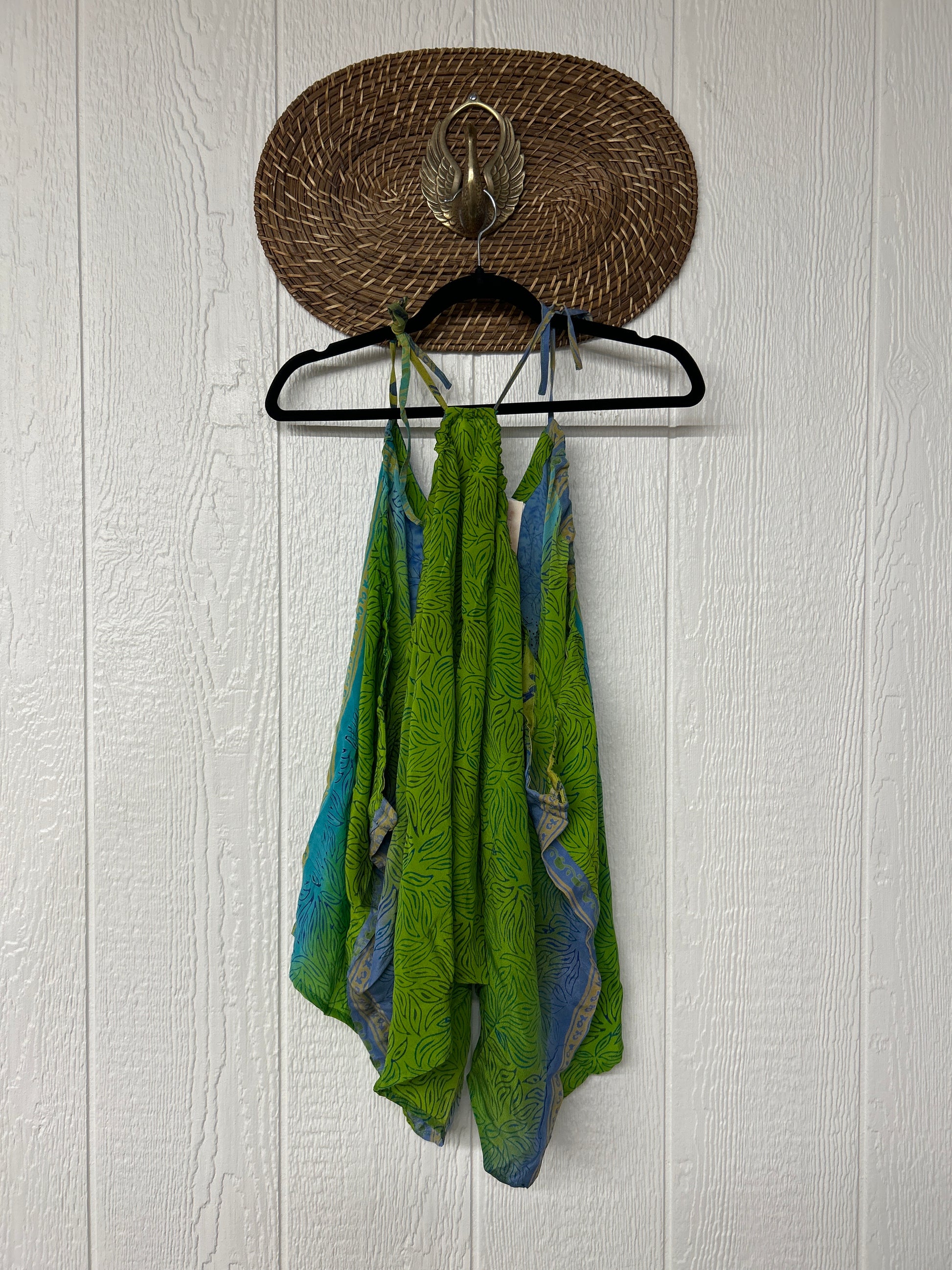 The perfect layering piece made from vintage crepe silk sari. Features tie straps that also cinch for customization.