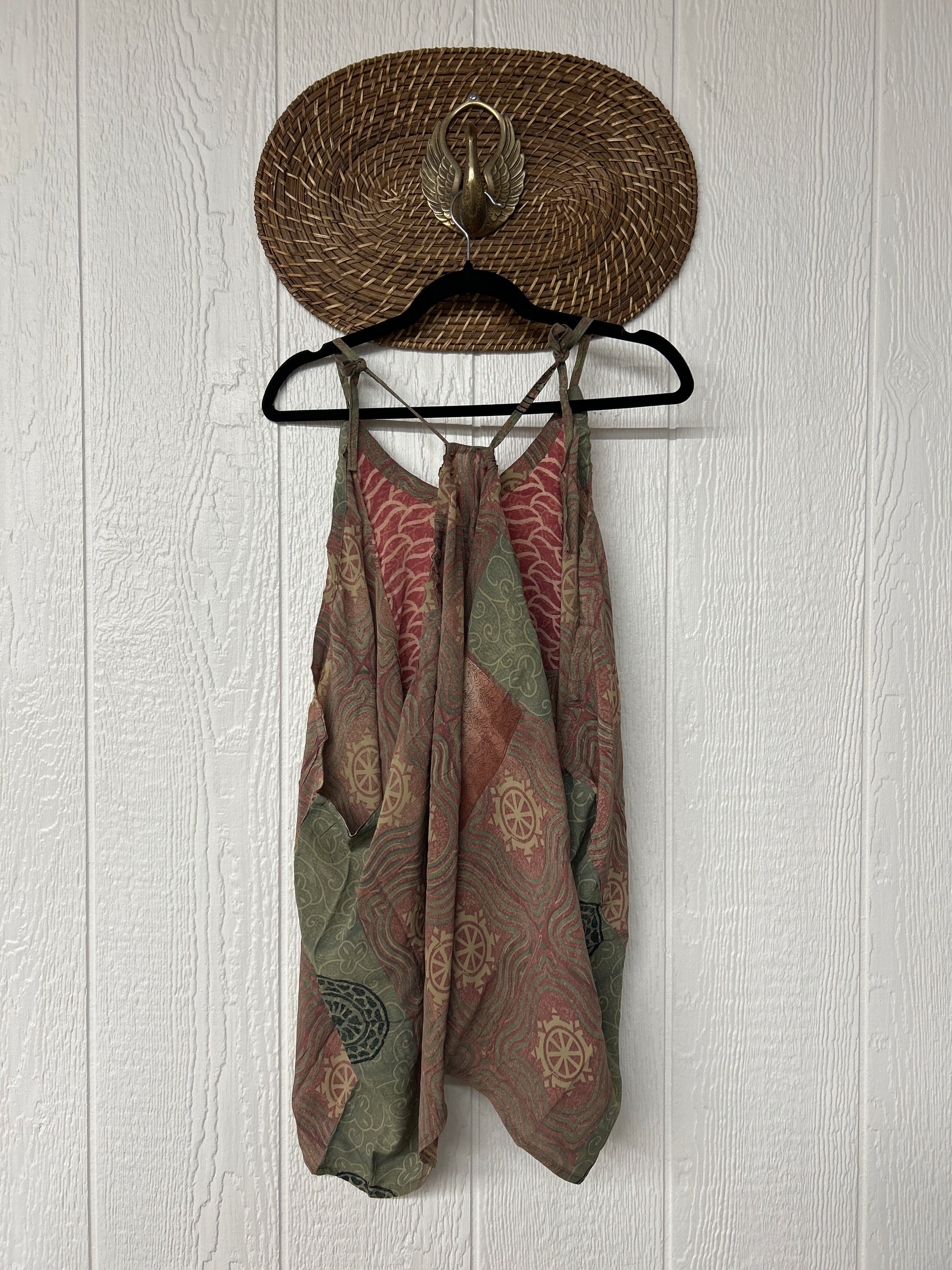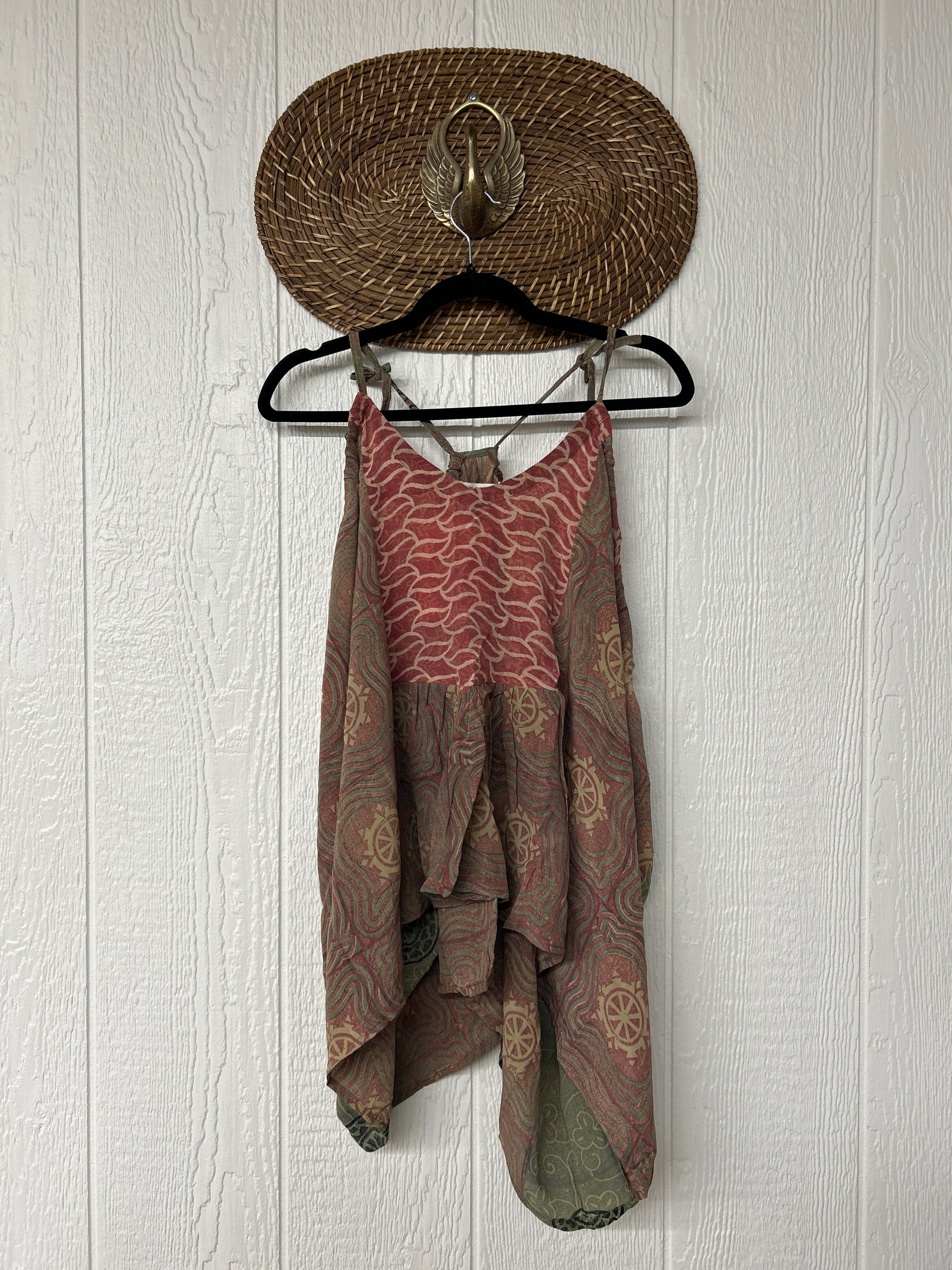The perfect layering piece made from vintage crepe silk sari. Features tie straps that also cinch for customization.