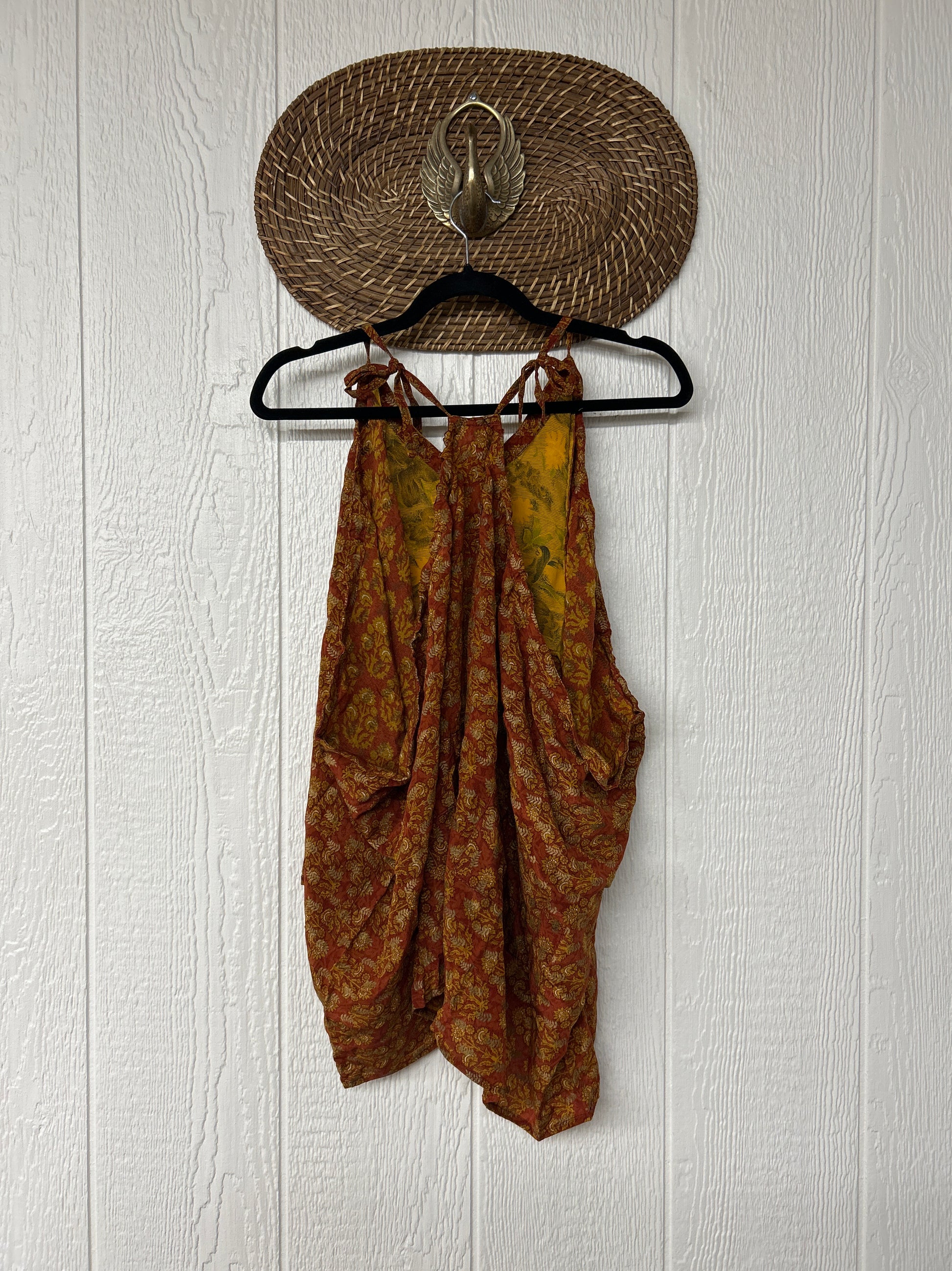 The perfect layering piece made from vintage crepe silk sari. Features tie straps that also cinch for customization.