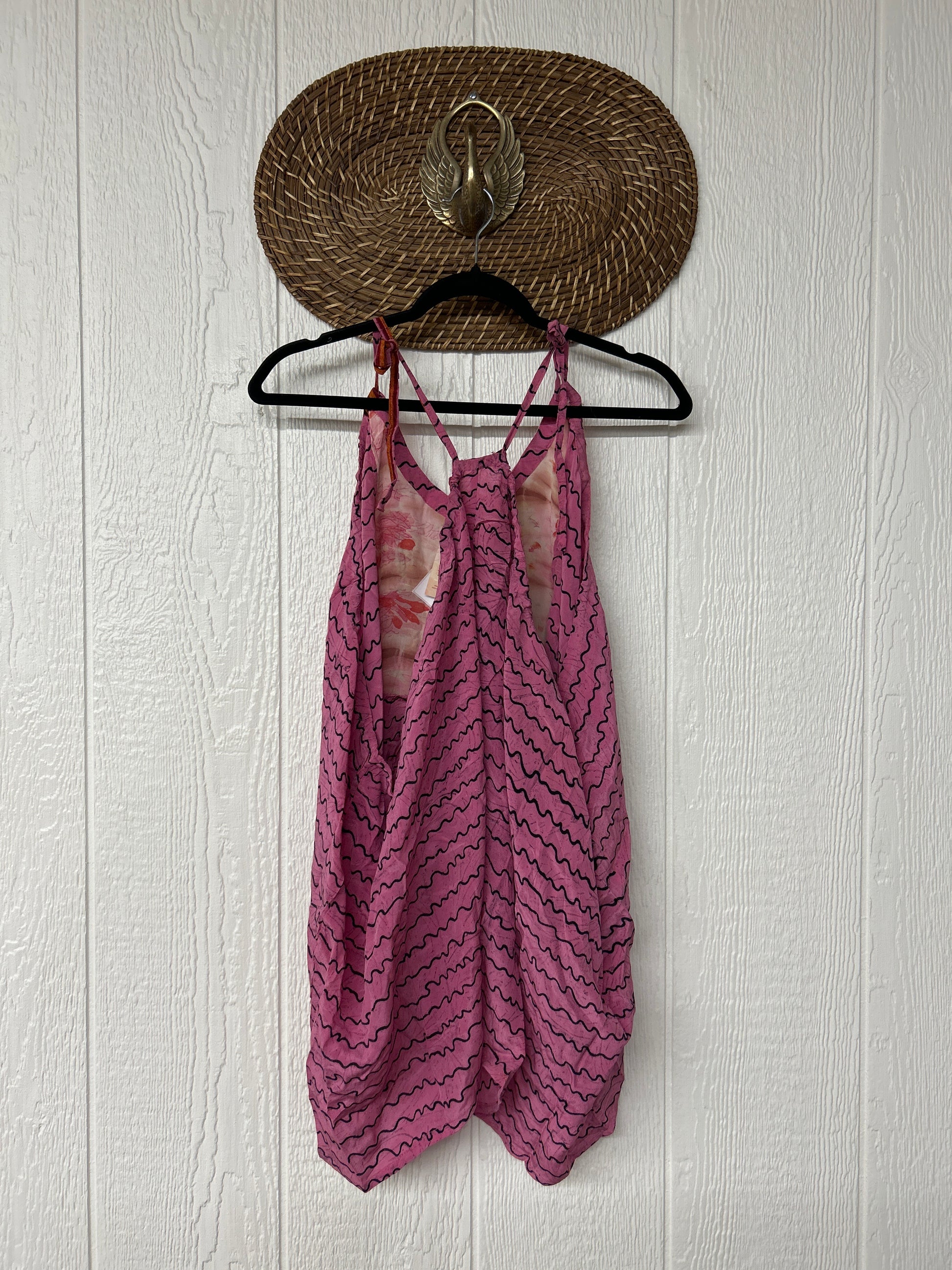 The perfect layering piece made from vintage crepe silk sari. Features tie straps that also cinch for customization.
