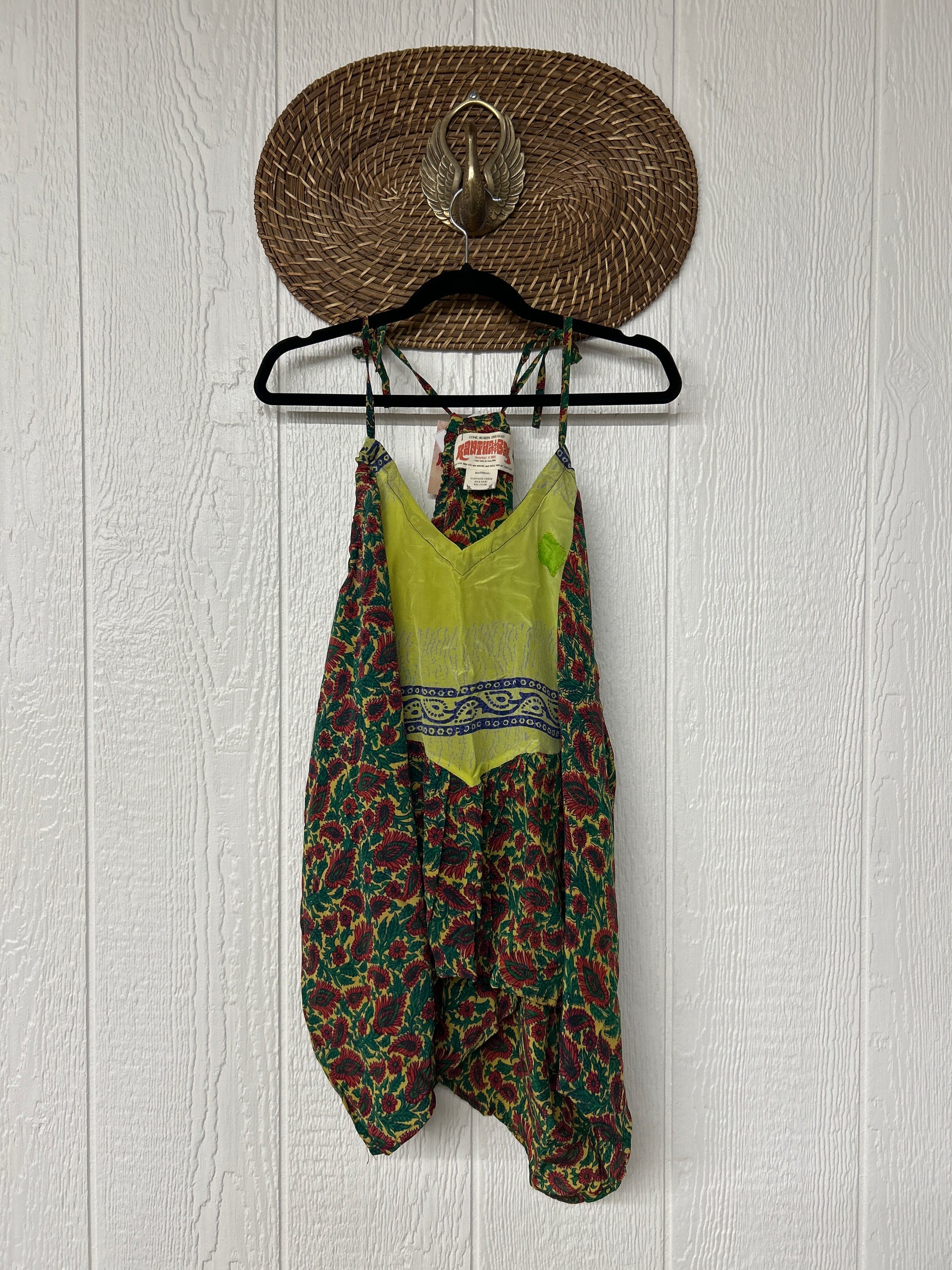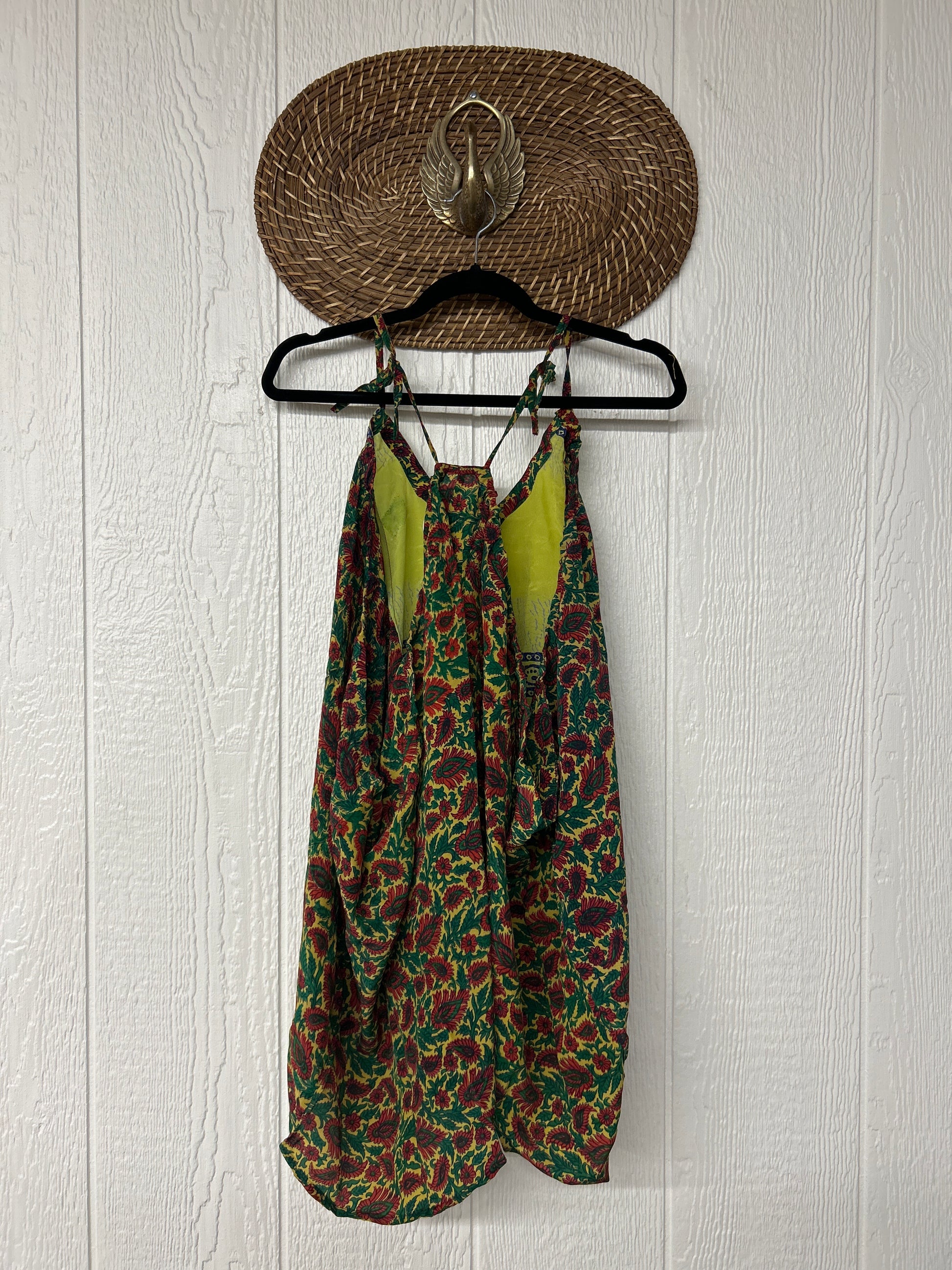 The perfect layering piece made from vintage crepe silk sari. Features tie straps that also cinch for customization.