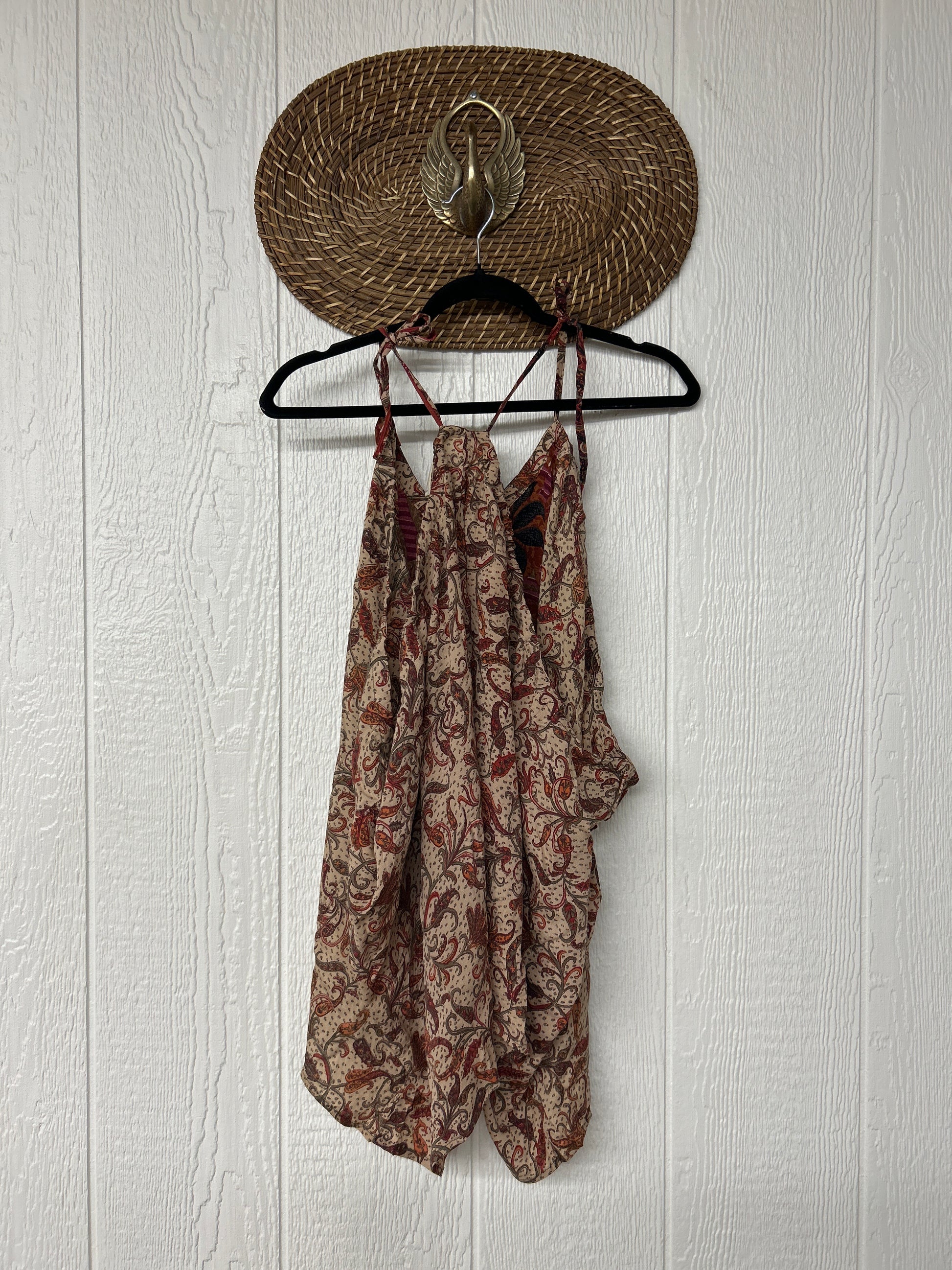 The perfect layering piece made from vintage crepe silk sari. Features tie straps that also cinch for customization.