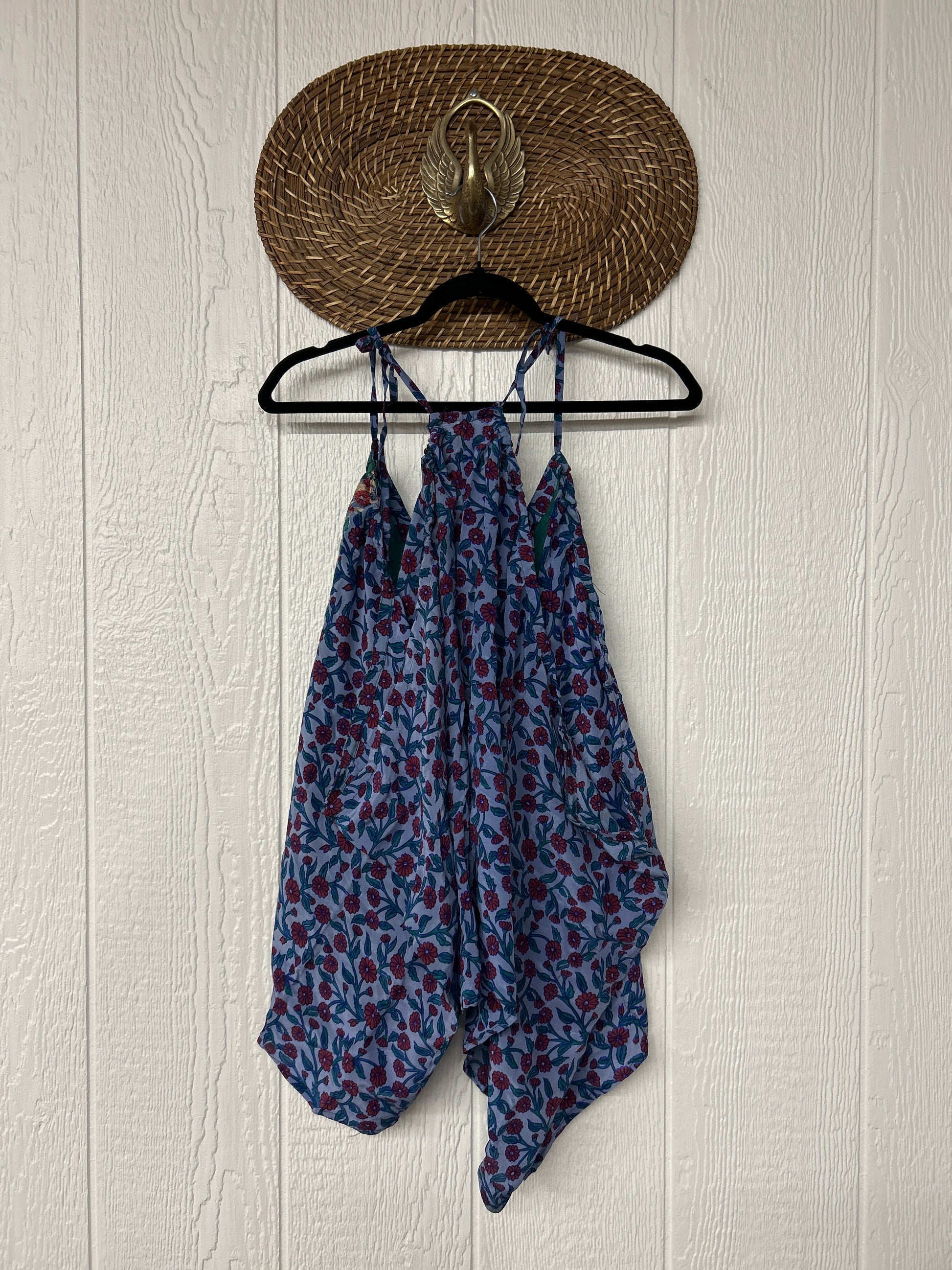 The perfect layering piece made from vintage crepe silk sari. Features tie straps that also cinch for customization.