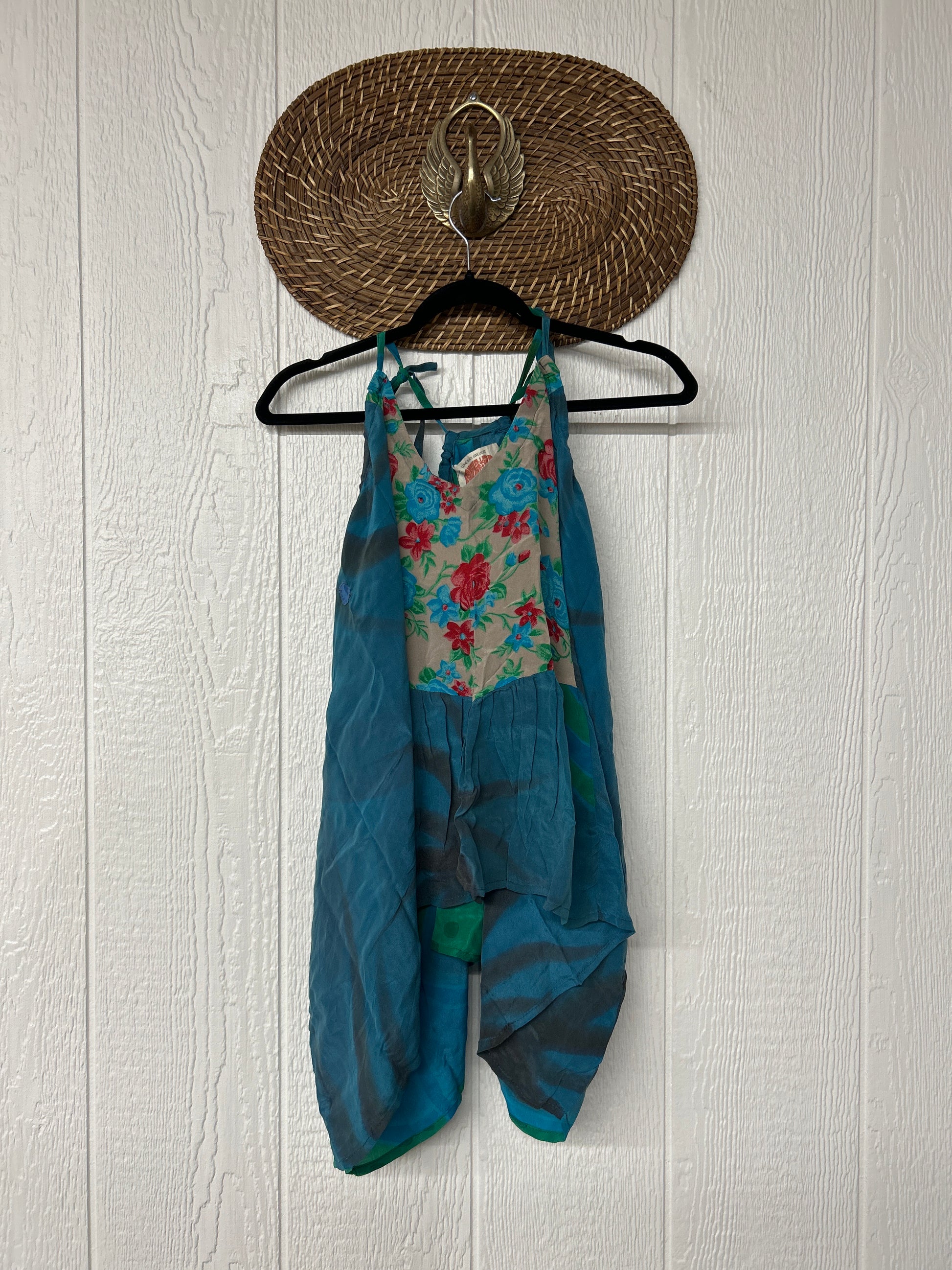 The perfect layering piece made from vintage crepe silk sari. Features tie straps that also cinch for customization.