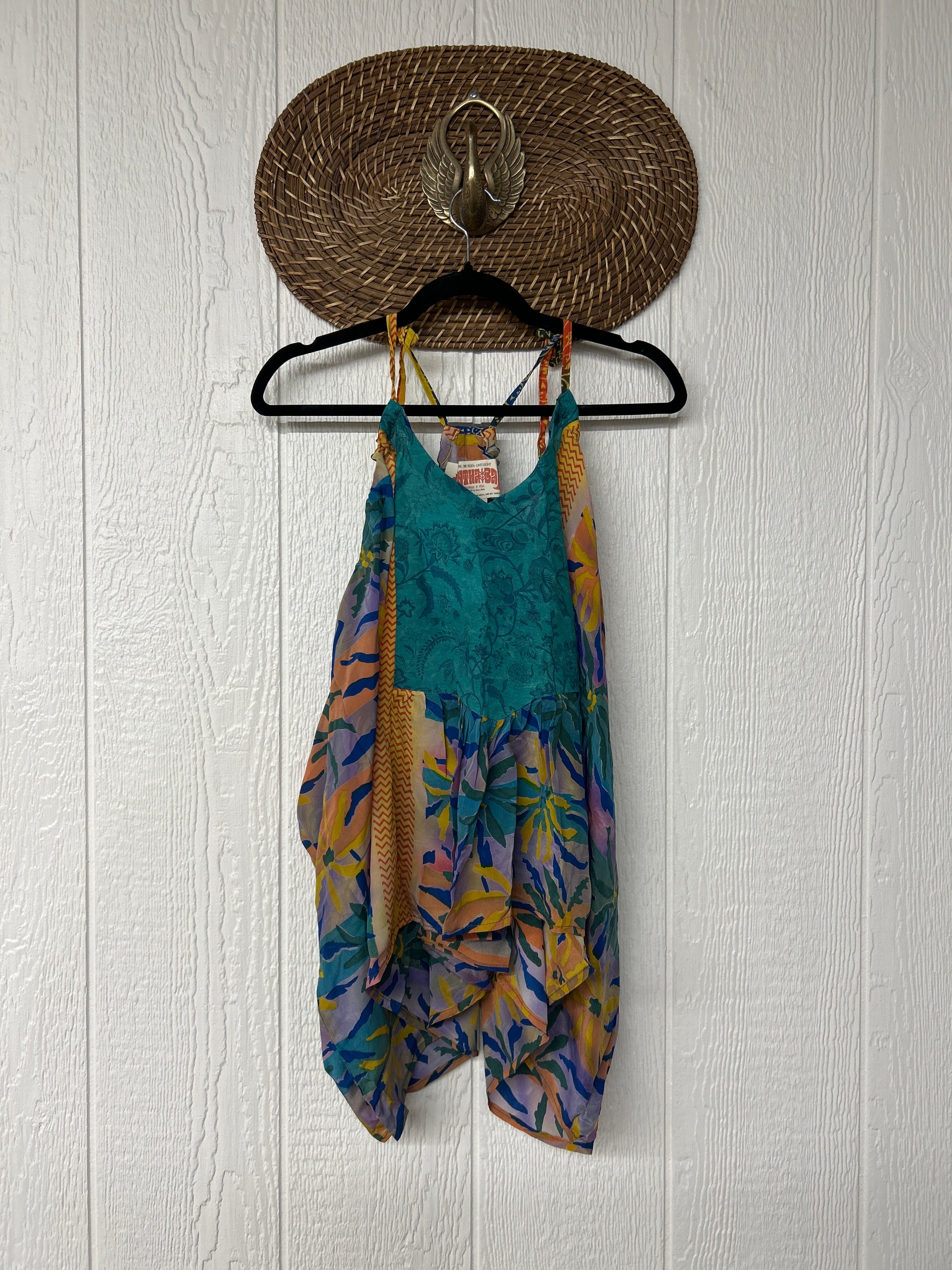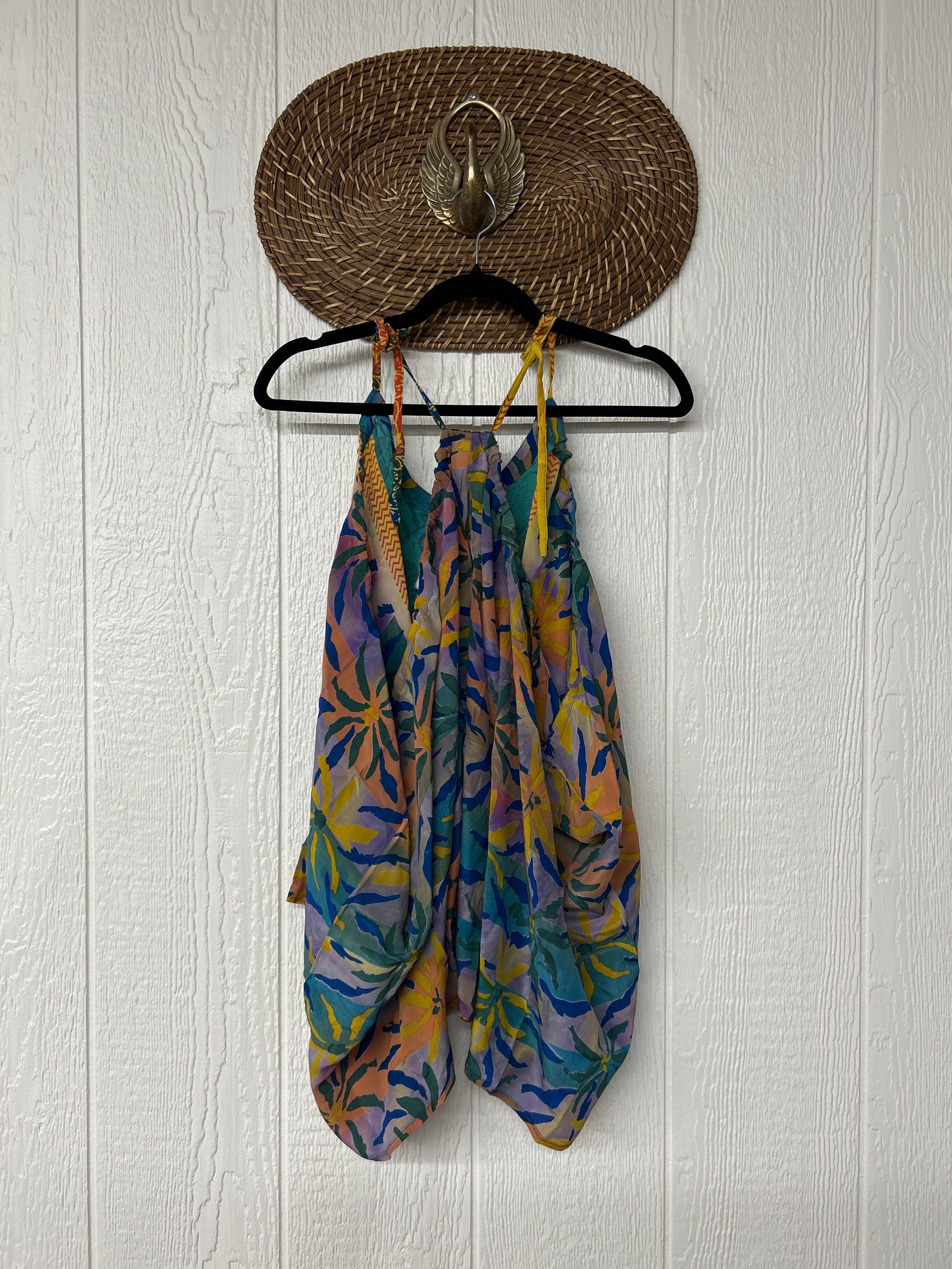The perfect layering piece made from vintage crepe silk sari. Features tie straps that also cinch for customization.