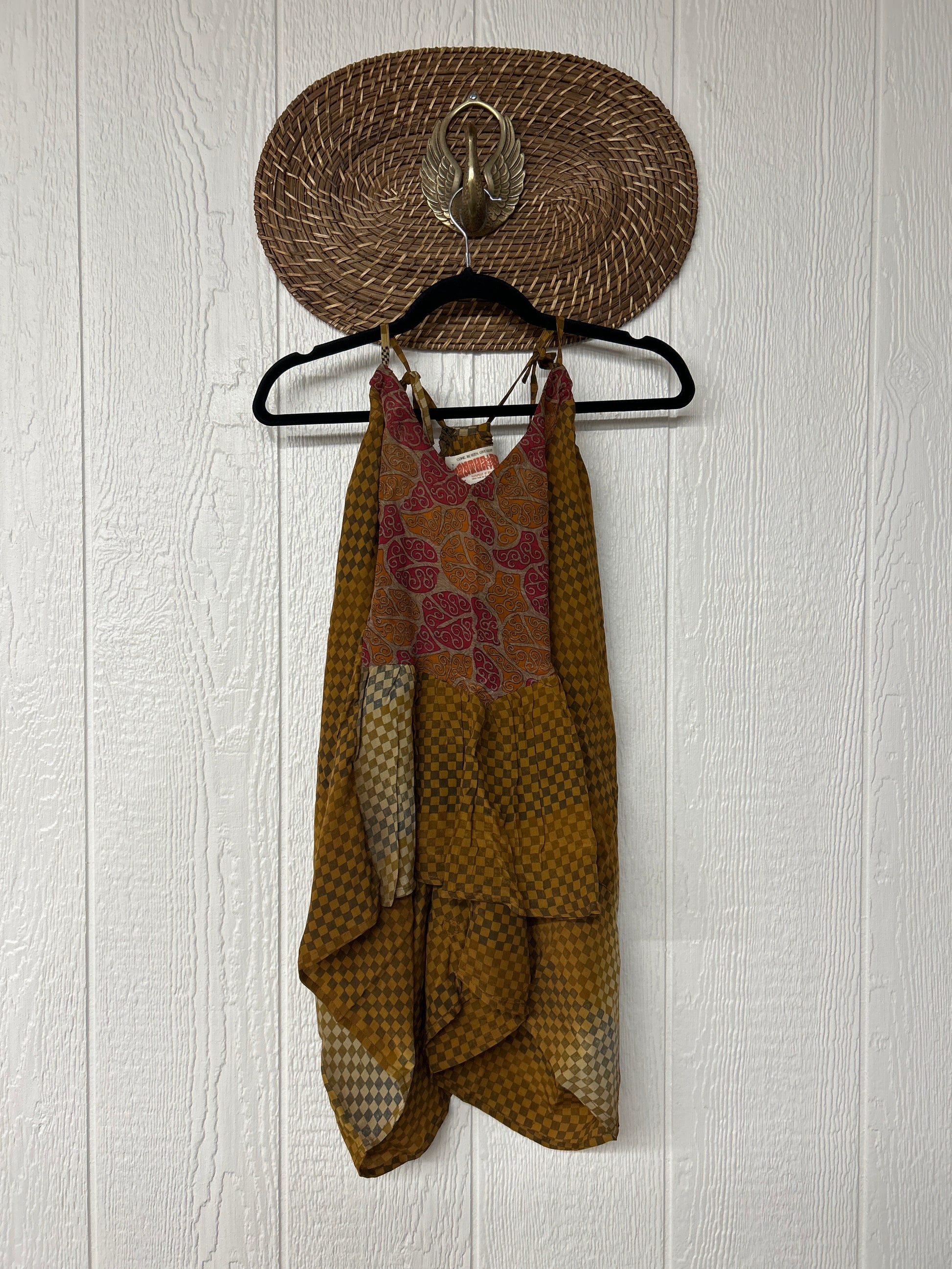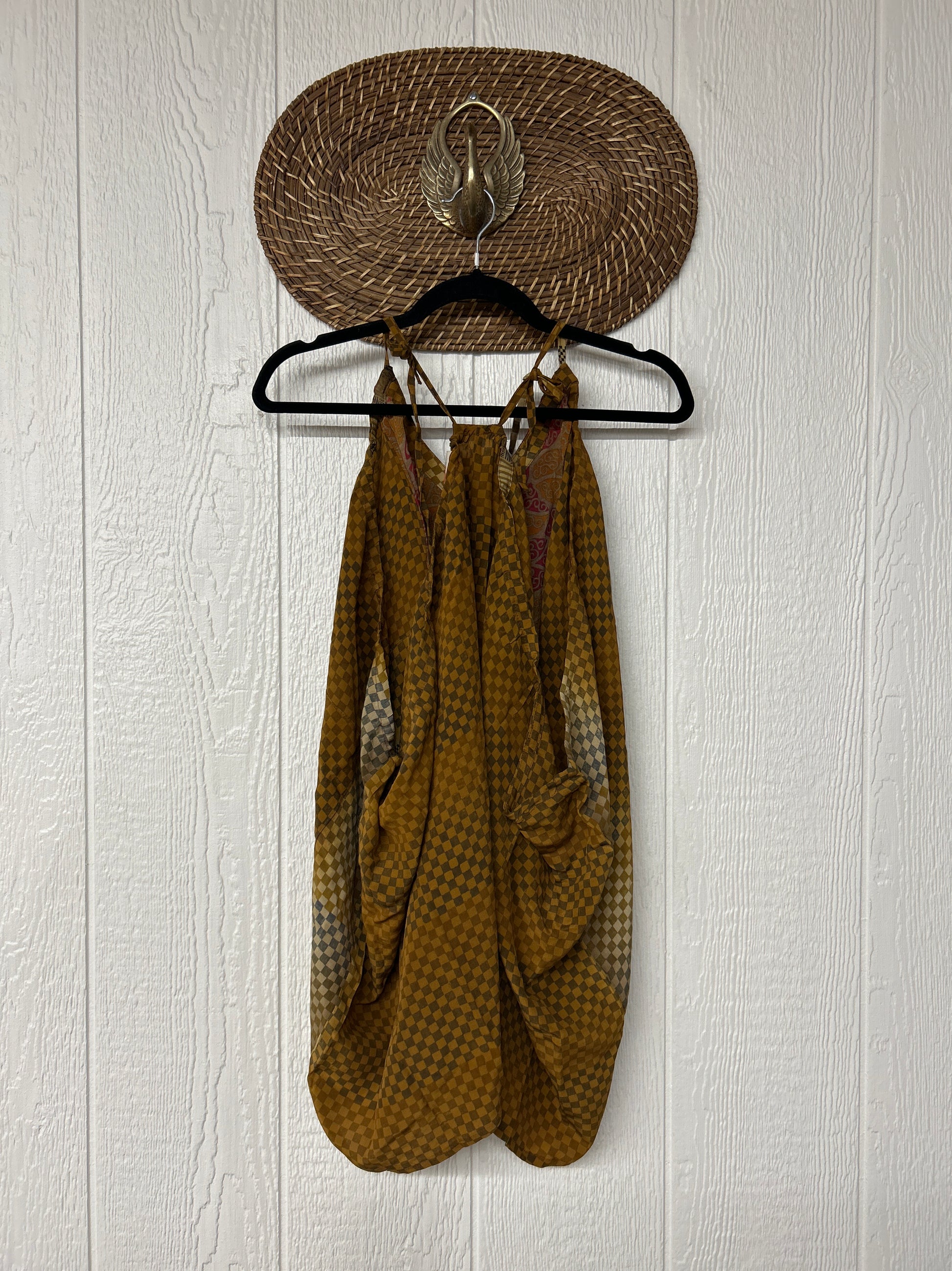 The perfect layering piece made from vintage crepe silk sari. Features tie straps that also cinch for customization.