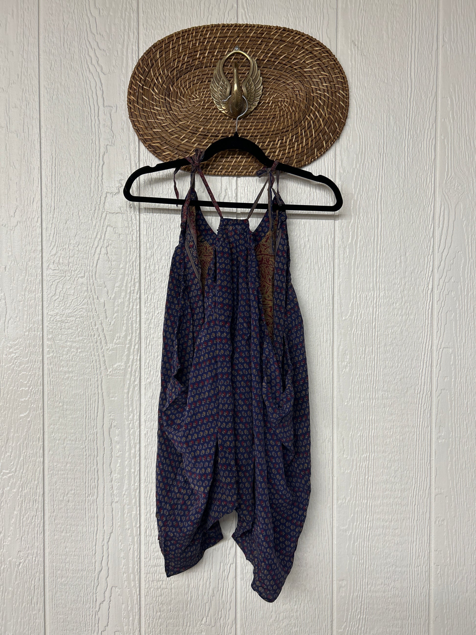 The perfect layering piece made from vintage crepe silk sari. Features tie straps that also cinch for customization.