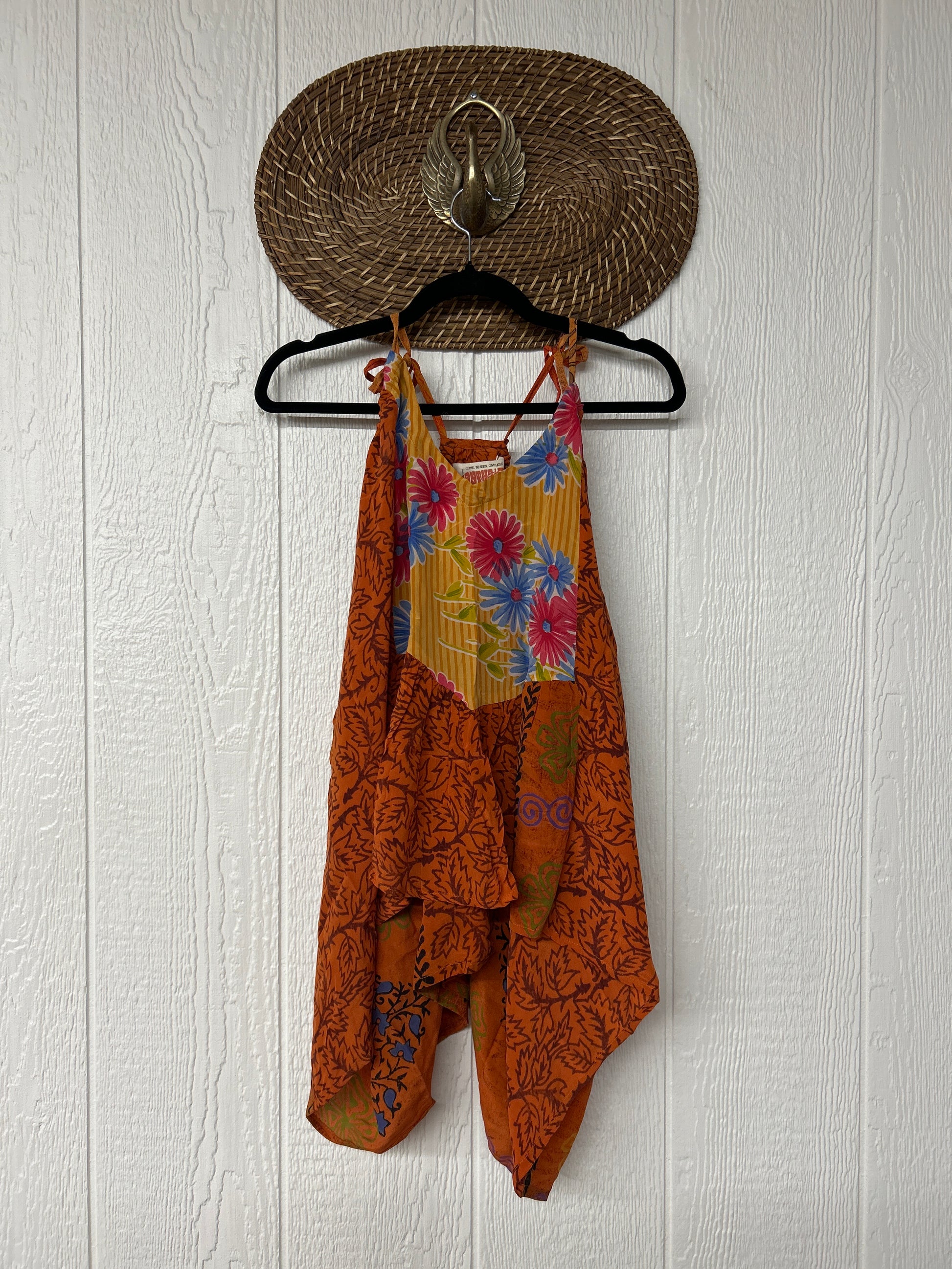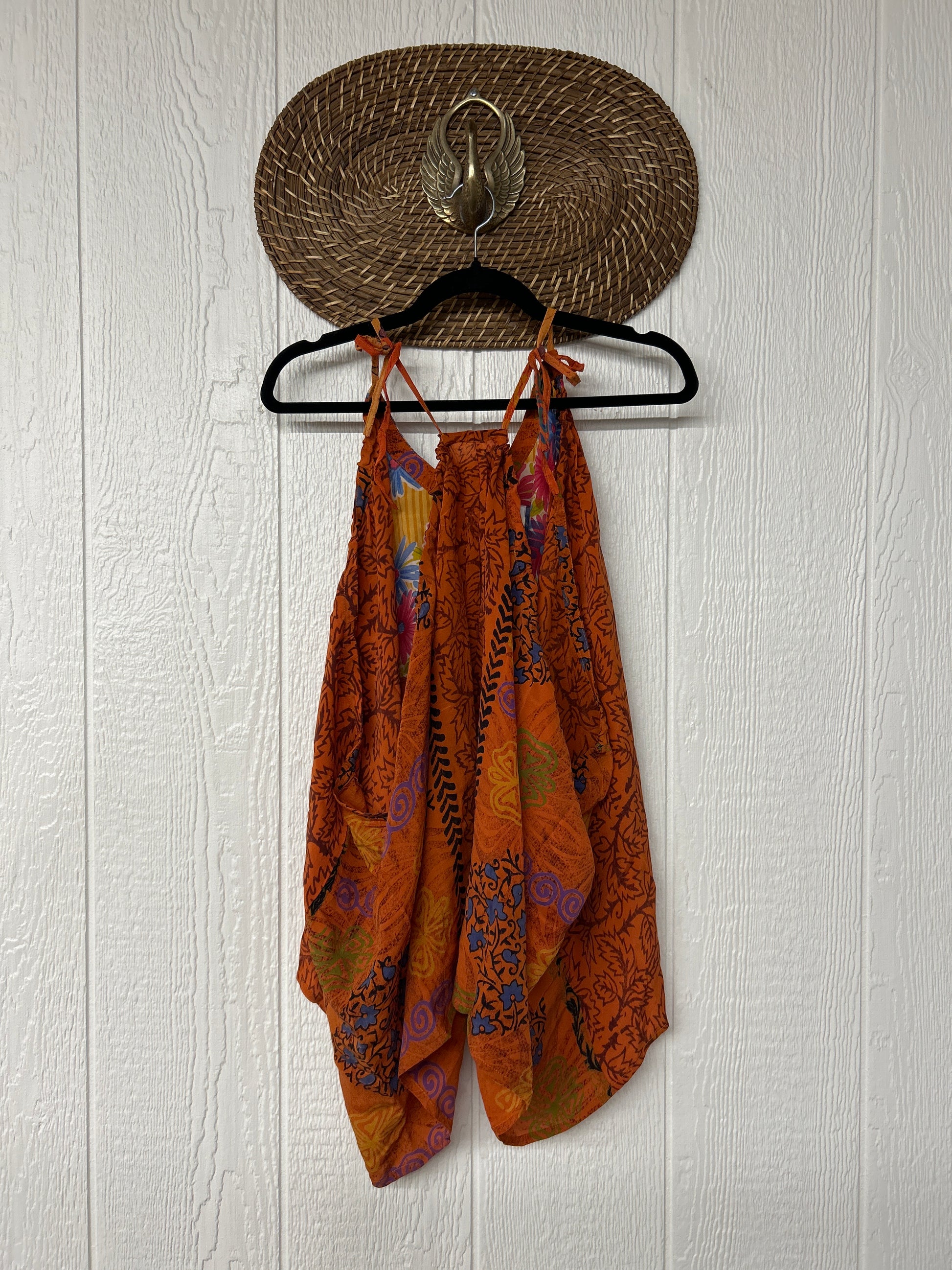 The perfect layering piece made from vintage crepe silk sari. Features tie straps that also cinch for customization.