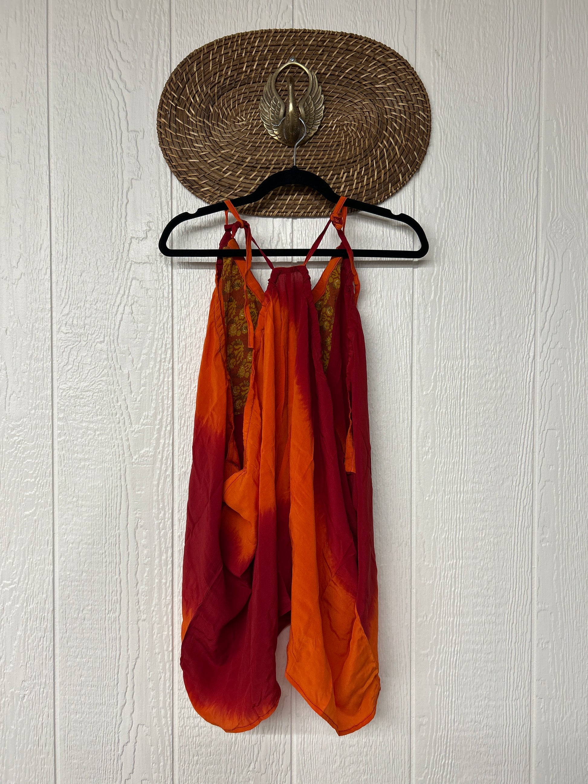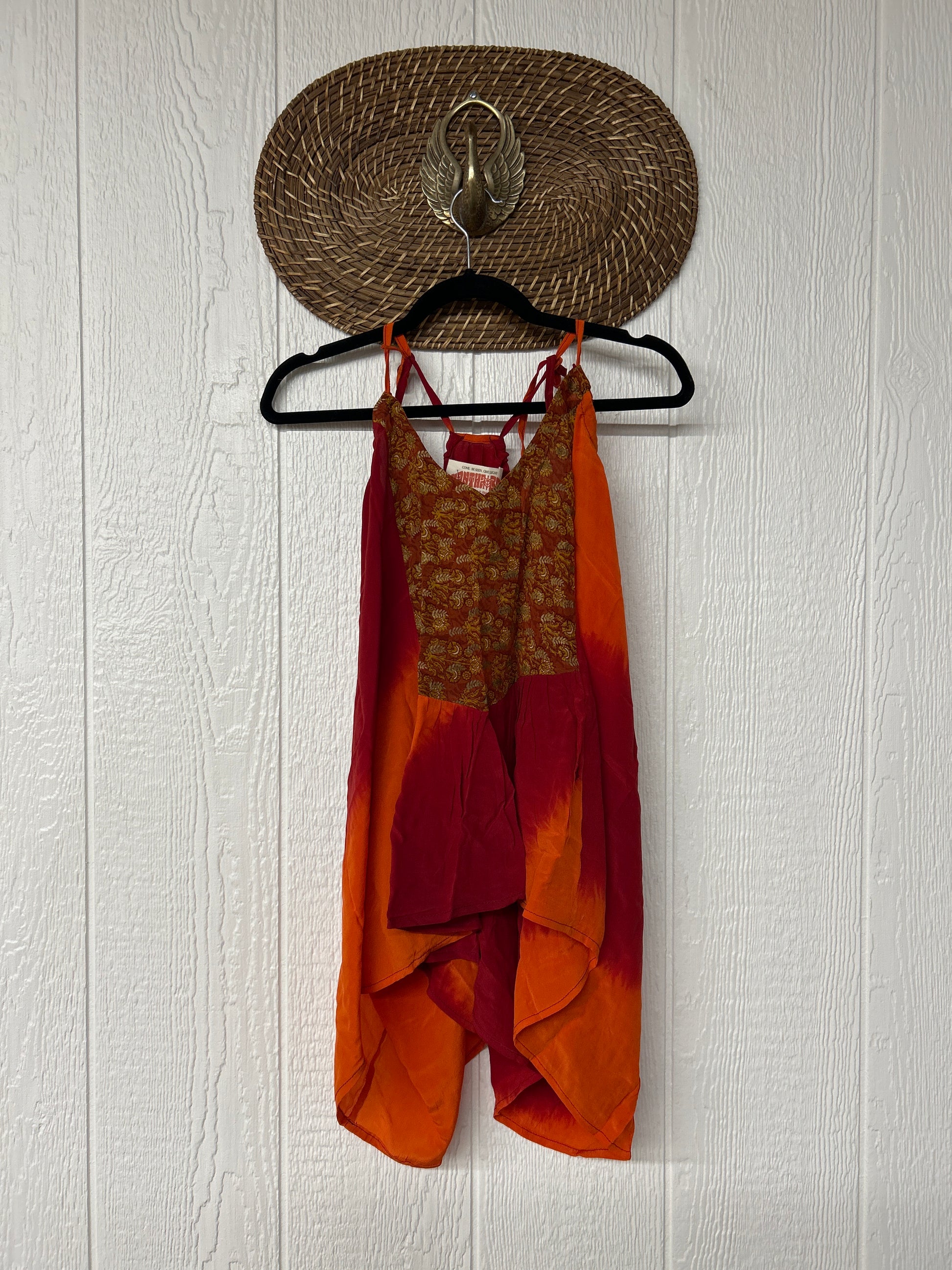 The perfect layering piece made from vintage crepe silk sari. Features tie straps that also cinch for customization.