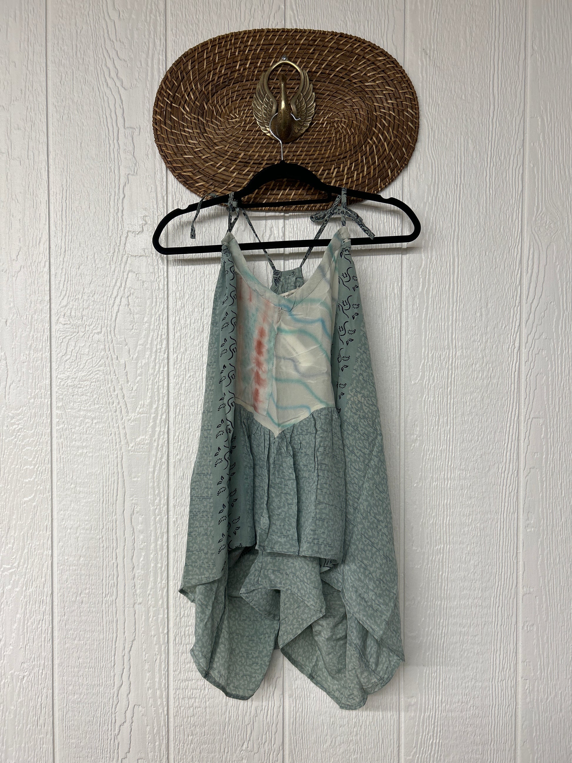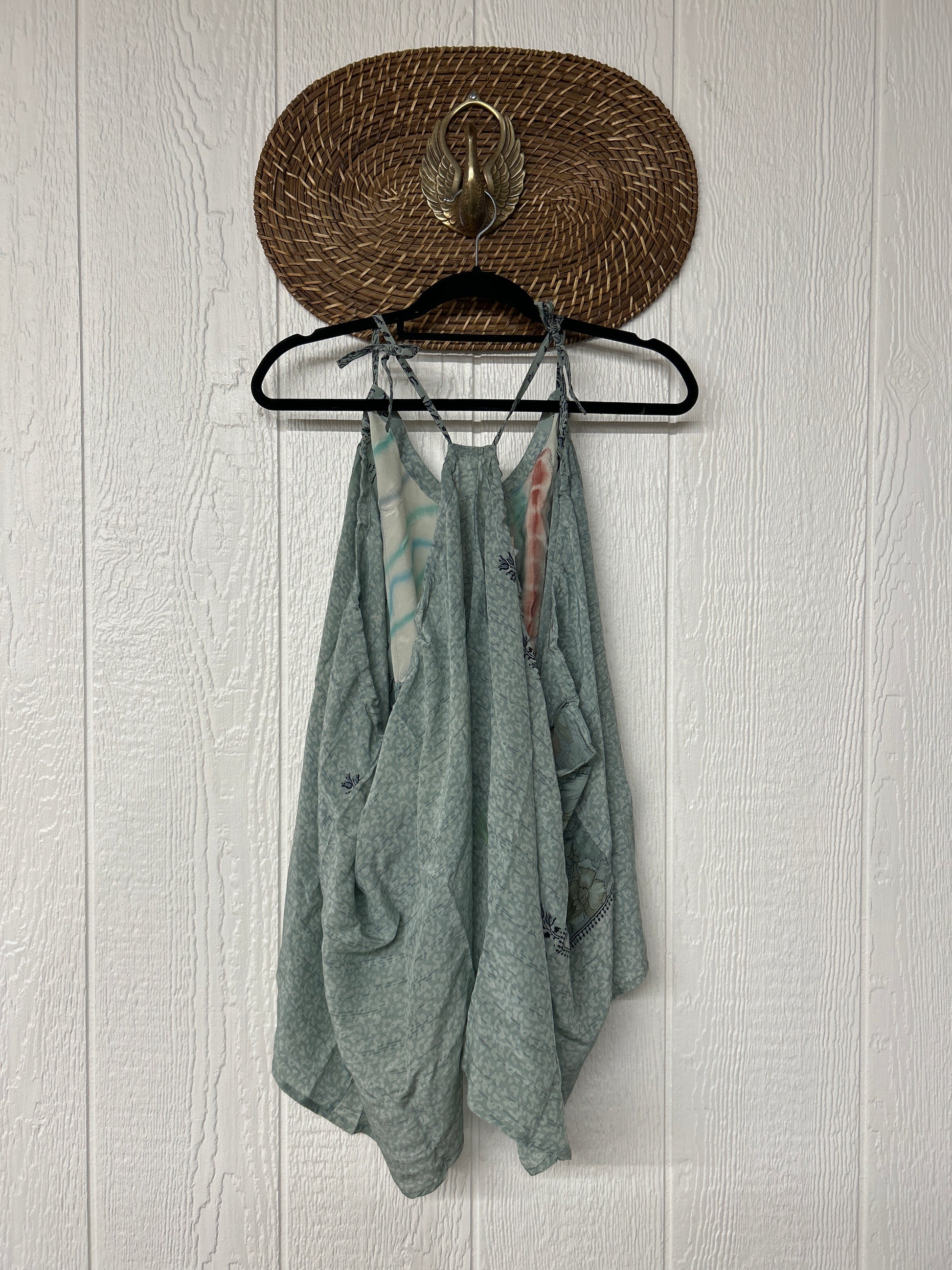 The perfect layering piece made from vintage crepe silk sari. Features tie straps that also cinch for customization.