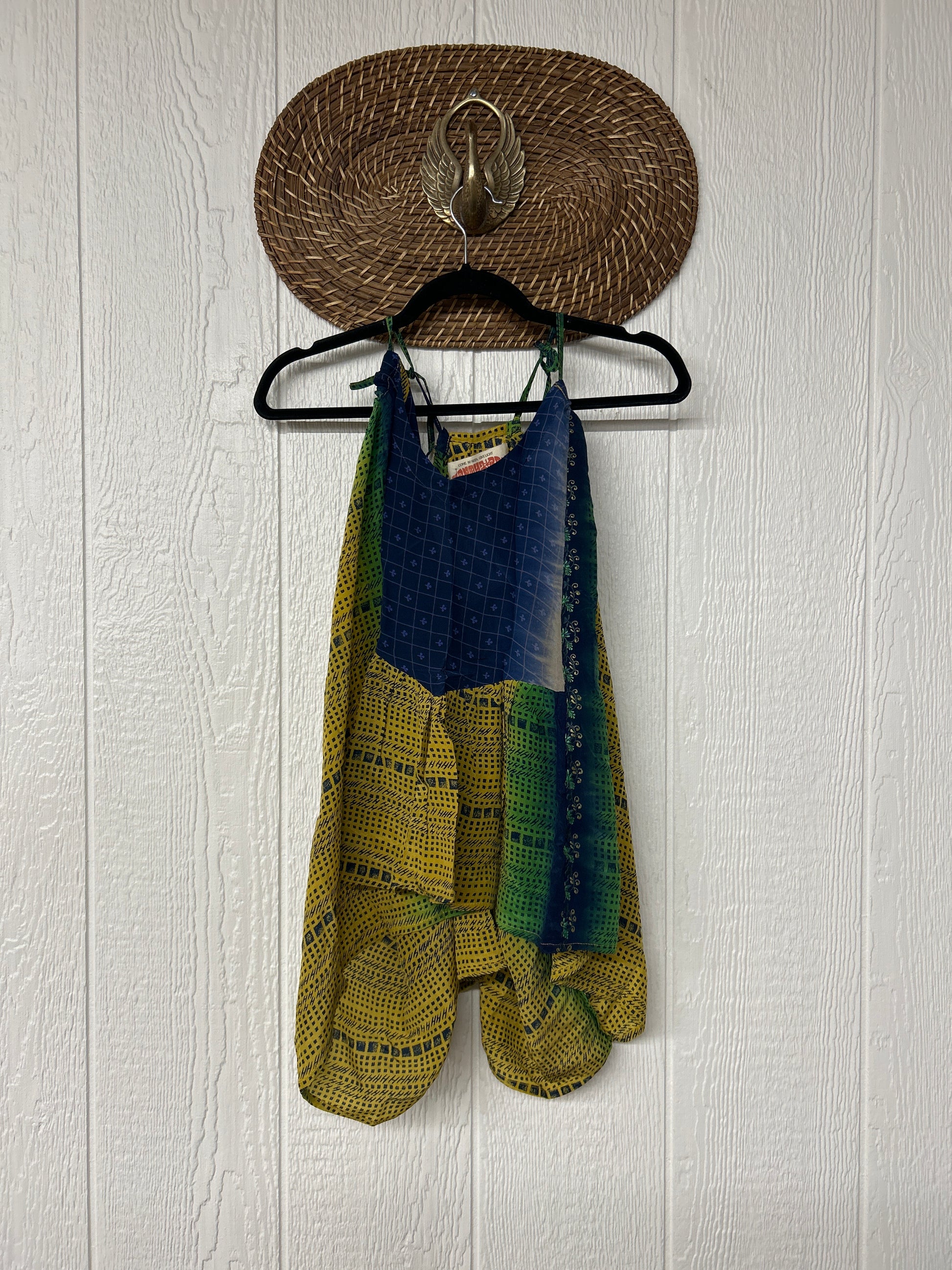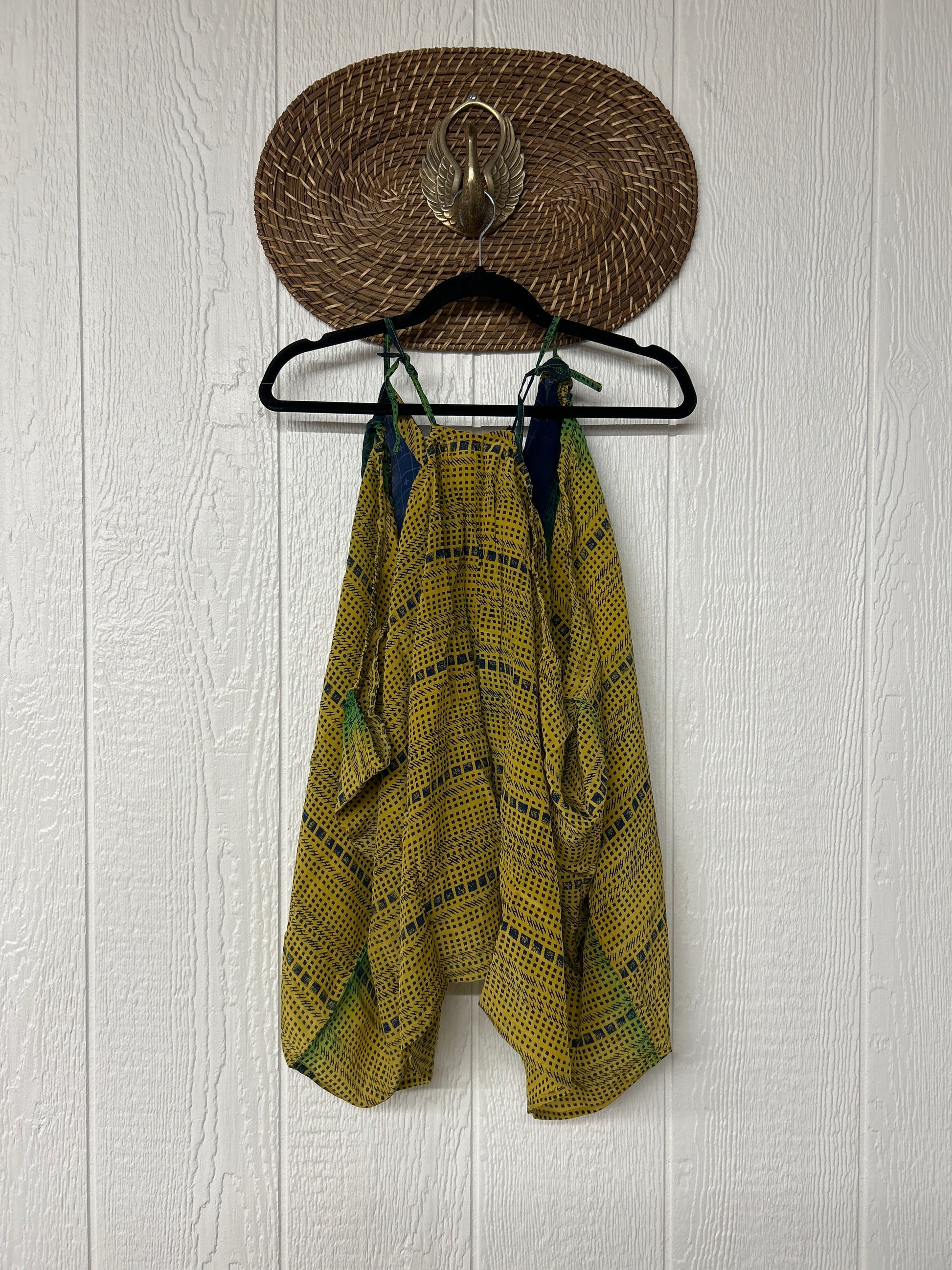 The perfect layering piece made from vintage crepe silk sari. Features tie straps that also cinch for customization.