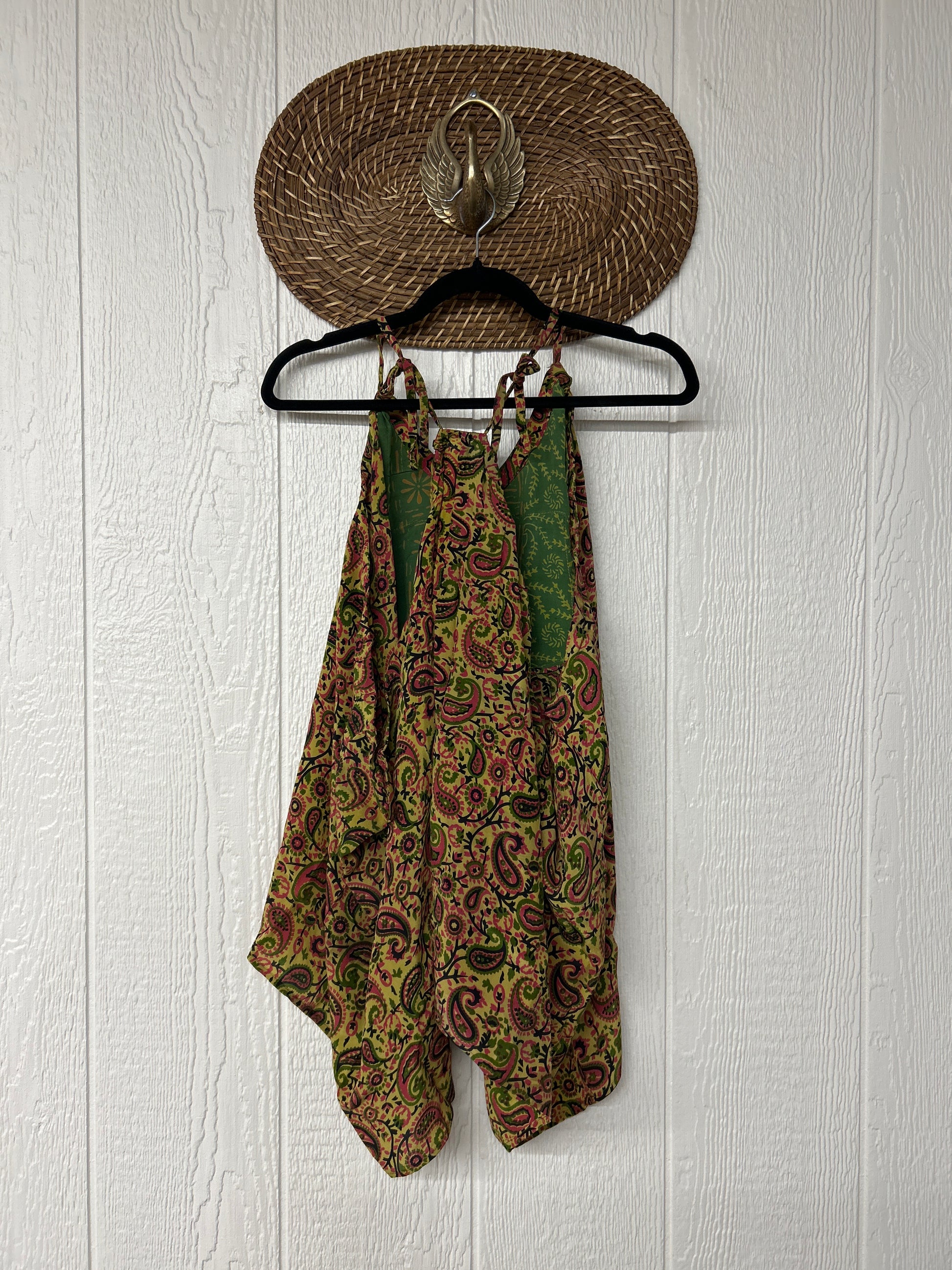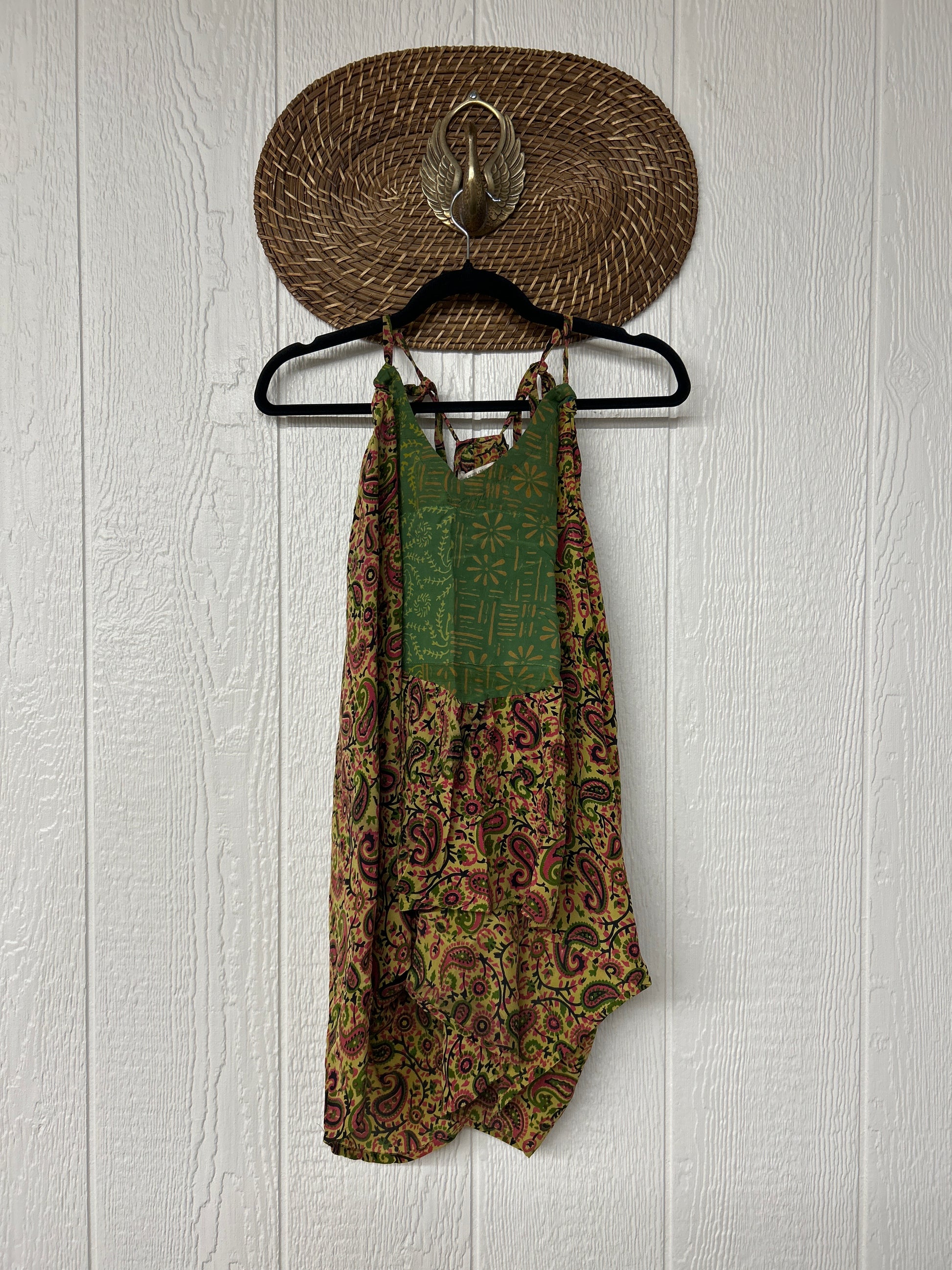 The perfect layering piece made from vintage crepe silk sari. Features tie straps that also cinch for customization.