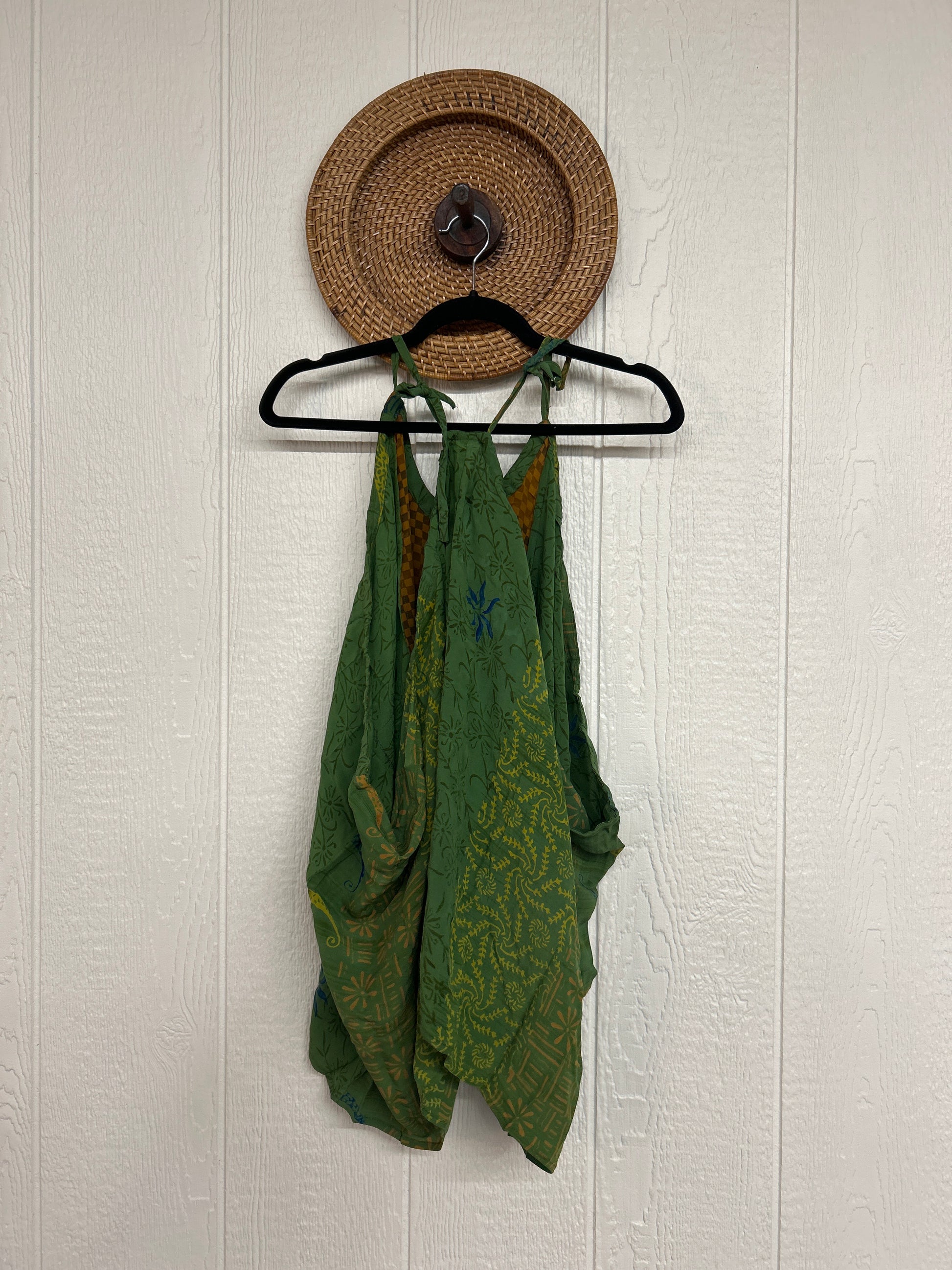 The perfect layering piece made from vintage crepe silk sari. Features tie straps that also cinch for customization.