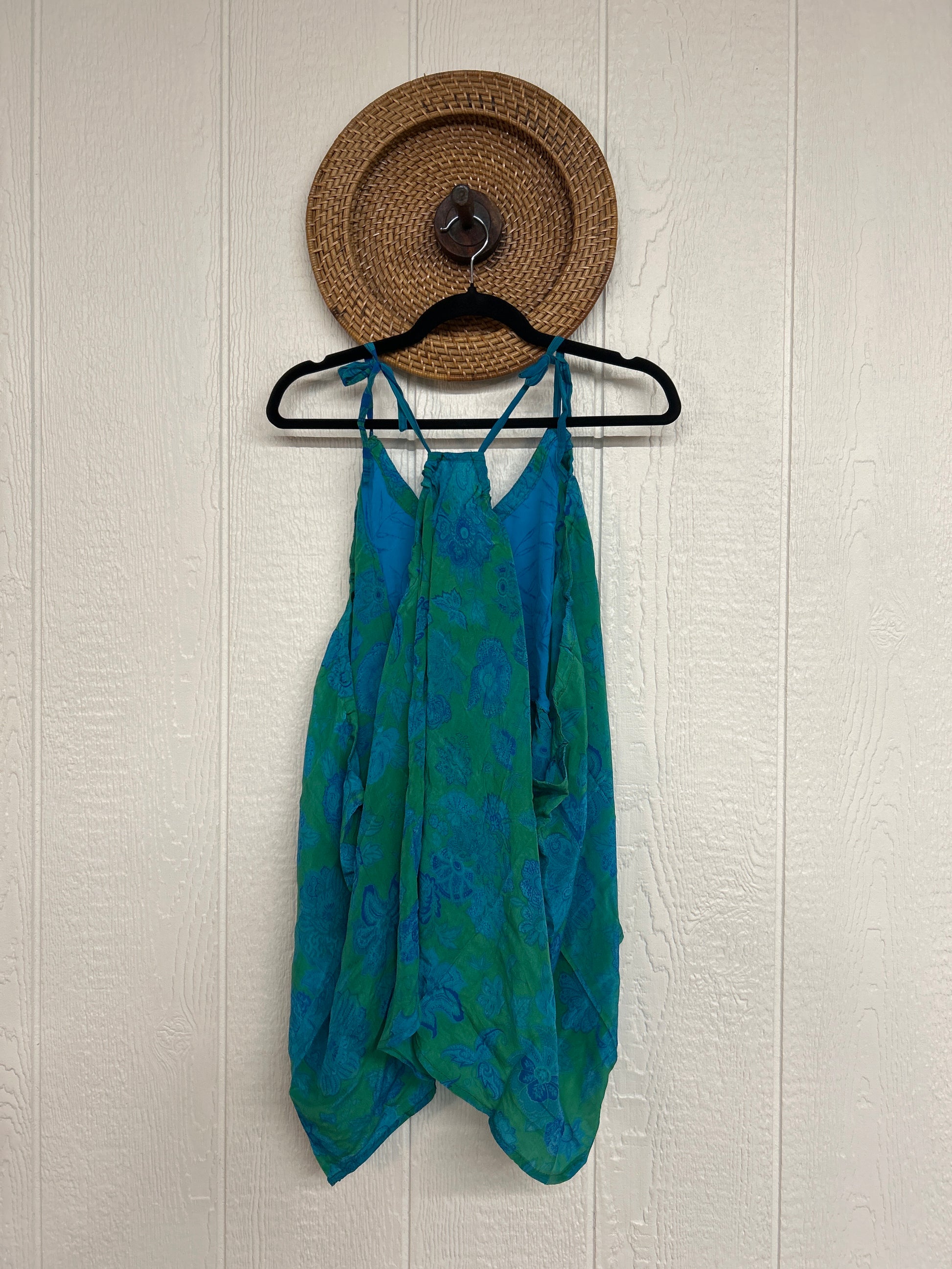 The perfect layering piece made from vintage crepe silk sari. Features tie straps that also cinch for customization.