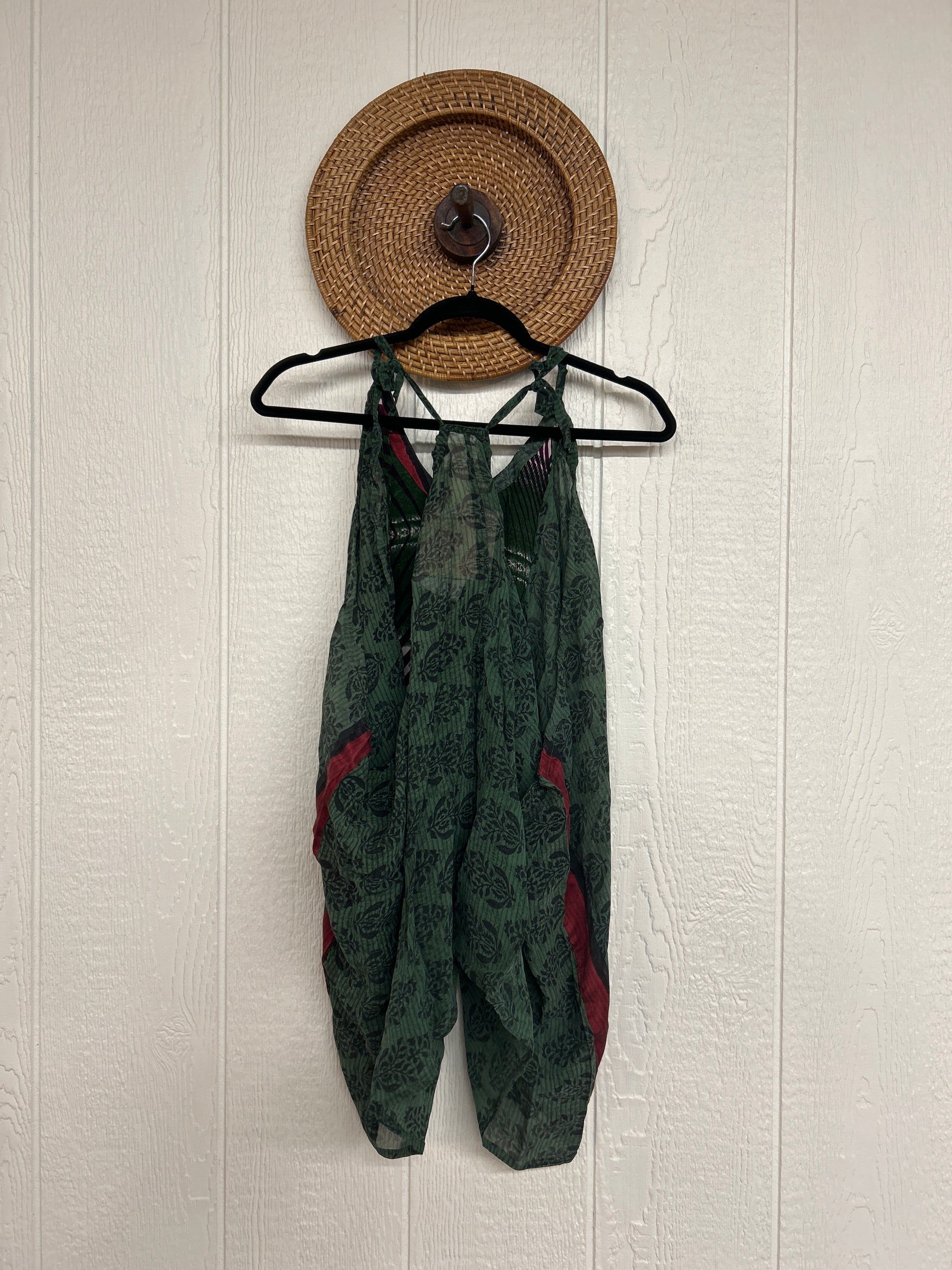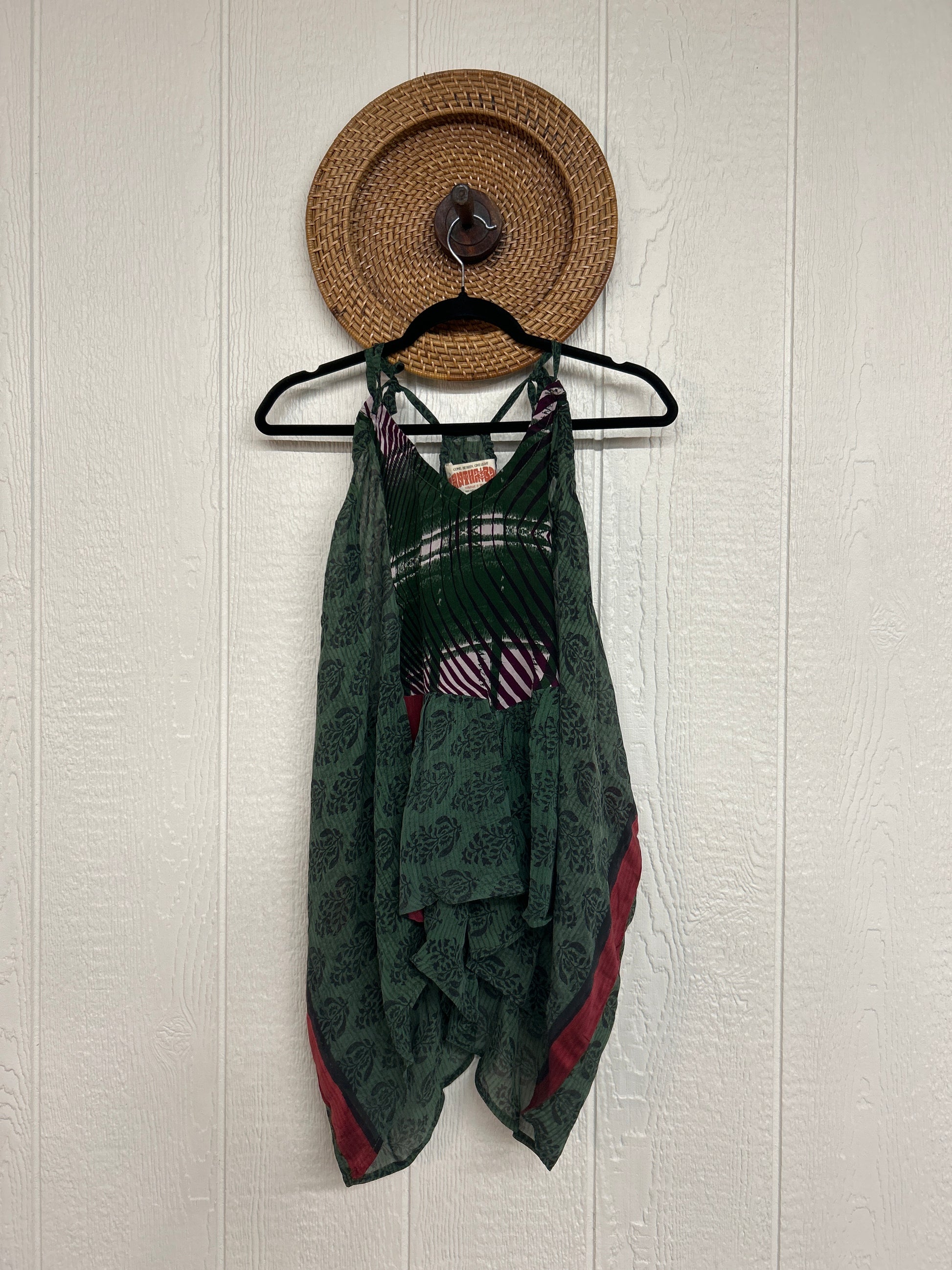 The perfect layering piece made from vintage crepe silk sari. Features tie straps that also cinch for customization.