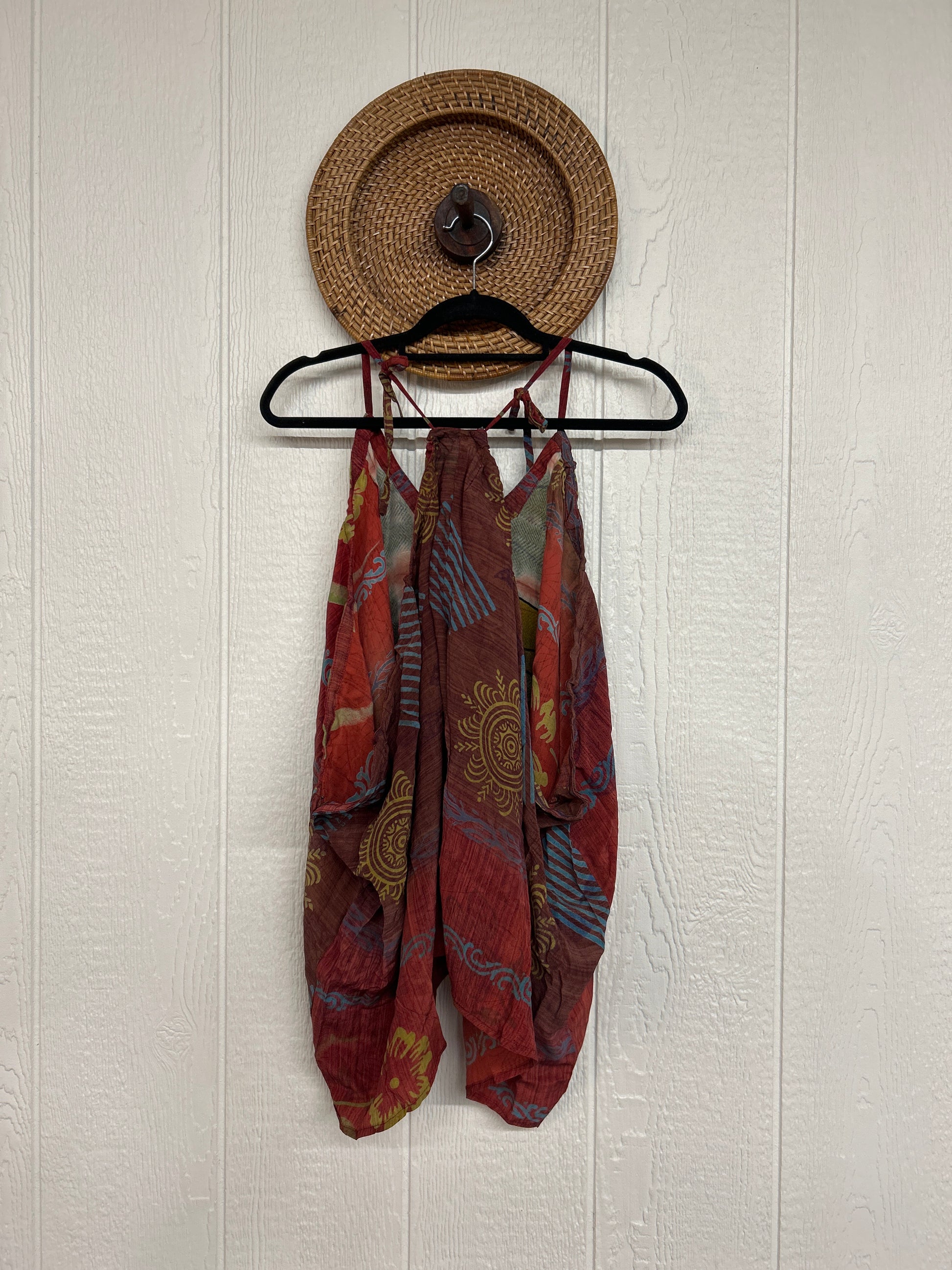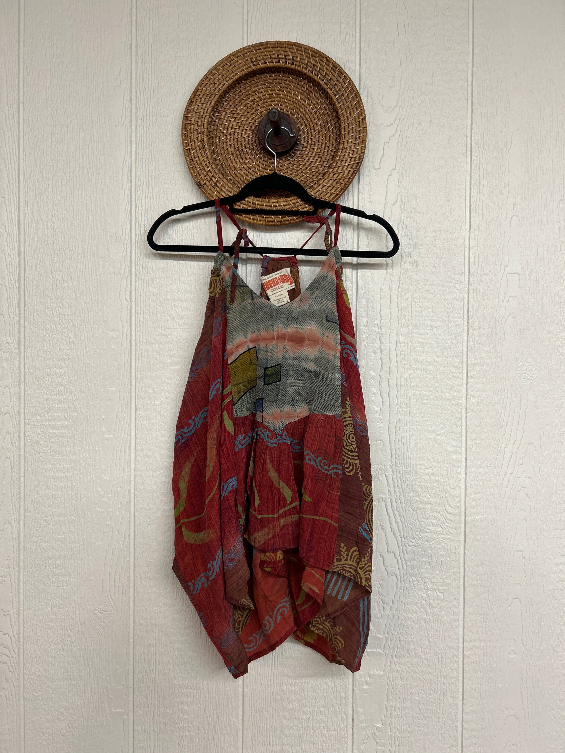 The perfect layering piece made from vintage crepe silk sari. Features tie straps that also cinch for customization.