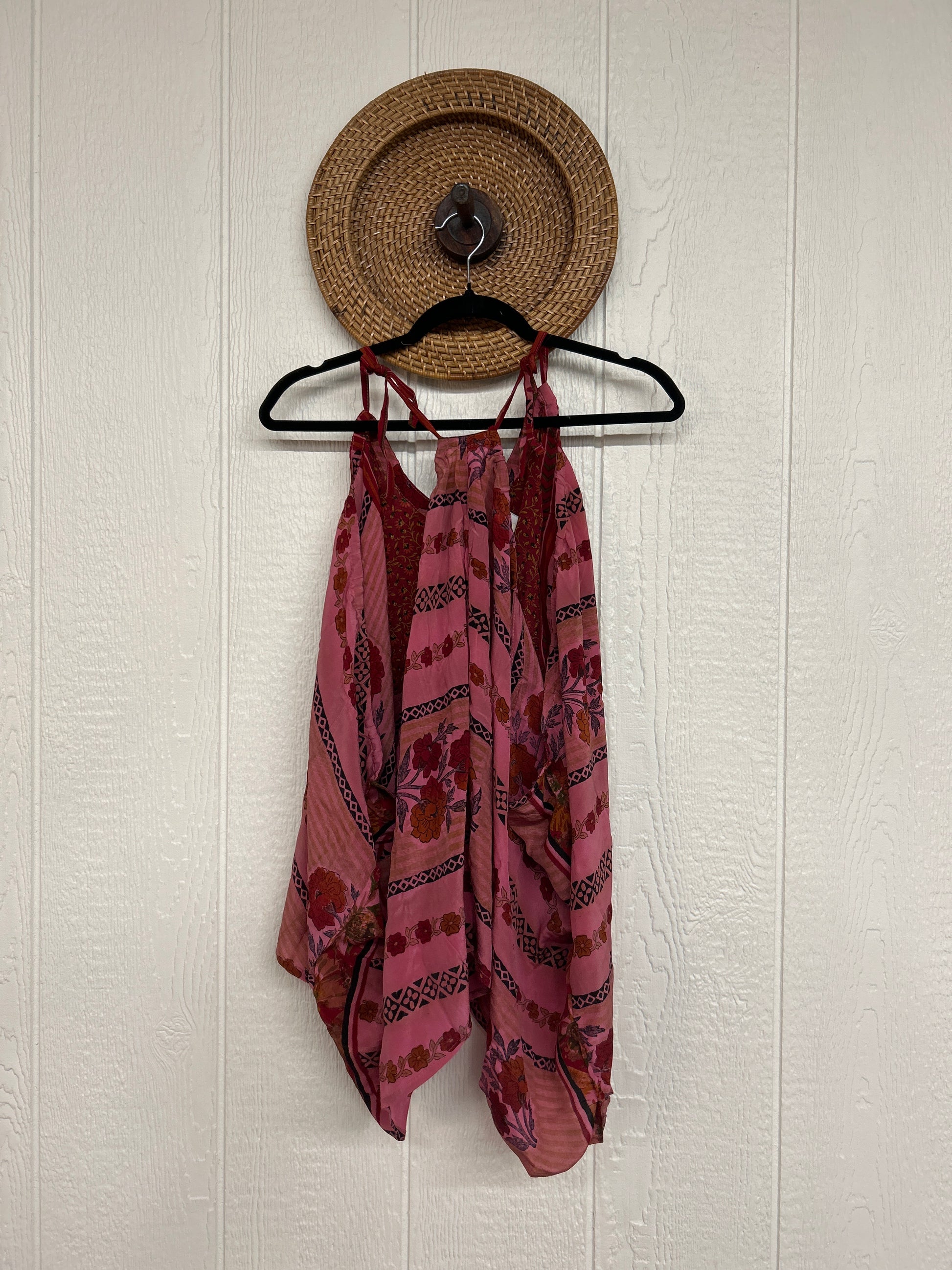 The perfect layering piece made from vintage crepe silk sari. Features tie straps that also cinch for customization.
