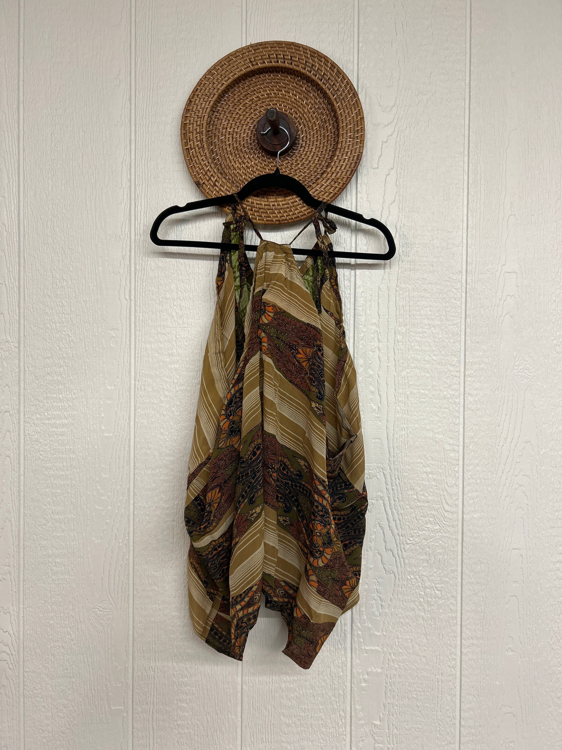 The perfect layering piece made from vintage crepe silk sari. Features tie straps that also cinch for customization.