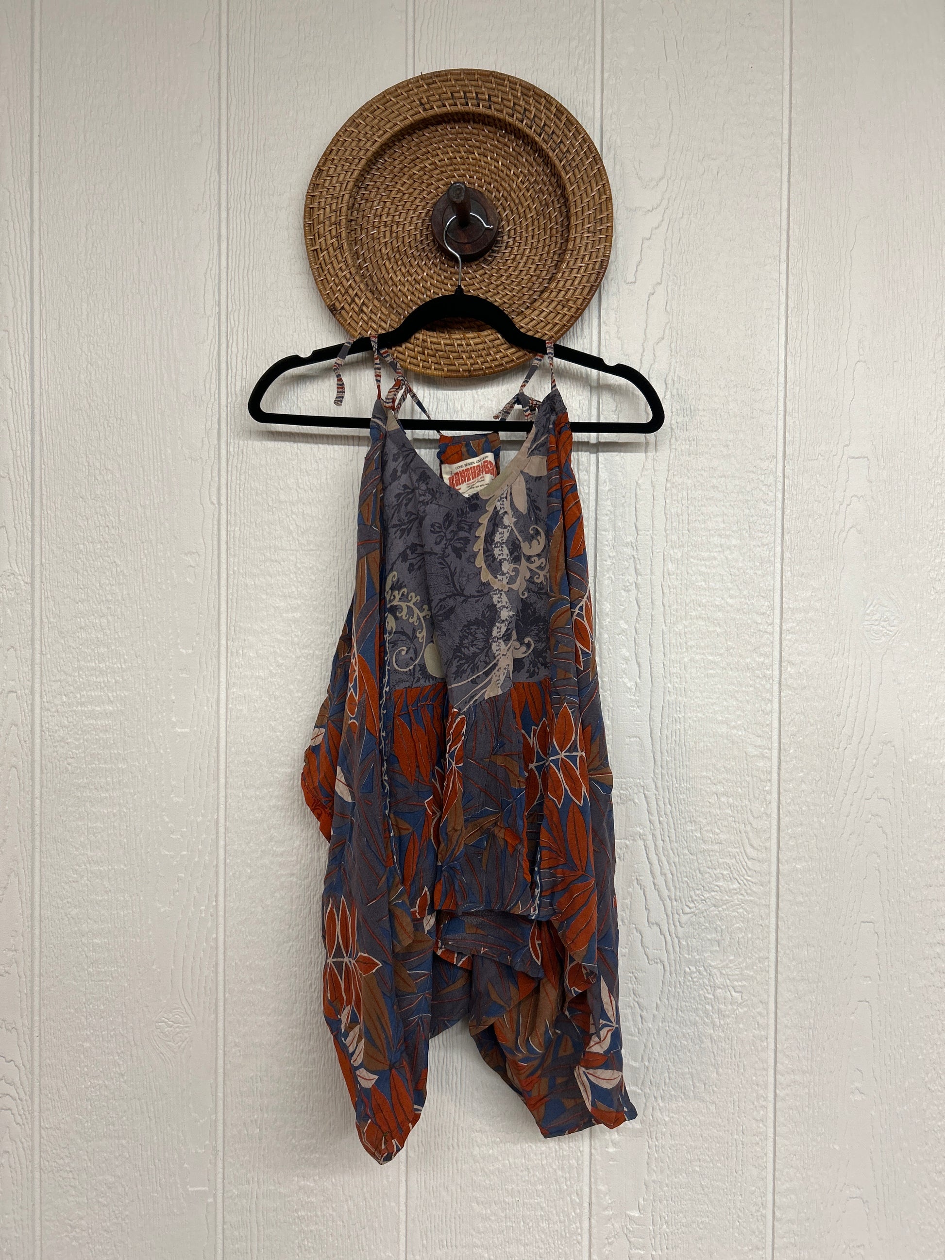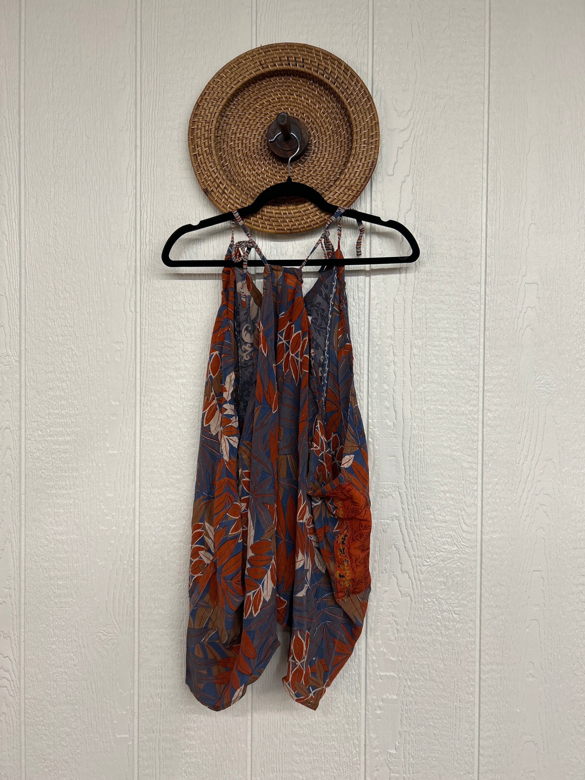 The perfect layering piece made from vintage crepe silk sari. Features tie straps that also cinch for customization.