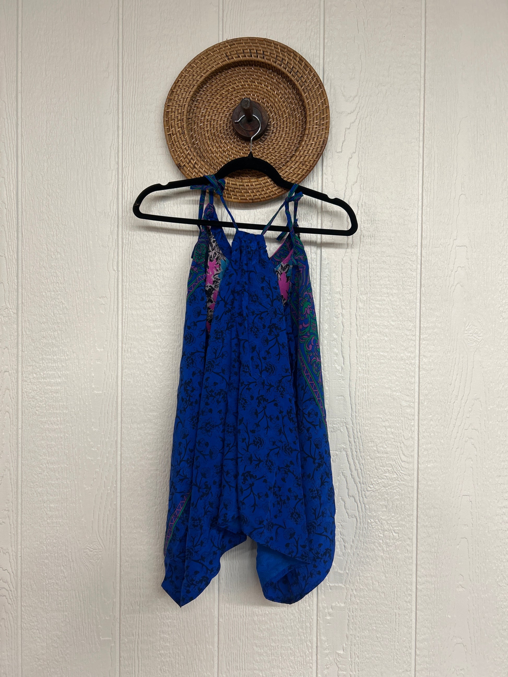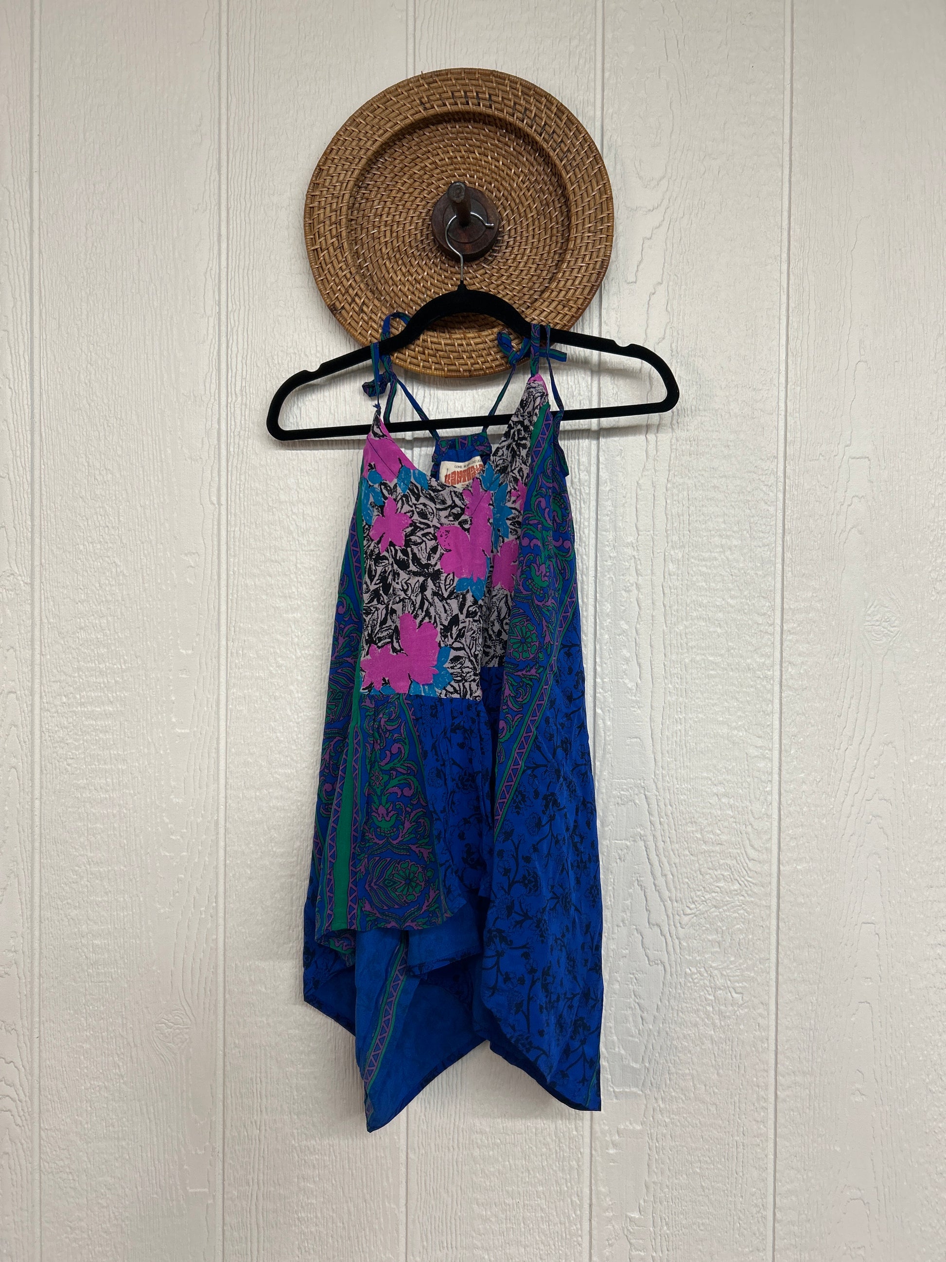 The perfect layering piece made from vintage crepe silk sari. Features tie straps that also cinch for customization.
