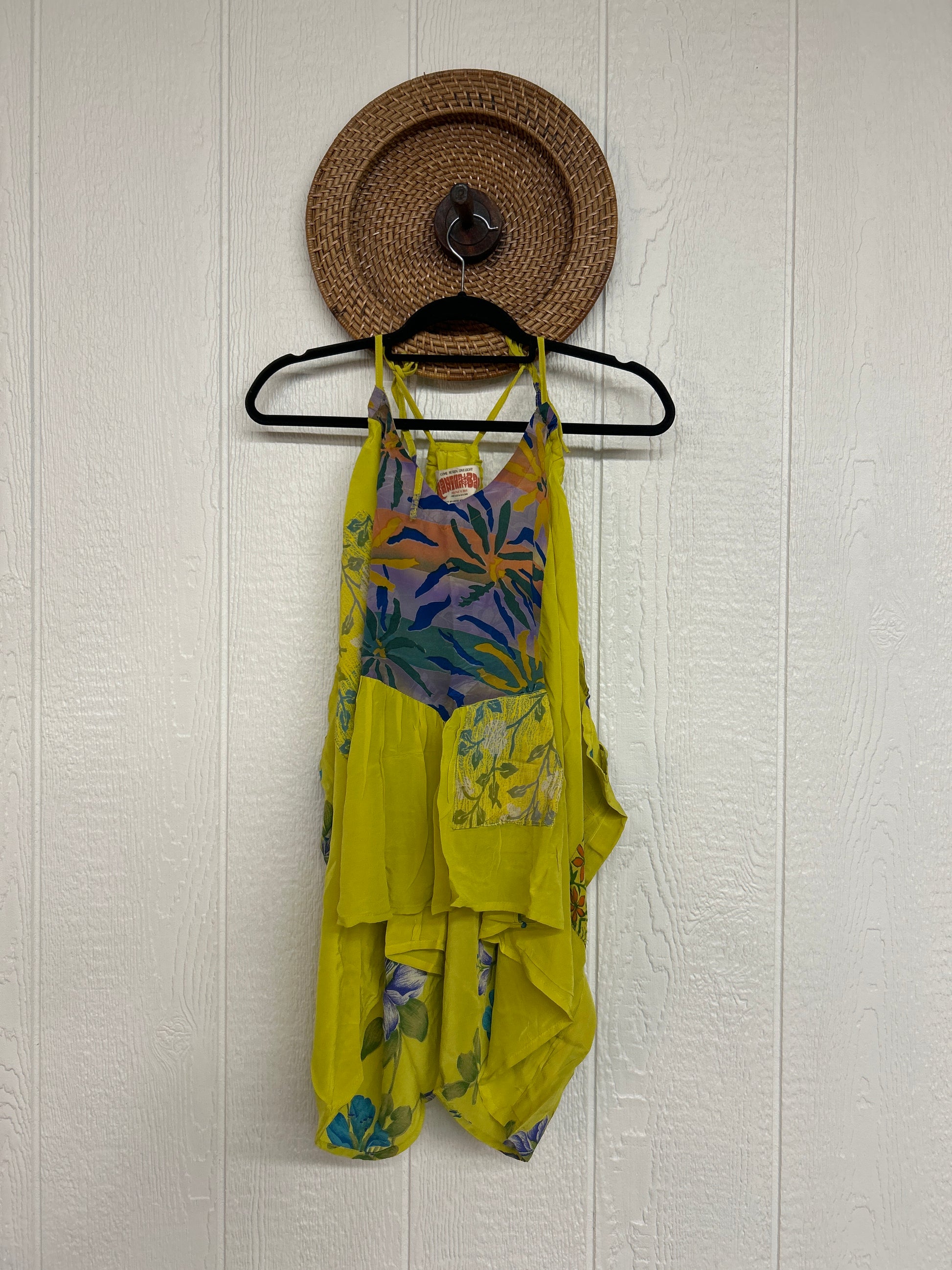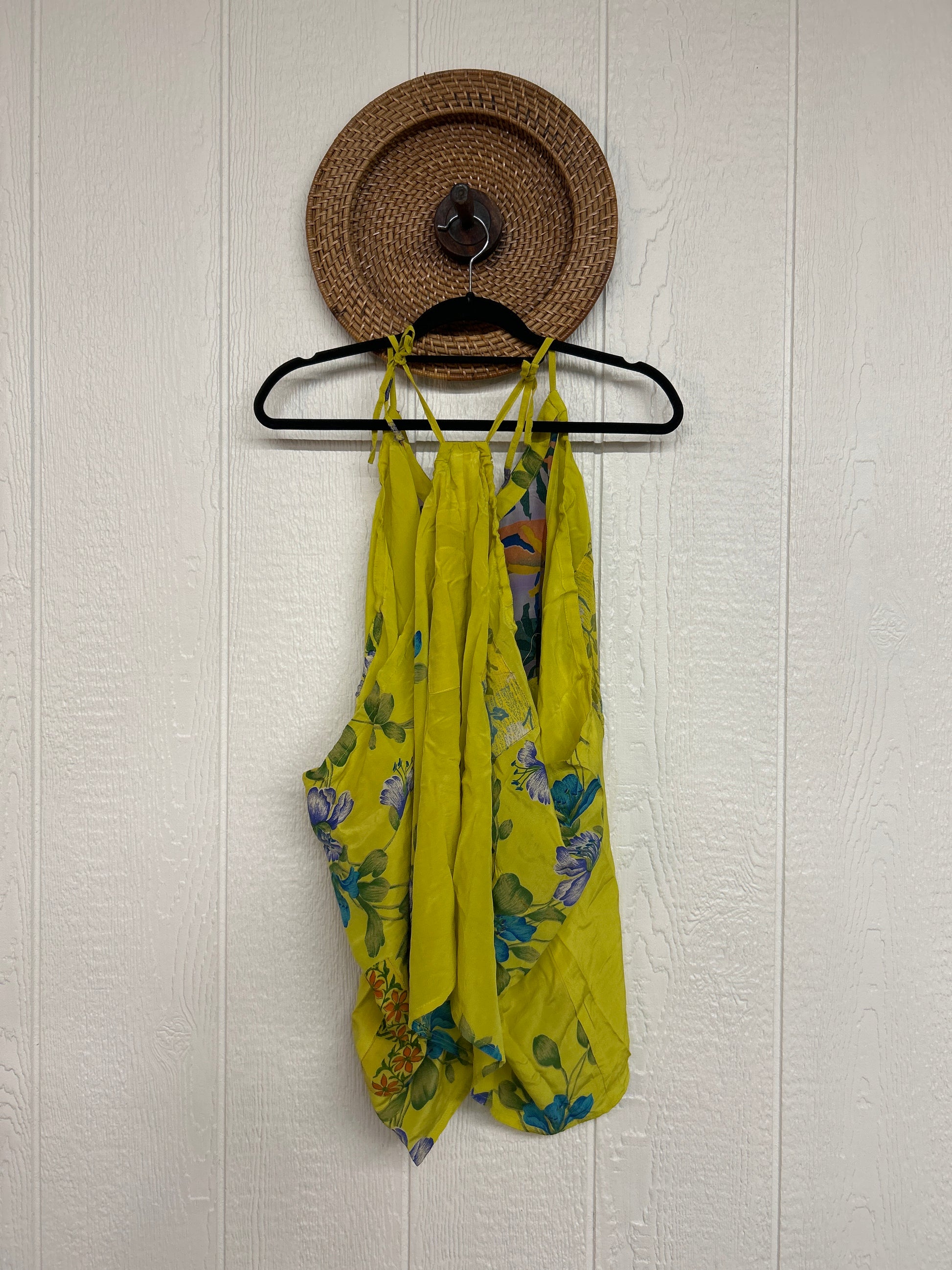 The perfect layering piece made from vintage crepe silk sari. Features tie straps that also cinch for customization.