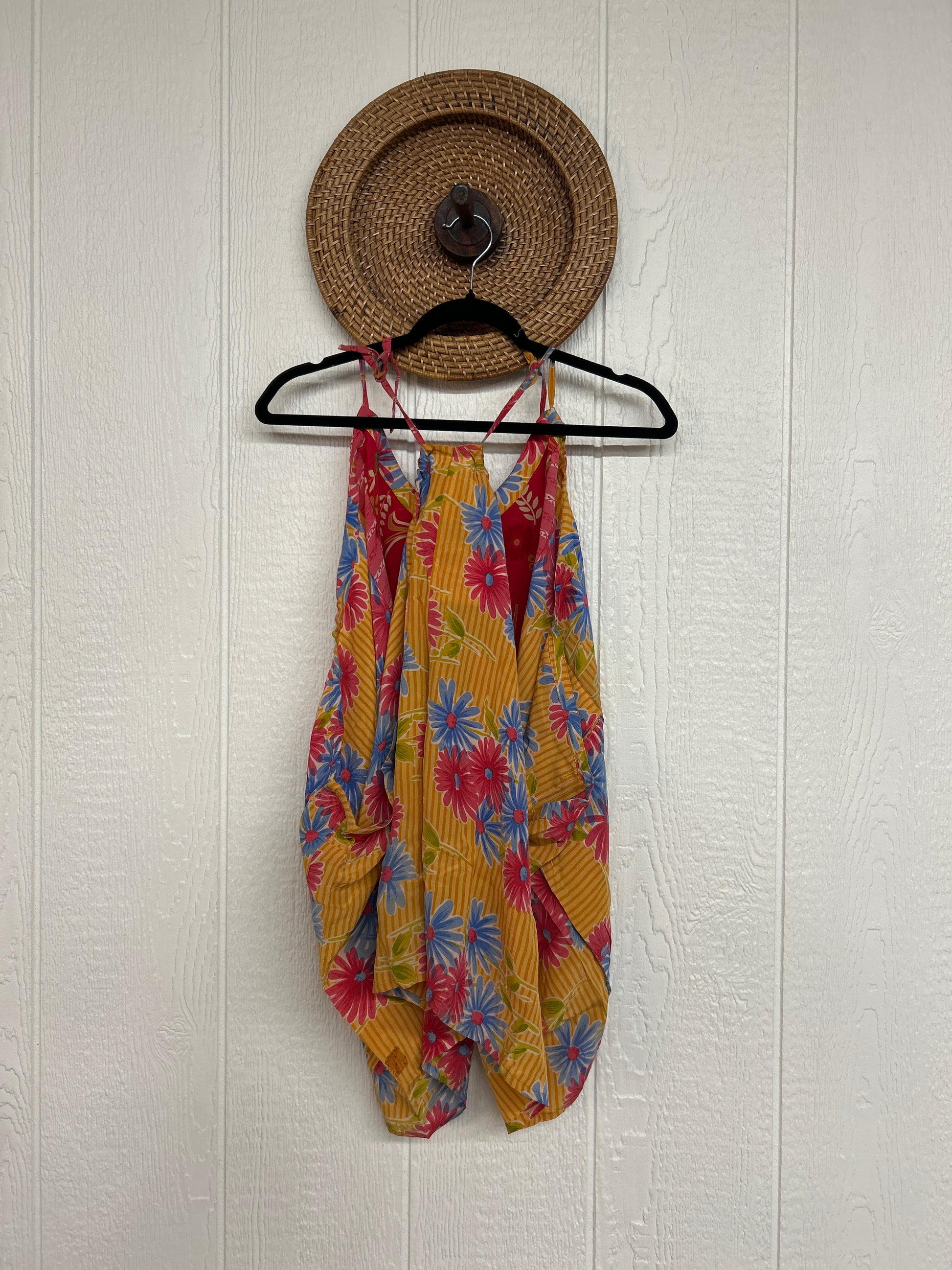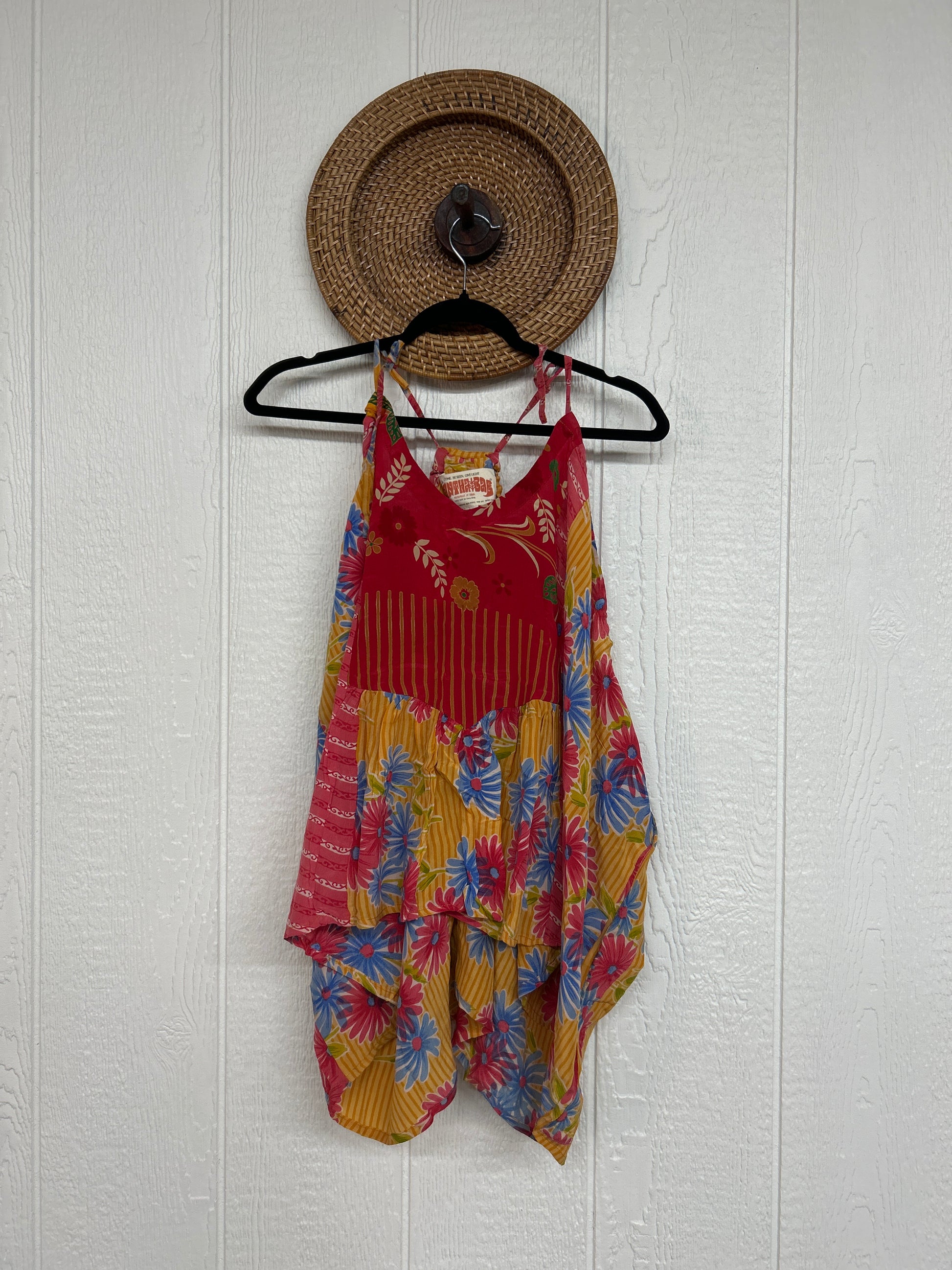 The perfect layering piece made from vintage crepe silk sari. Features tie straps that also cinch for customization.