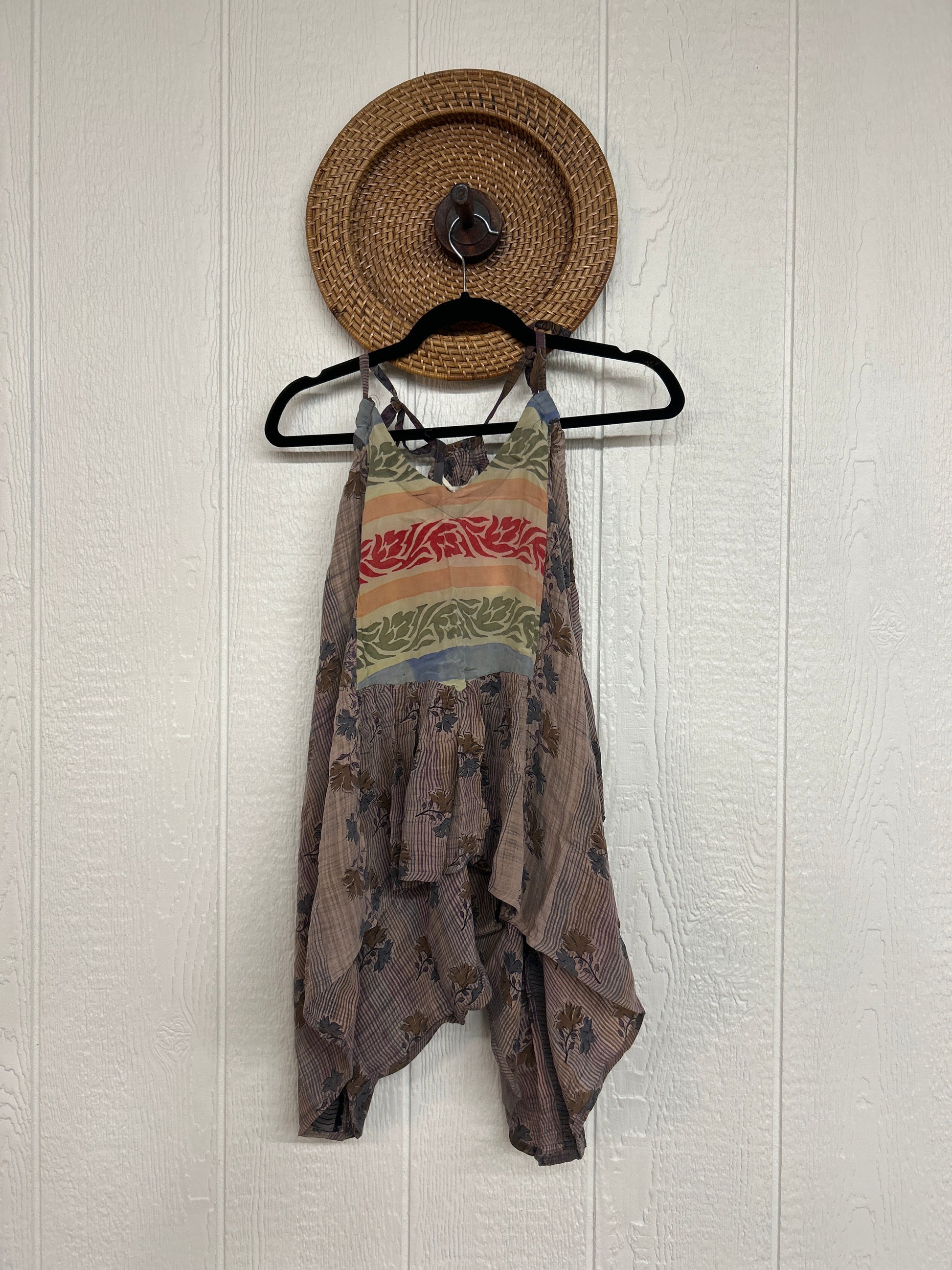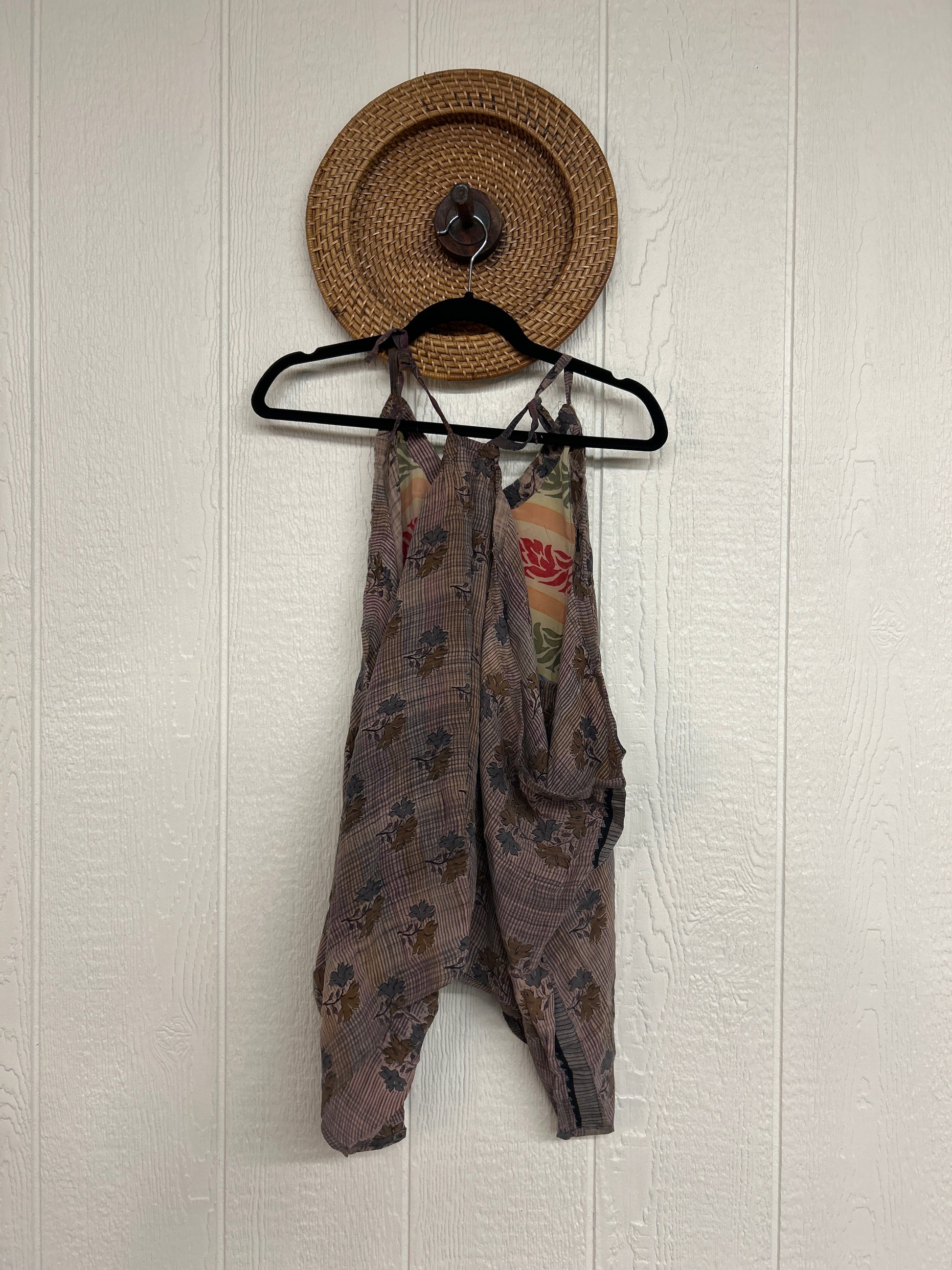 The perfect layering piece made from vintage crepe silk sari. Features tie straps that also cinch for customization.