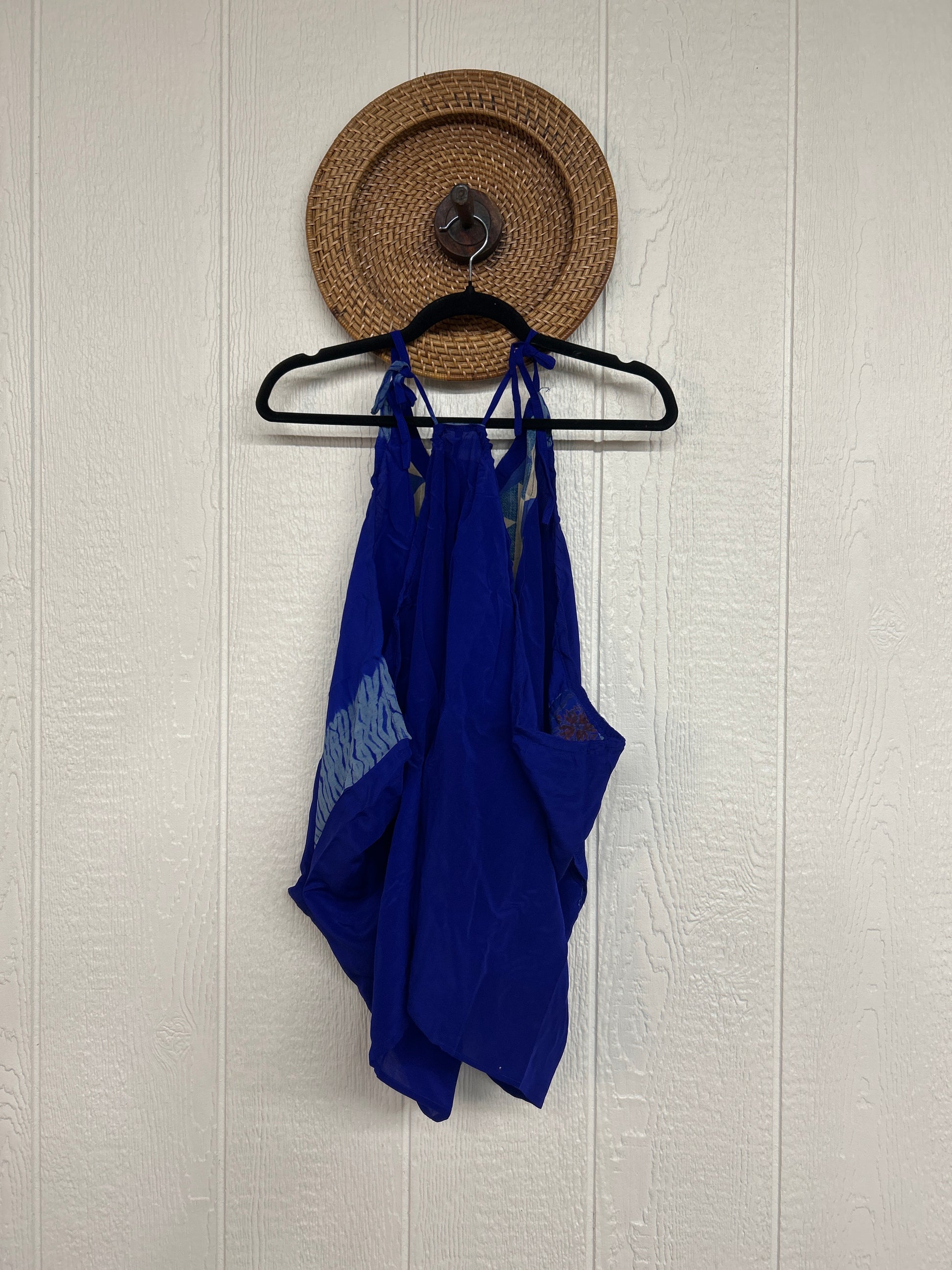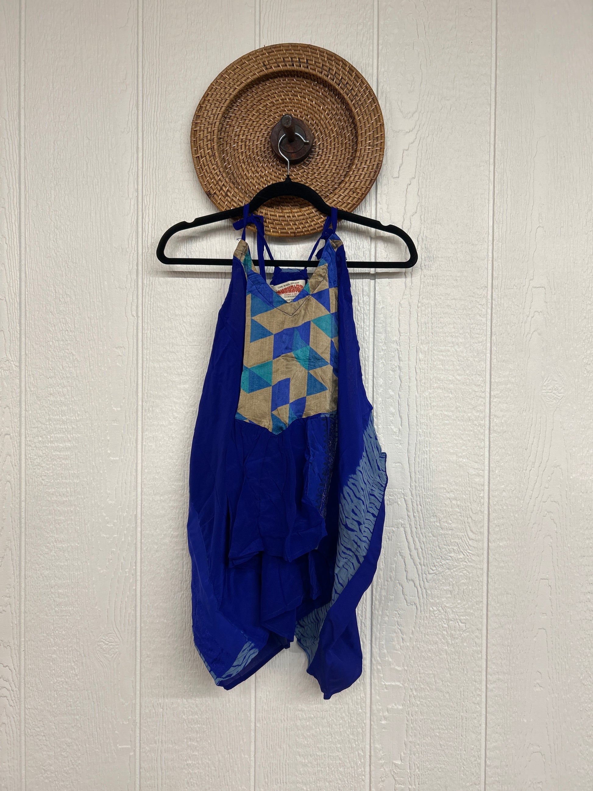 The perfect layering piece made from vintage crepe silk sari. Features tie straps that also cinch for customization.