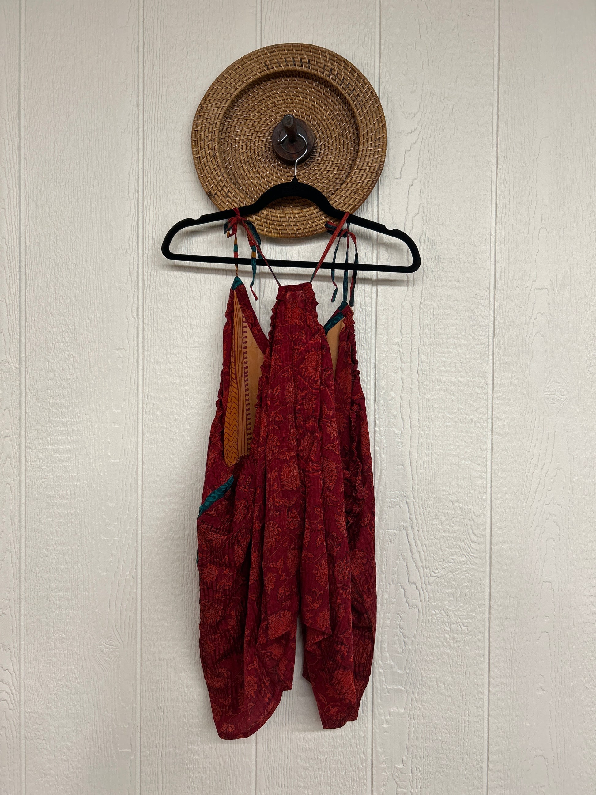 The perfect layering piece made from vintage crepe silk sari. Features tie straps that also cinch for customization.