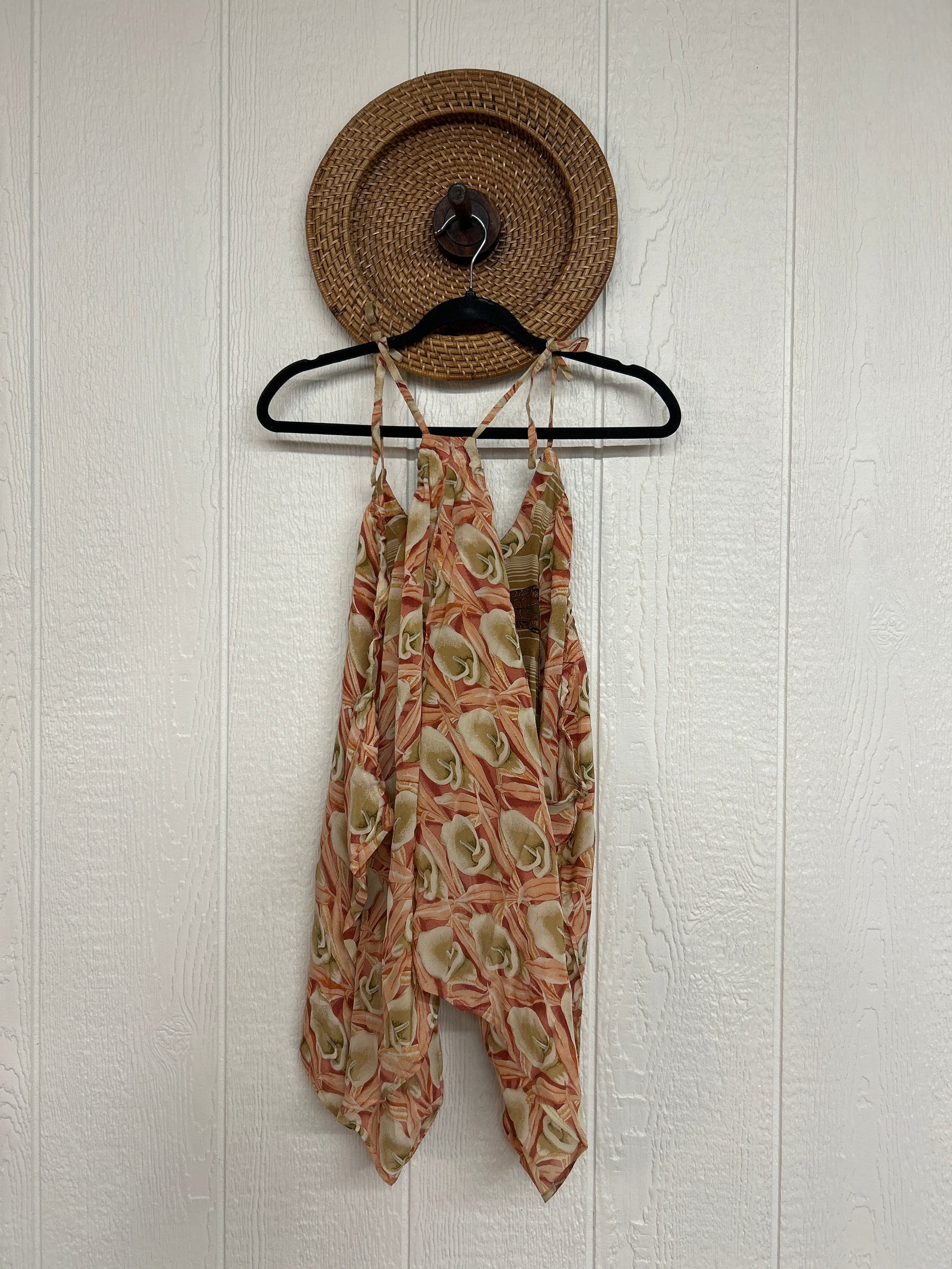 The perfect layering piece made from vintage crepe silk sari. Features tie straps that also cinch for customization.