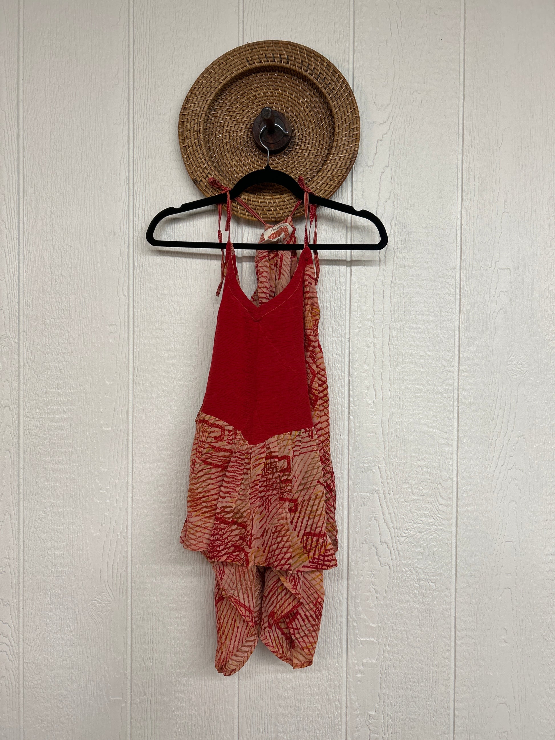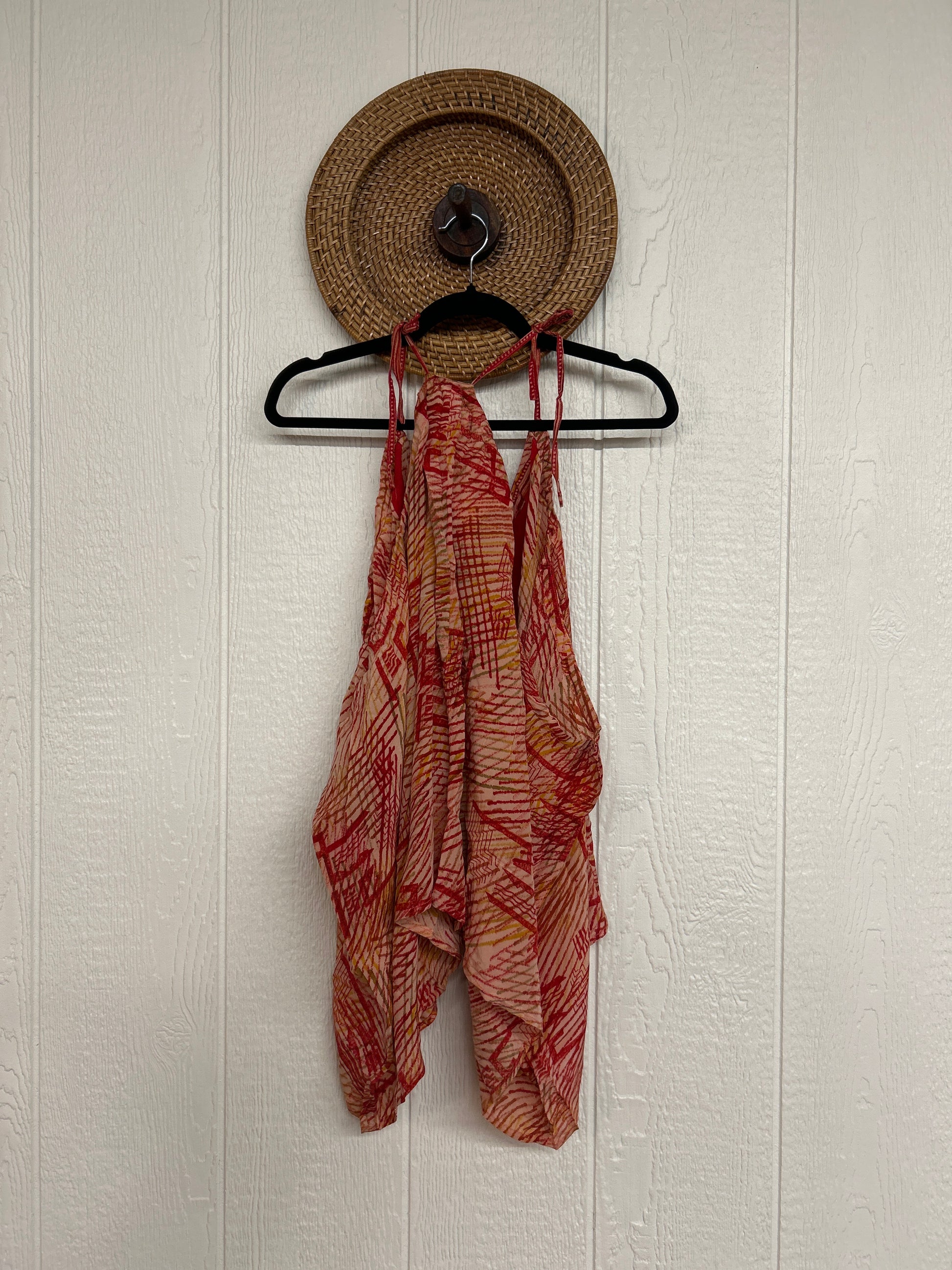The perfect layering piece made from vintage crepe silk sari. Features tie straps that also cinch for customization.