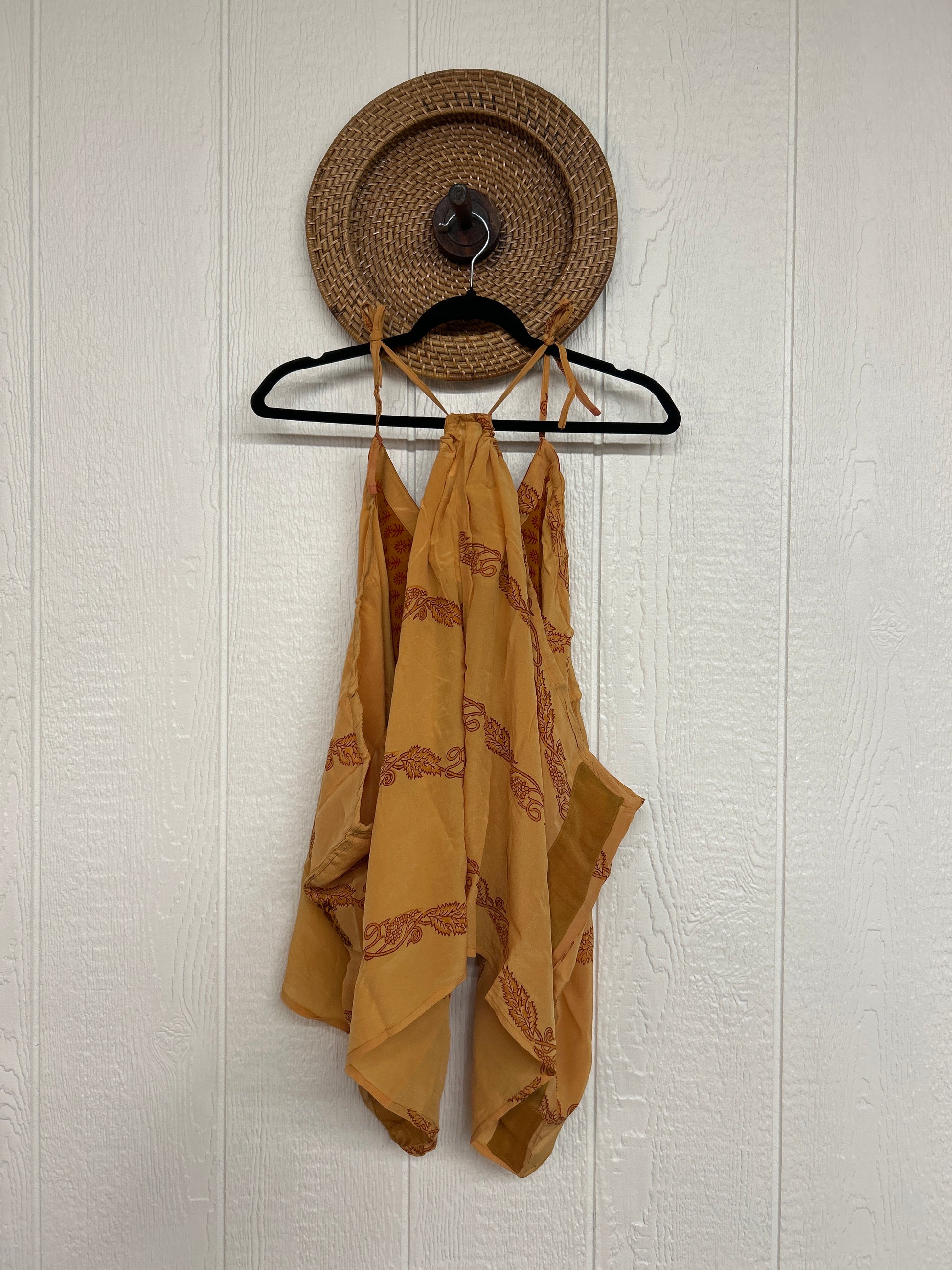 The perfect layering piece made from vintage crepe silk sari. Features tie straps that also cinch for customization.