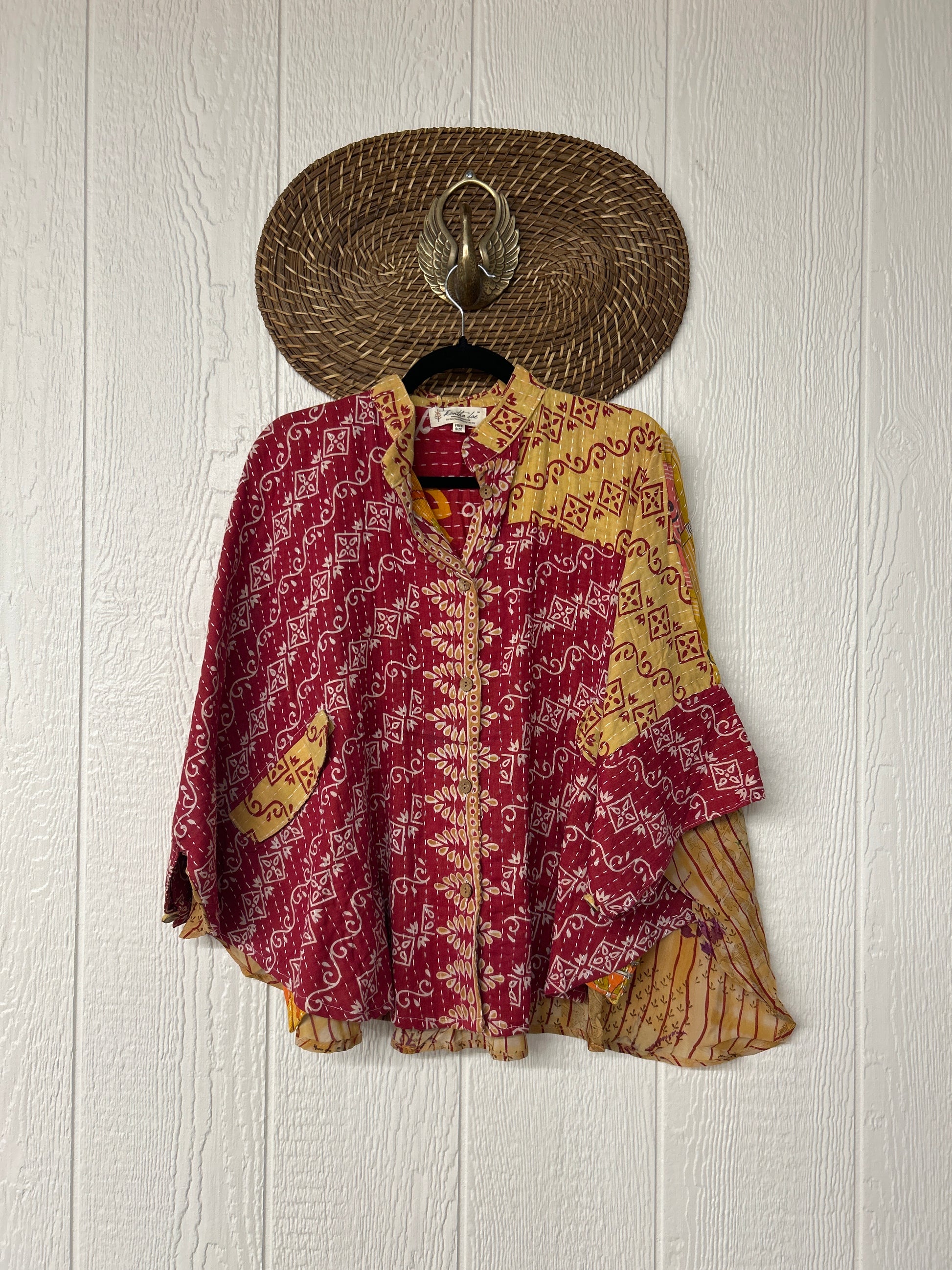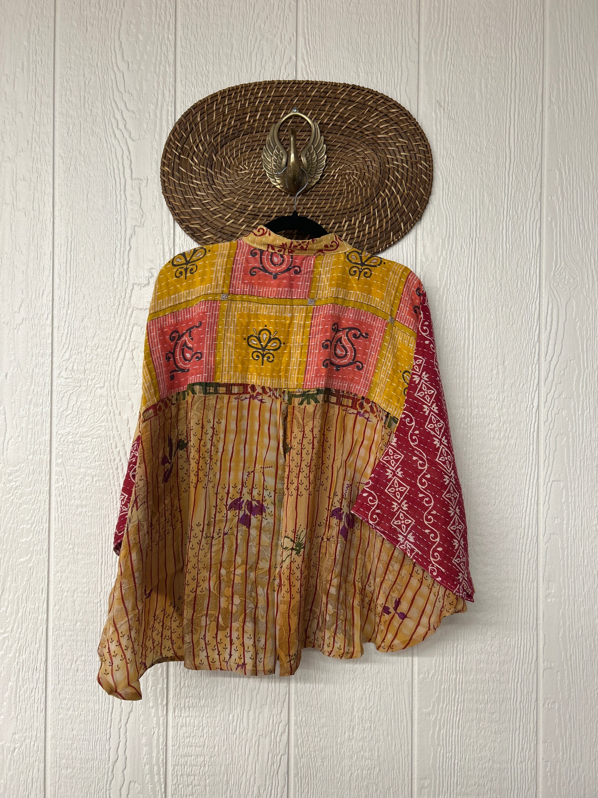 Disclosure: Our vintage styles have lived a full life before becoming the designs in our shop. Fabrics may have small threads or holes in the layers. Color inconsistency or small stains may be present. The saris are sewn together and extend the life of each design. Imperfections should be celebrated