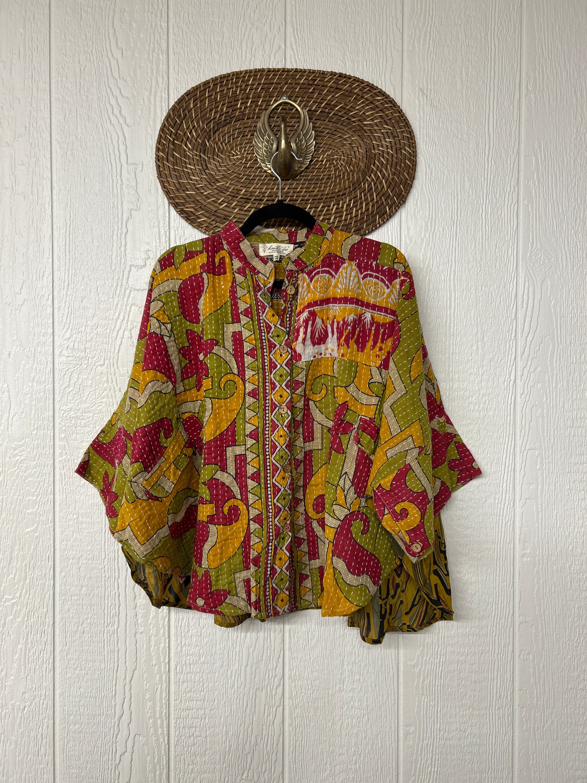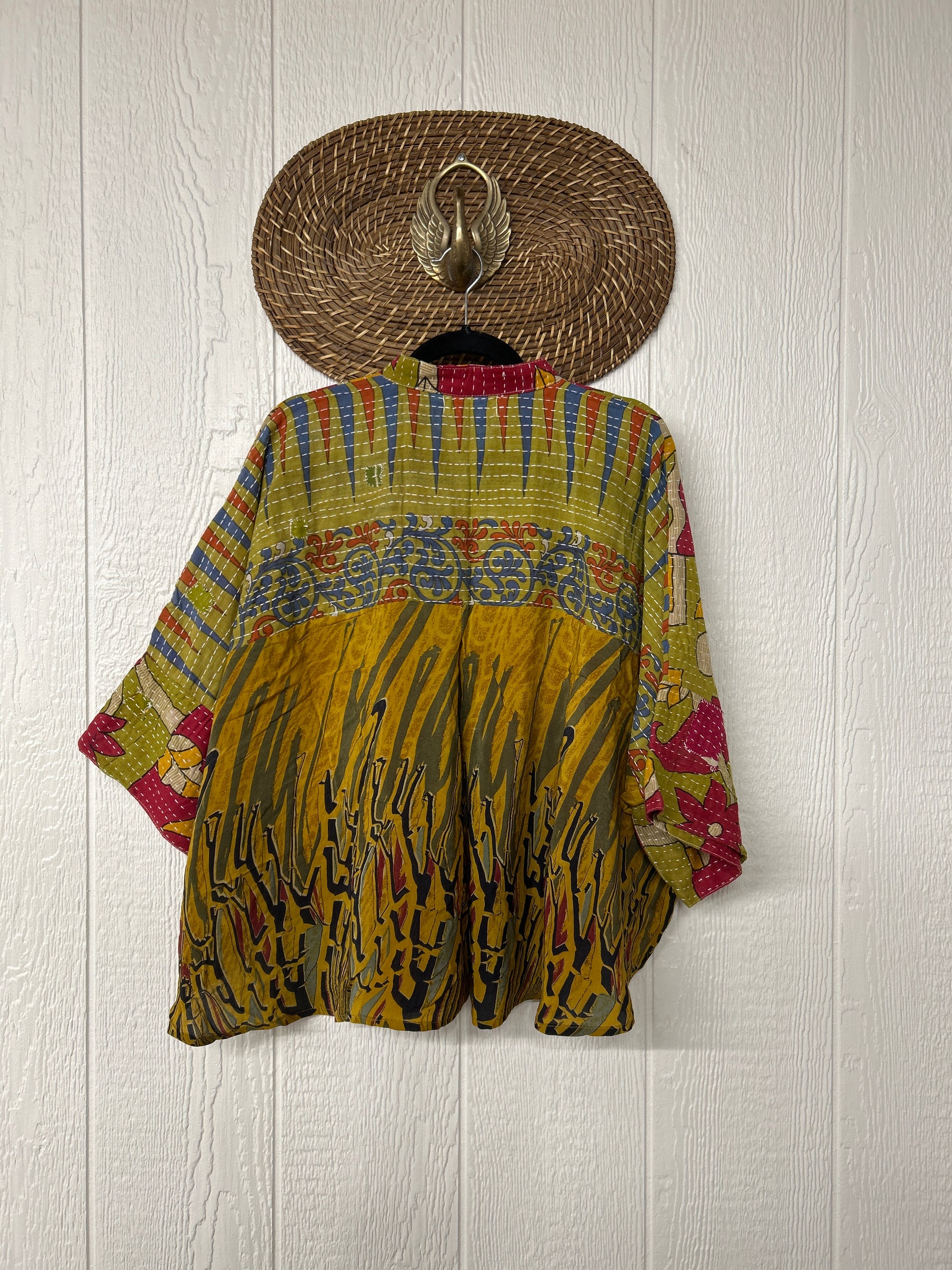 Disclosure: Our vintage styles have lived a full life before becoming the designs in our shop. Fabrics may have small threads or holes in the layers. Color inconsistency or small stains may be present. The saris are sewn together and extend the life of each design. Imperfections should be celebrated