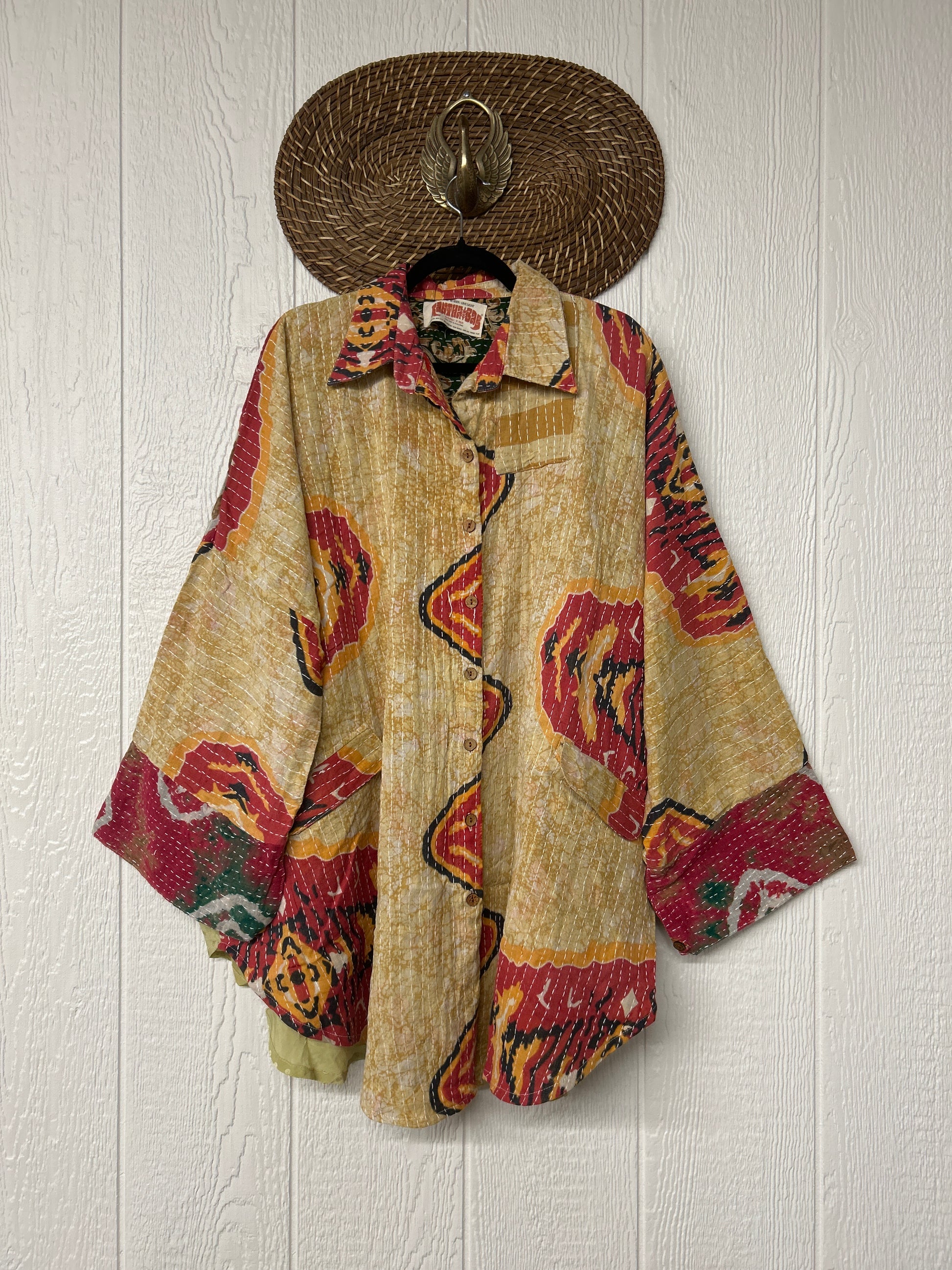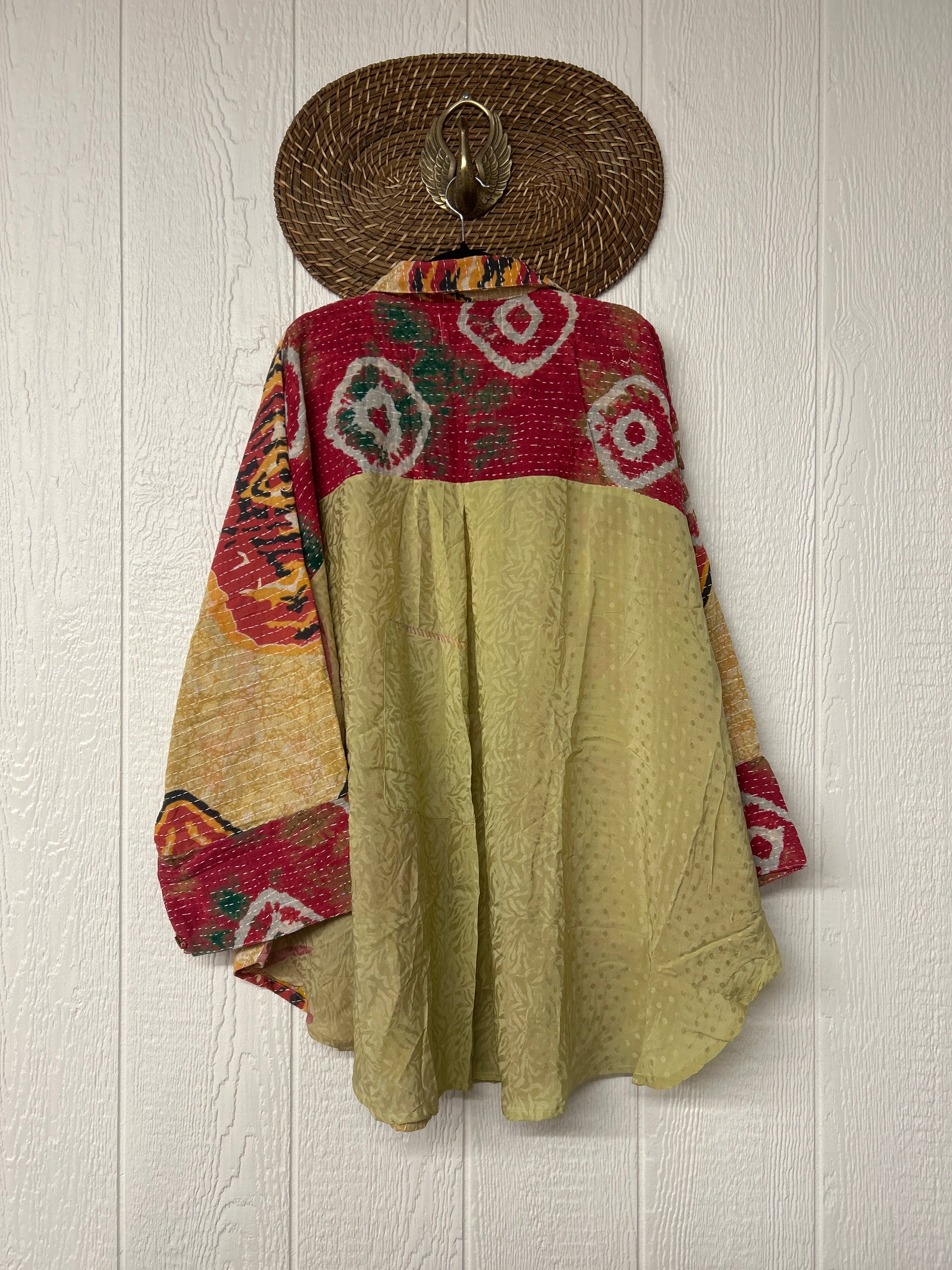 Made from our vintage cotton embroidered sari this billowy dream features a crepe panel in the back, functional buttons, two deep pockets in the front and a curved bottom.