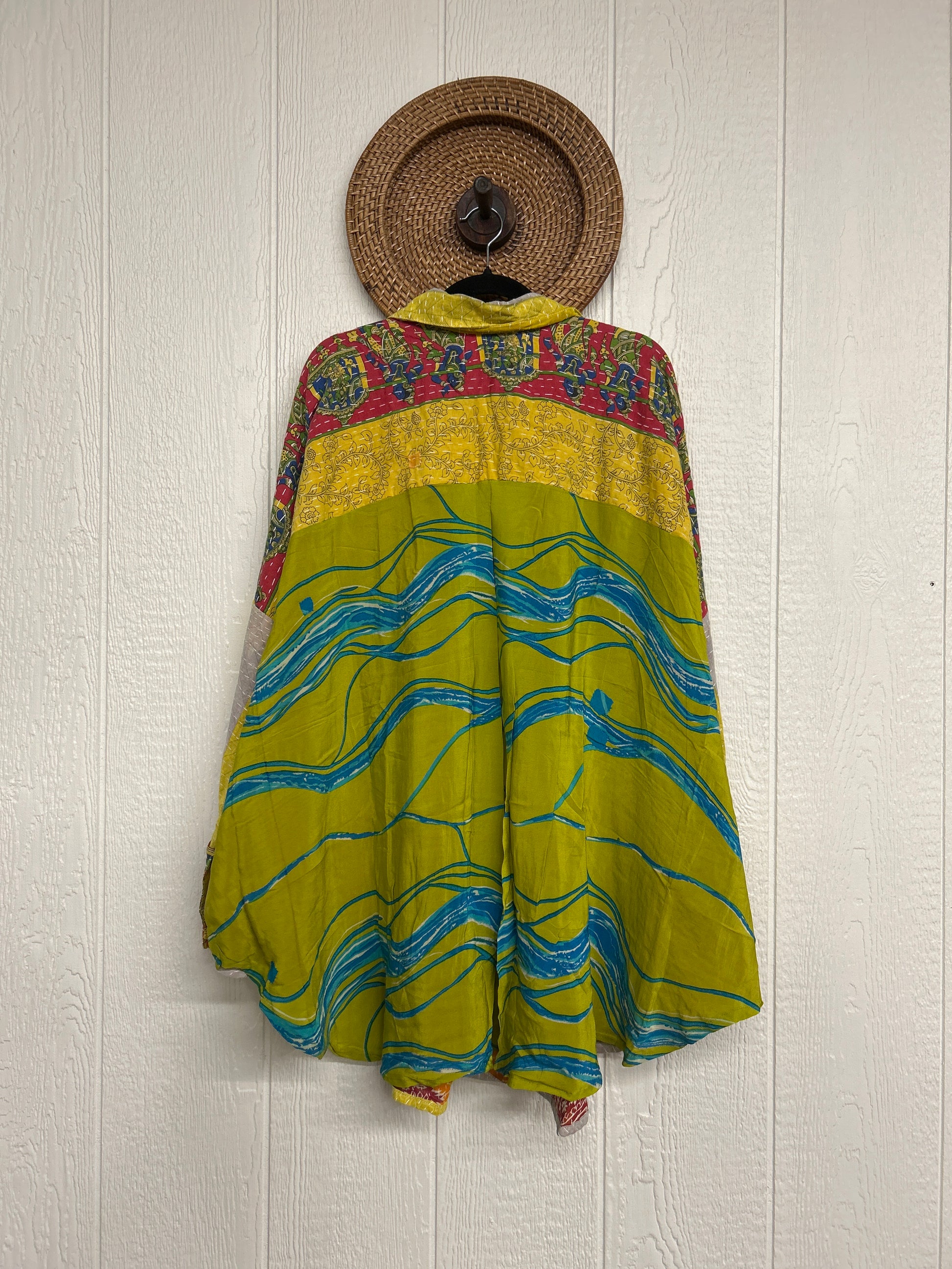 Made from our vintage cotton embroidered sari this billowy dream features a crepe panel in the back, functional buttons, two deep pockets in the front and a curved bottom.