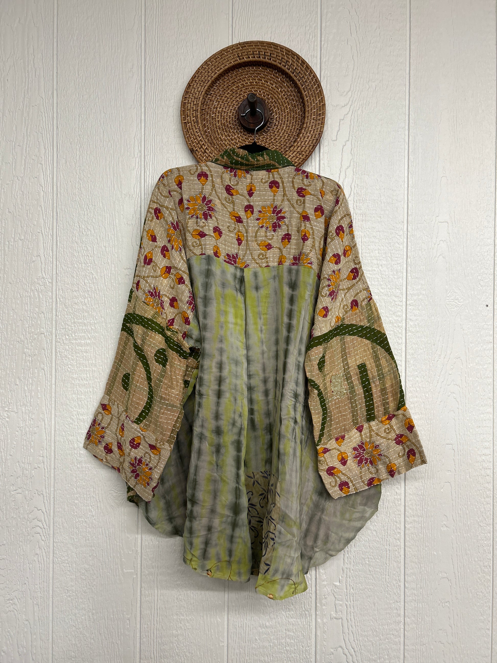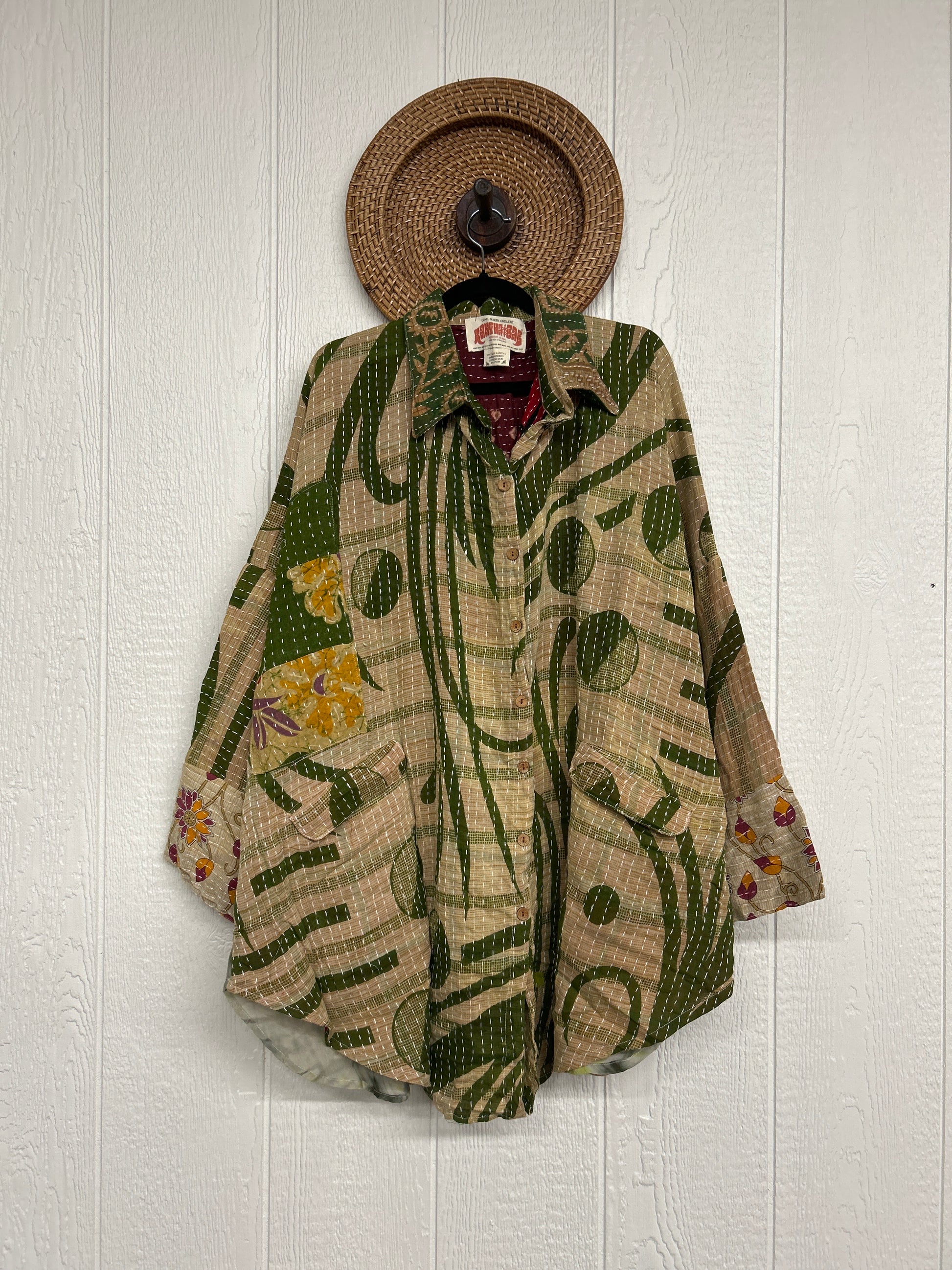 Made from our vintage cotton embroidered sari this billowy dream features a crepe panel in the back, functional buttons, two deep pockets in the front and a curved bottom.