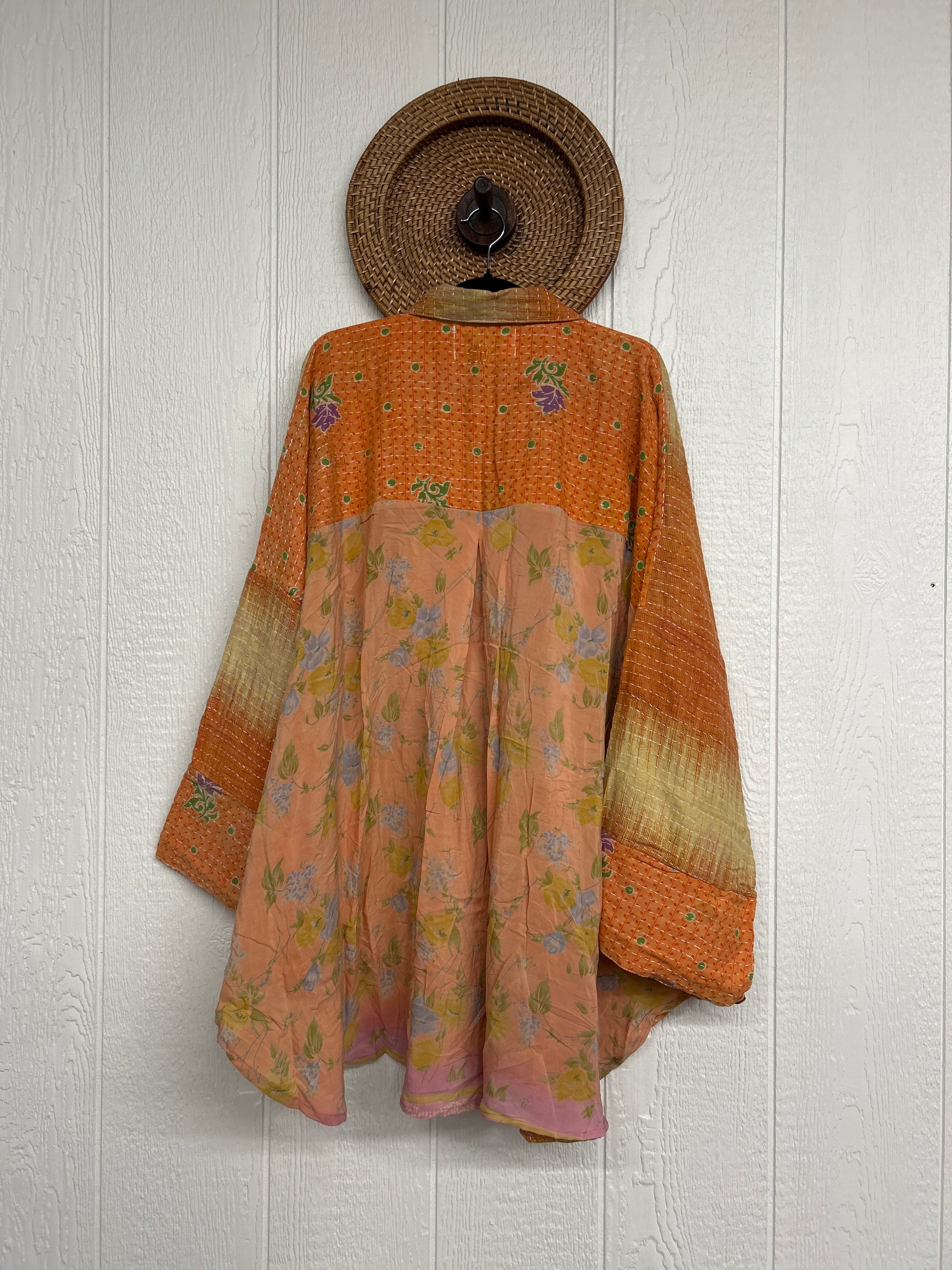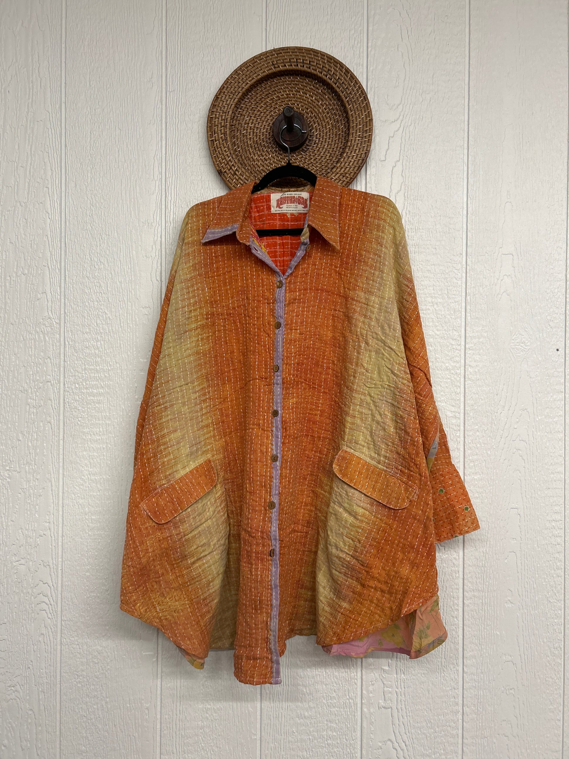 Made from our vintage cotton embroidered sari this billowy dream features a crepe panel in the back, functional buttons, two deep pockets in the front and a curved bottom.