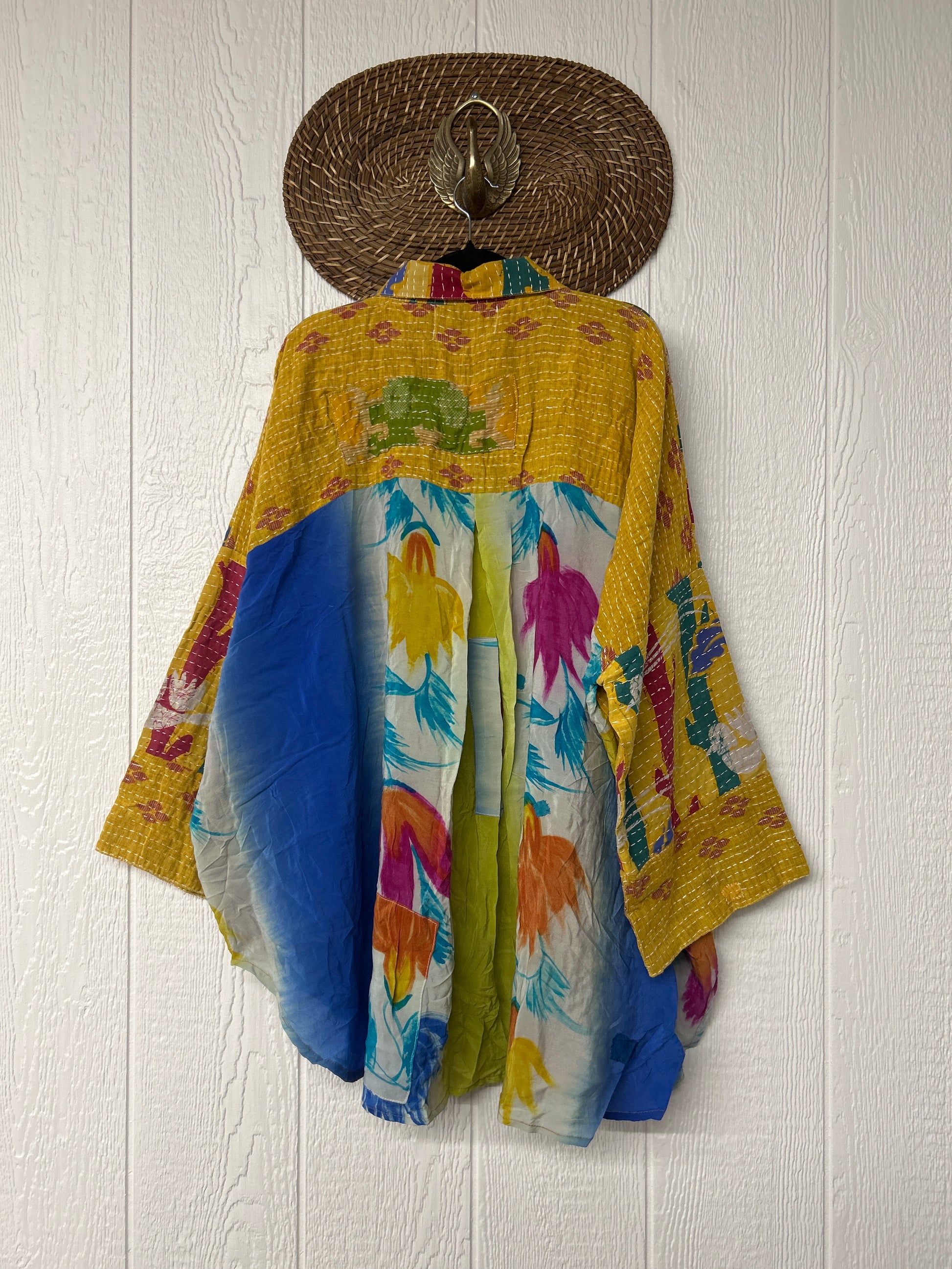 Made from our vintage cotton embroidered sari this billowy dream features a crepe panel in the back, functional buttons, two deep pockets in the front and a curved bottom.