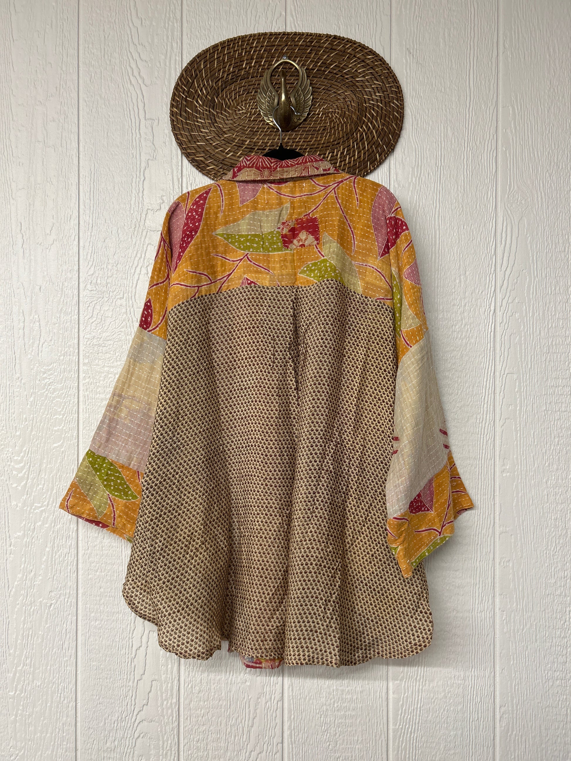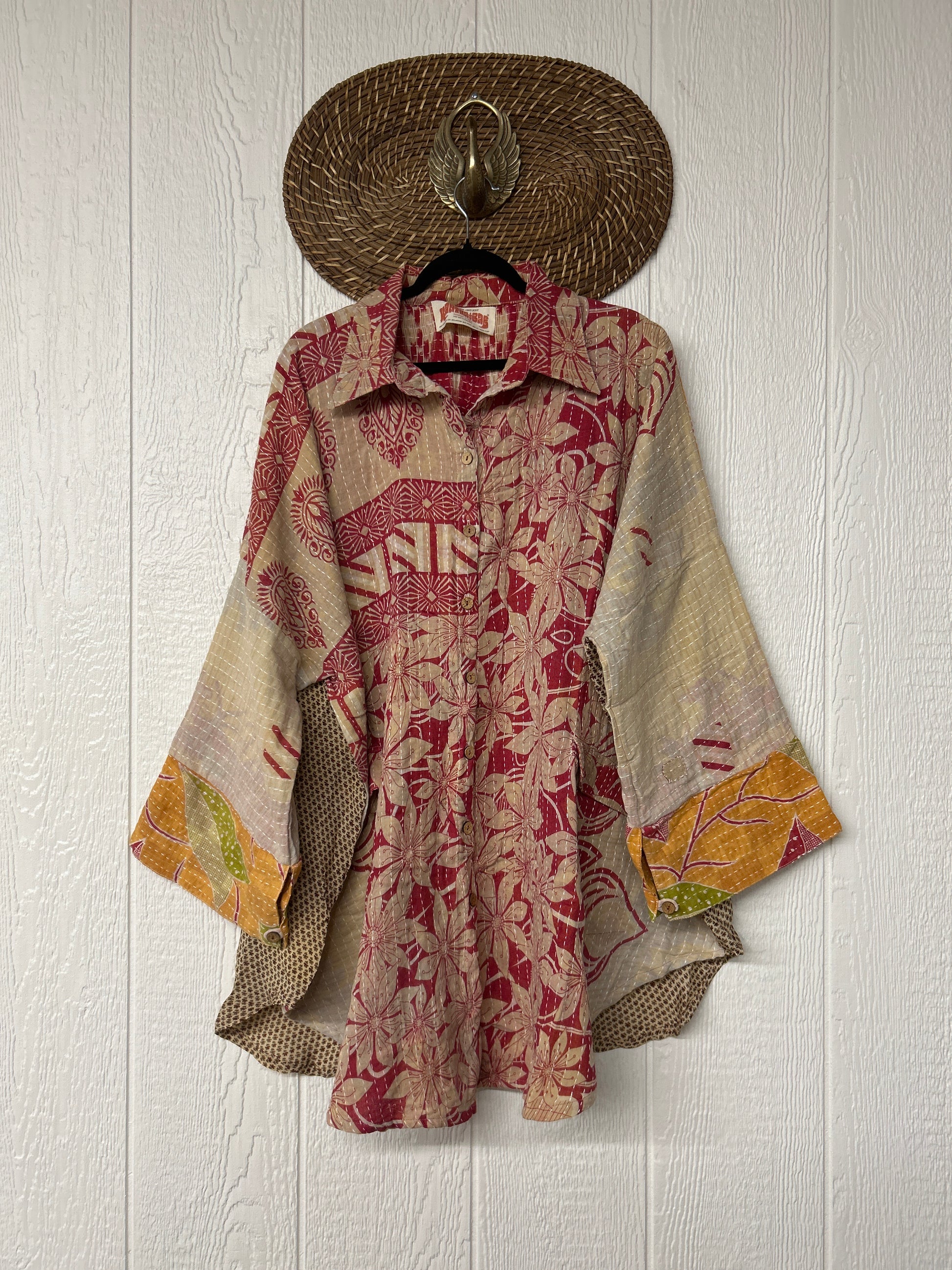Made from our vintage cotton embroidered sari this billowy dream features a crepe panel in the back, functional buttons, two deep pockets in the front and a curved bottom.