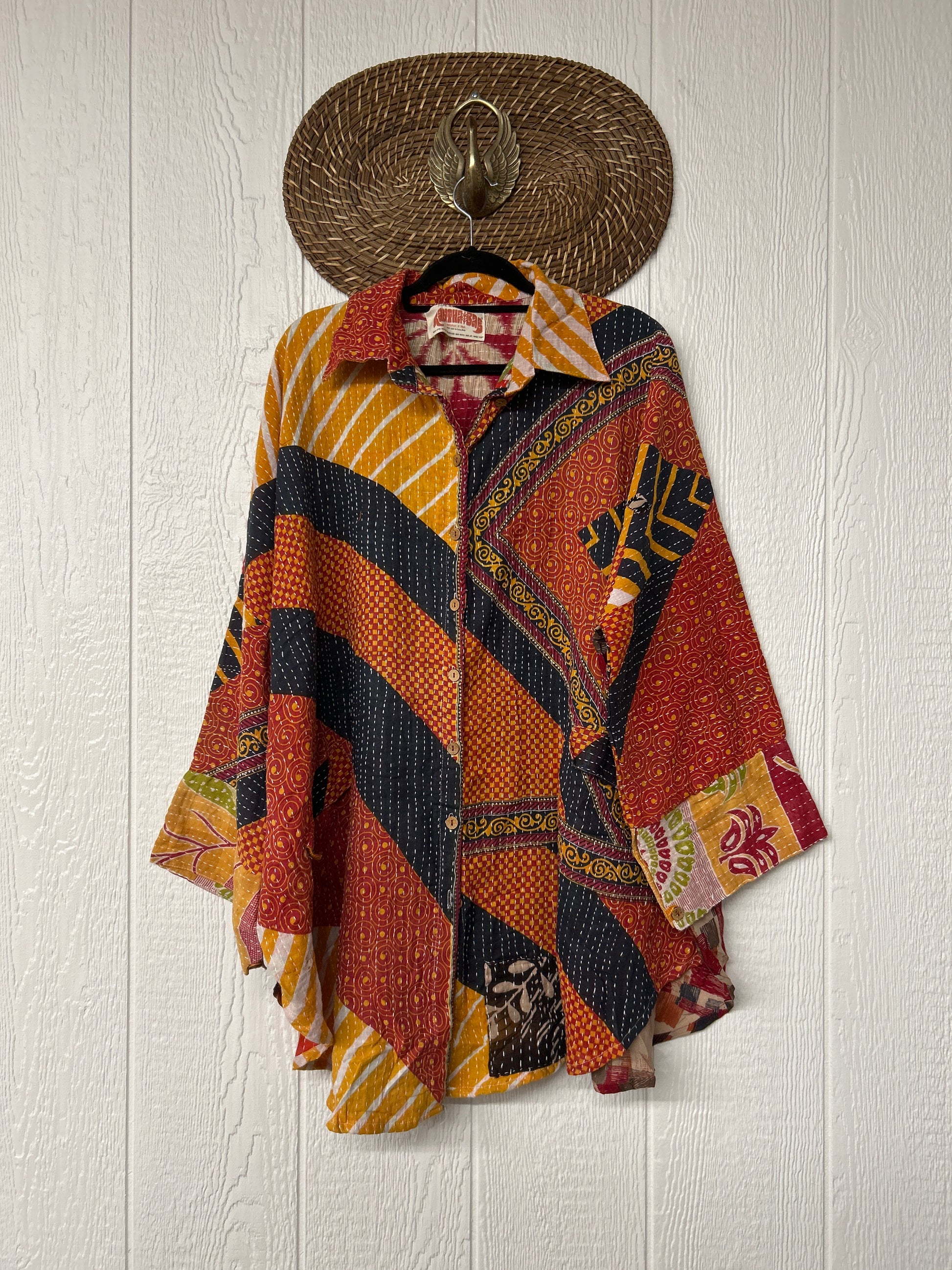 Made from our vintage cotton embroidered sari this billowy dream features a crepe panel in the back, functional buttons, two deep pockets in the front and a curved bottom.