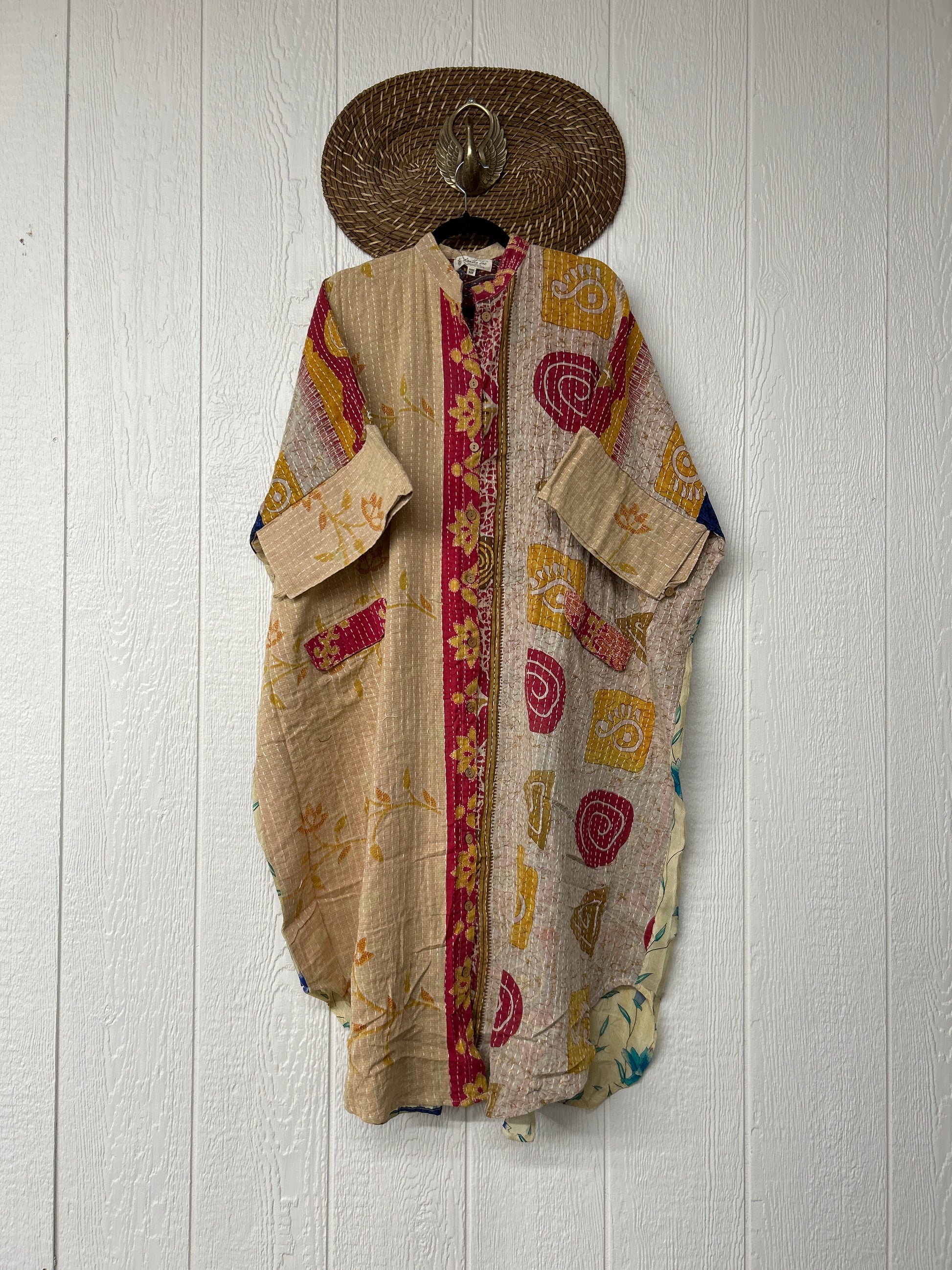 Made from our vintage cotton embroidered sari this billowy dream features a crepe panel in the back, functional buttons, two deep pockets in the front and a curved bottom.