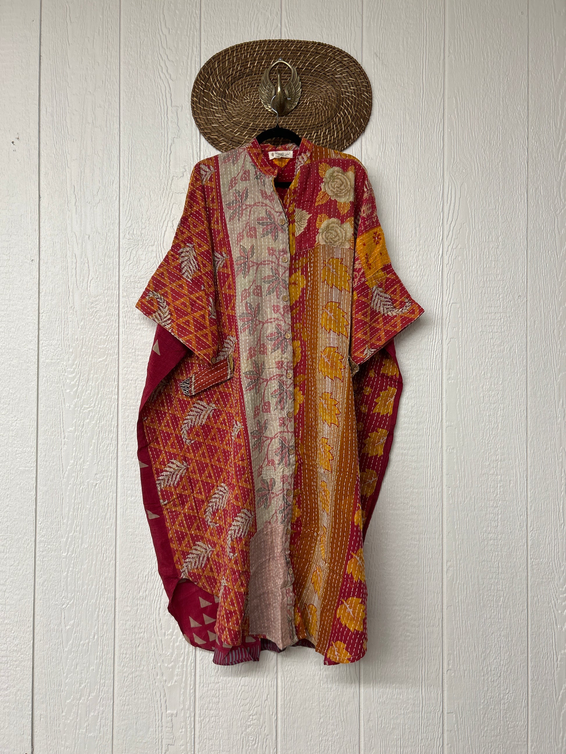 Disclosure: Our vintage styles have lived a full life before becoming the designs in our shop. Fabrics may have small threads or holes in the layers. Color inconsistency or small stains may be present. The saris are sewn together and extend the life of each design. Imperfections should be celebrated
